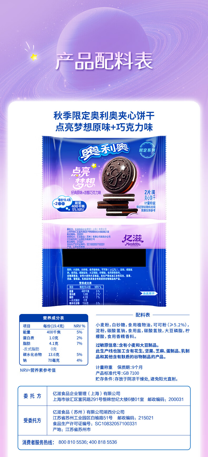 奥利奥(Oreo)夹心饼干缤纷口味礼袋485g 秋季限定 休闲零食早餐解馋小零食