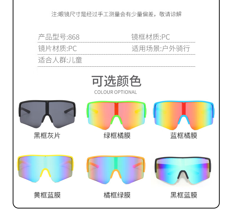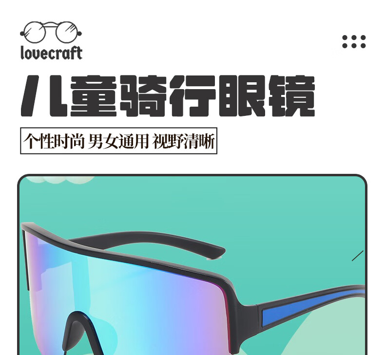 LOVECRAFT户外自行车墨镜 青少年炫彩运动眼镜 儿童防晒骑行太阳镜开学