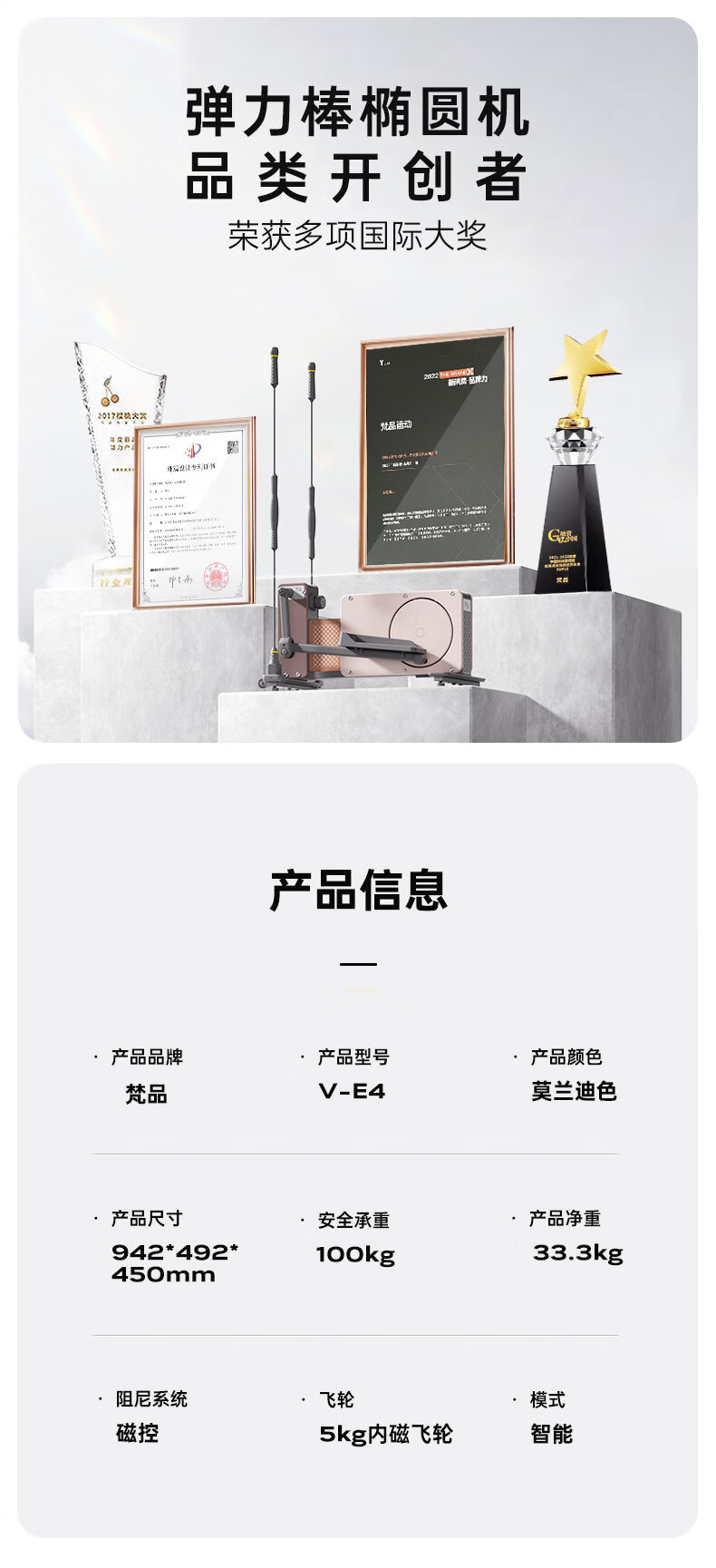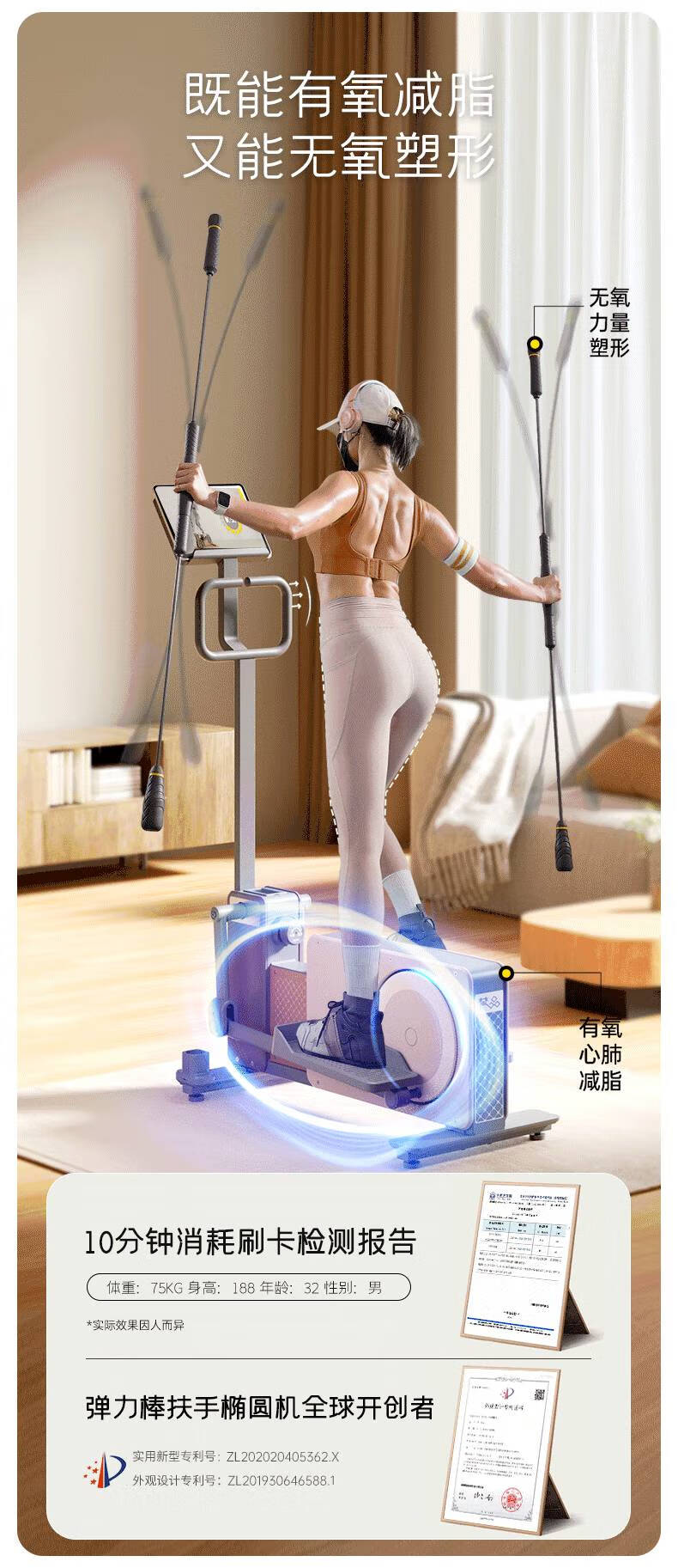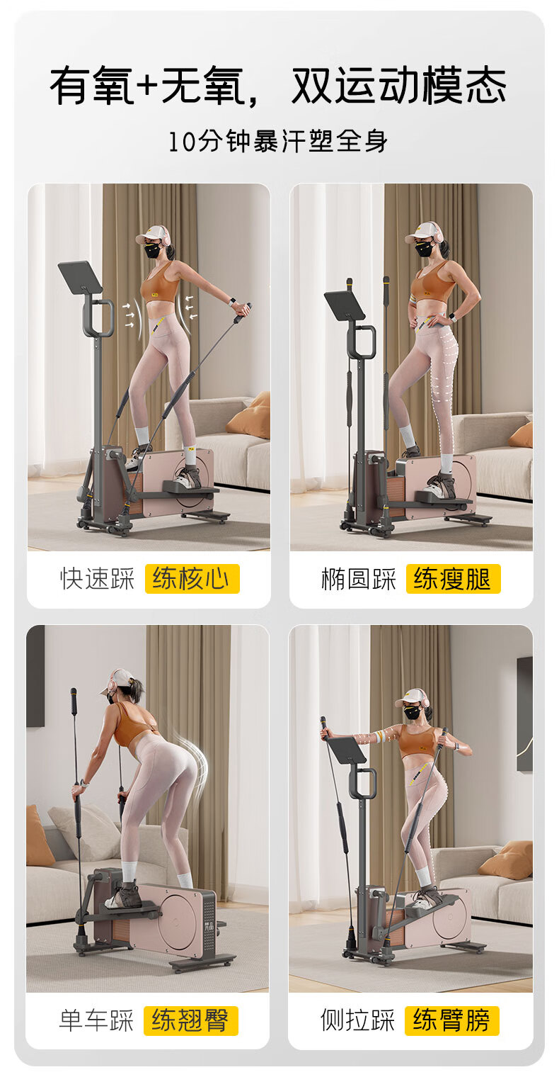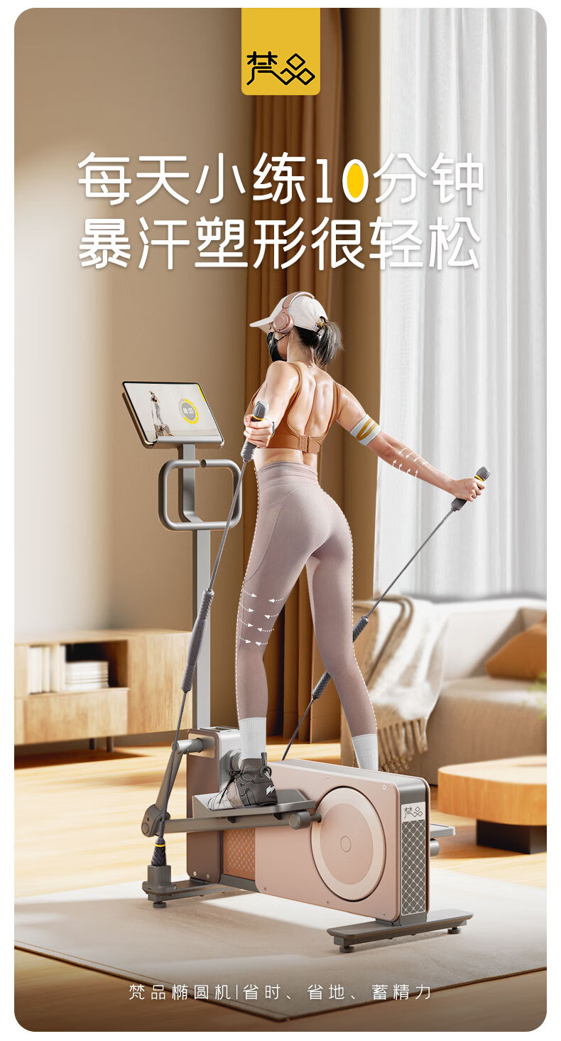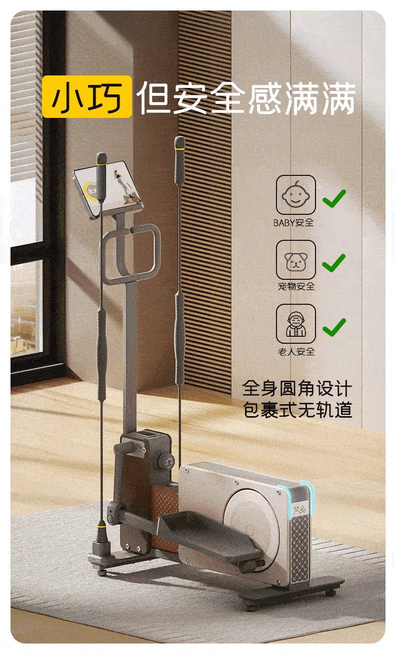 梵品小木马椭圆机家用小型太空漫步机椭圆仪踏步机健身器材室内 【Pro系列】莫兰迪灰顶配款