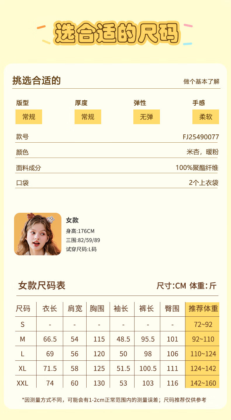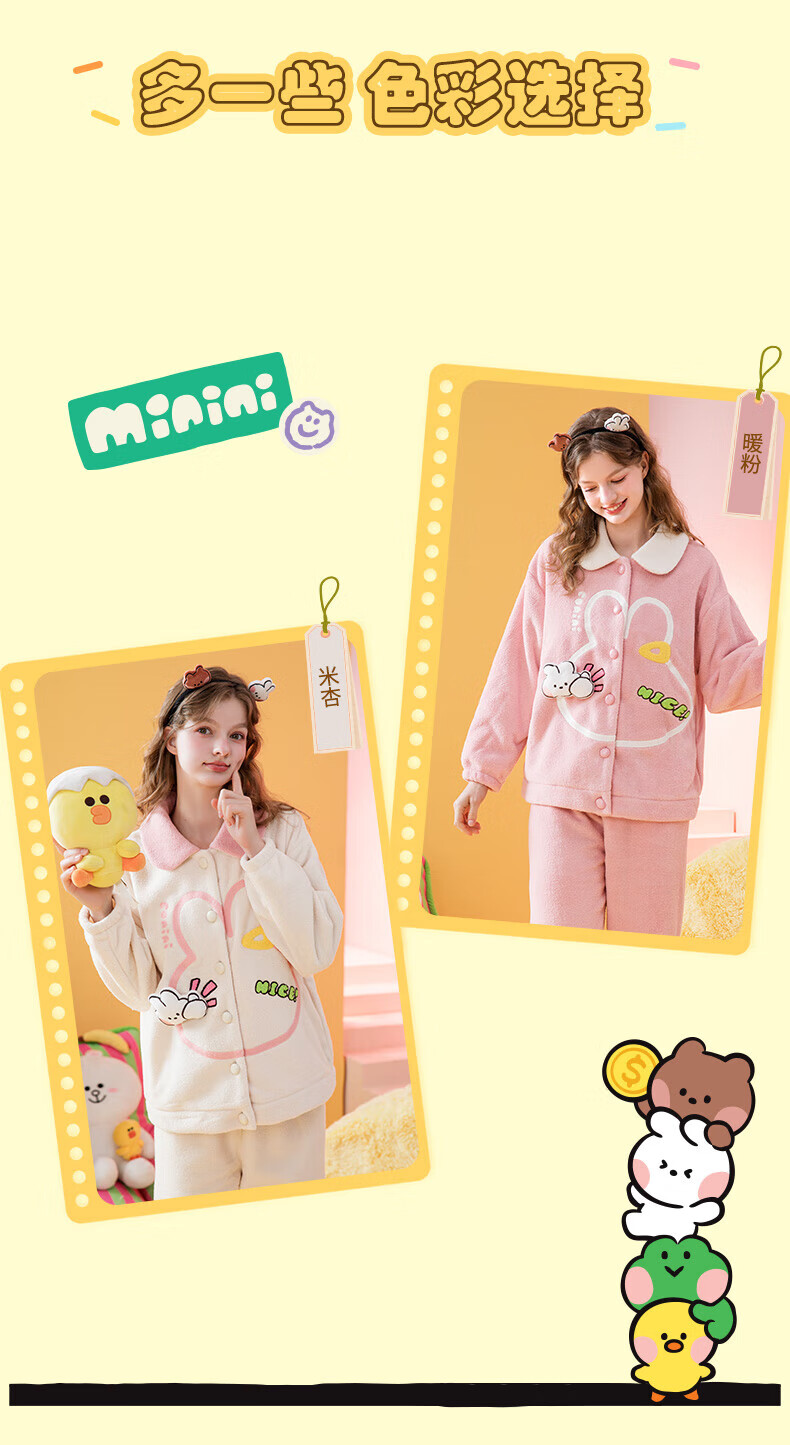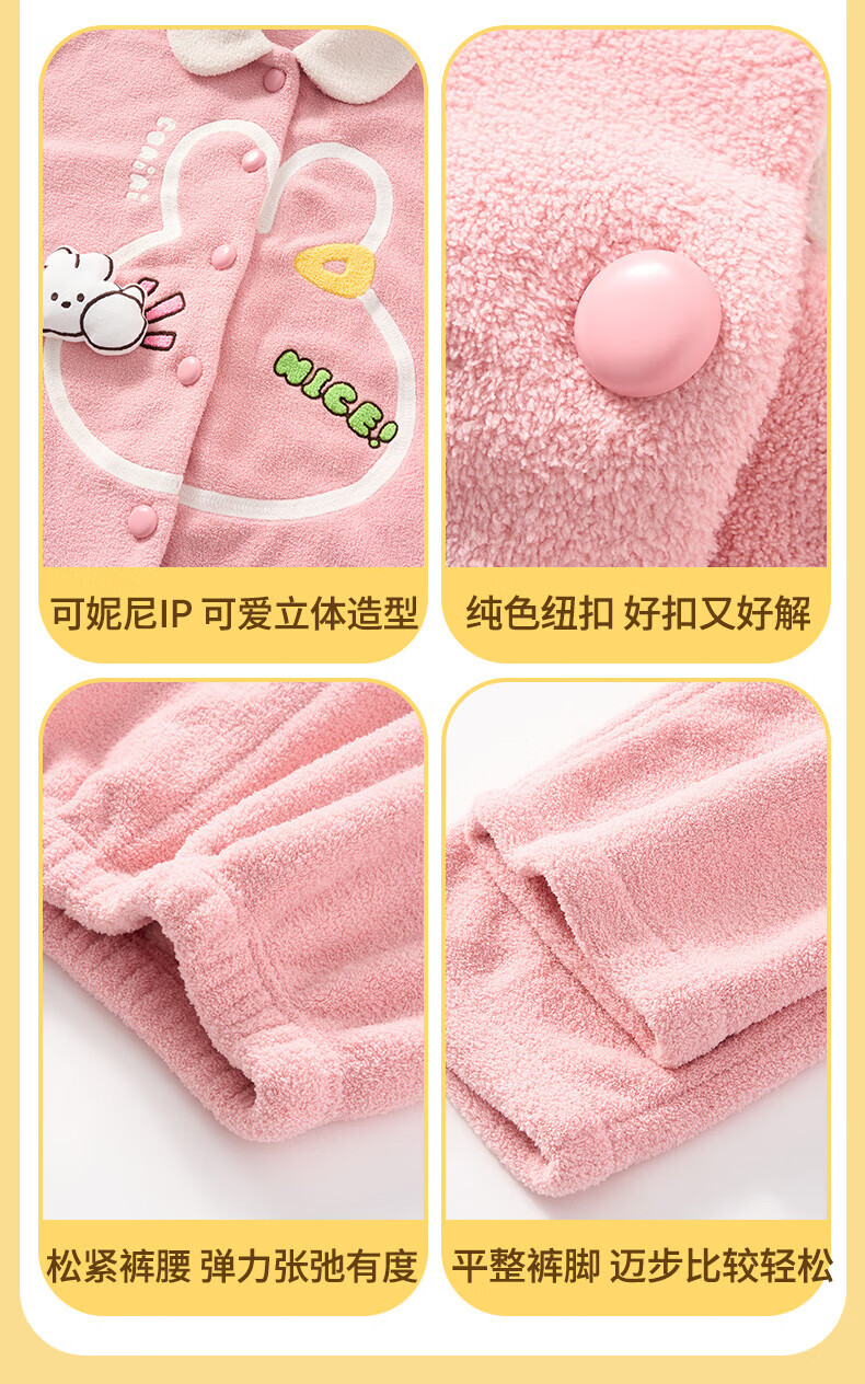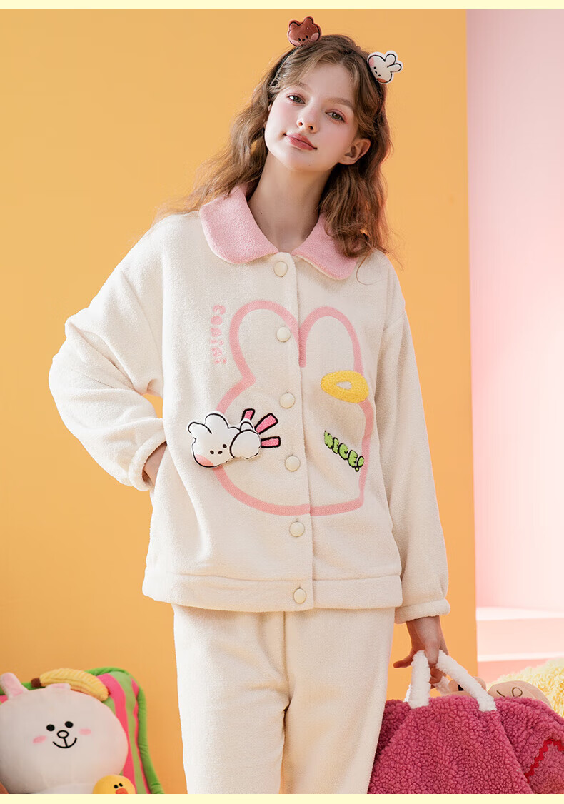 芬腾睡衣女士【可妮兔IP联名】秋冬双面绒翻领开衫加厚家居服套装 暖粉 M
