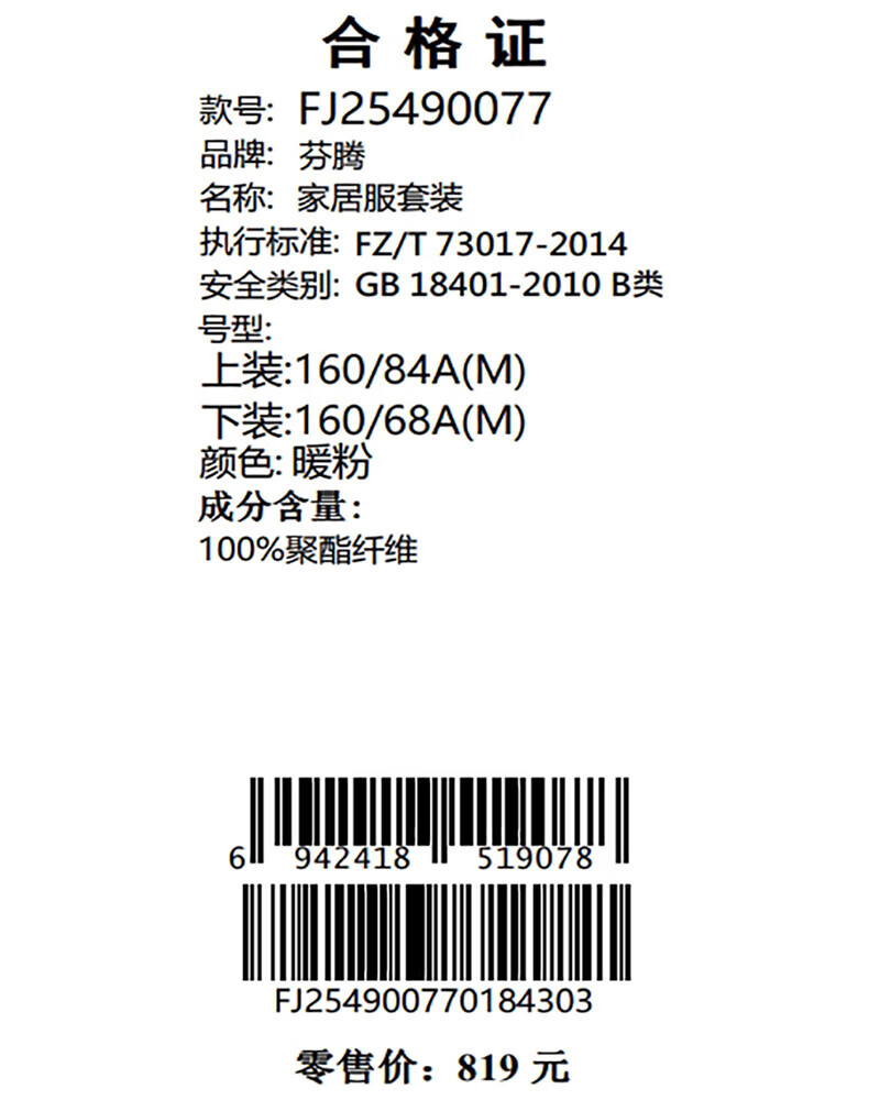 全棉时代男士睡衣【针织软弹不拘束】情侣家居服套装