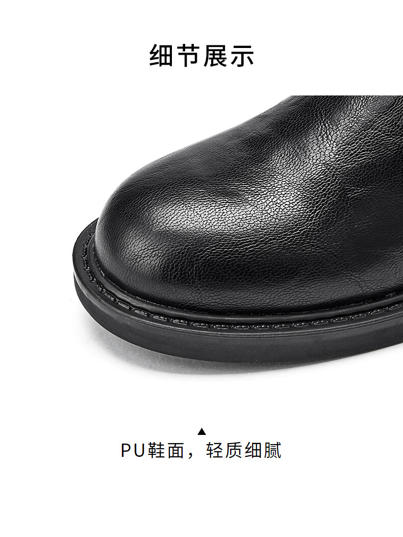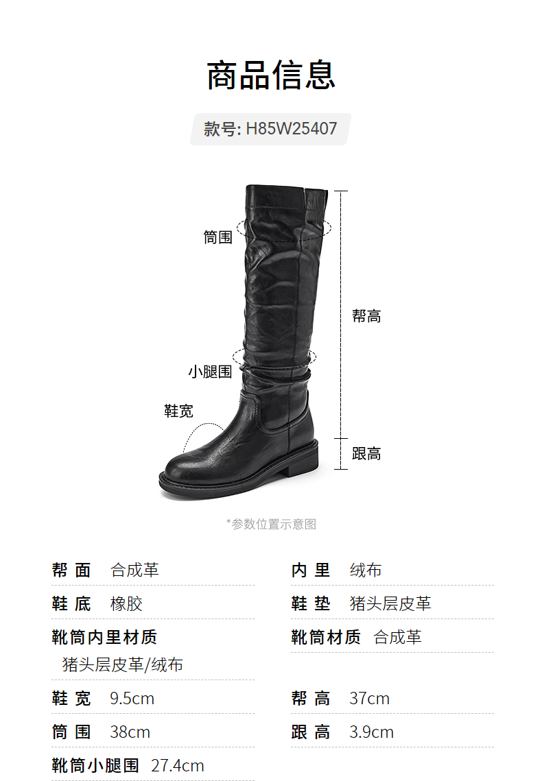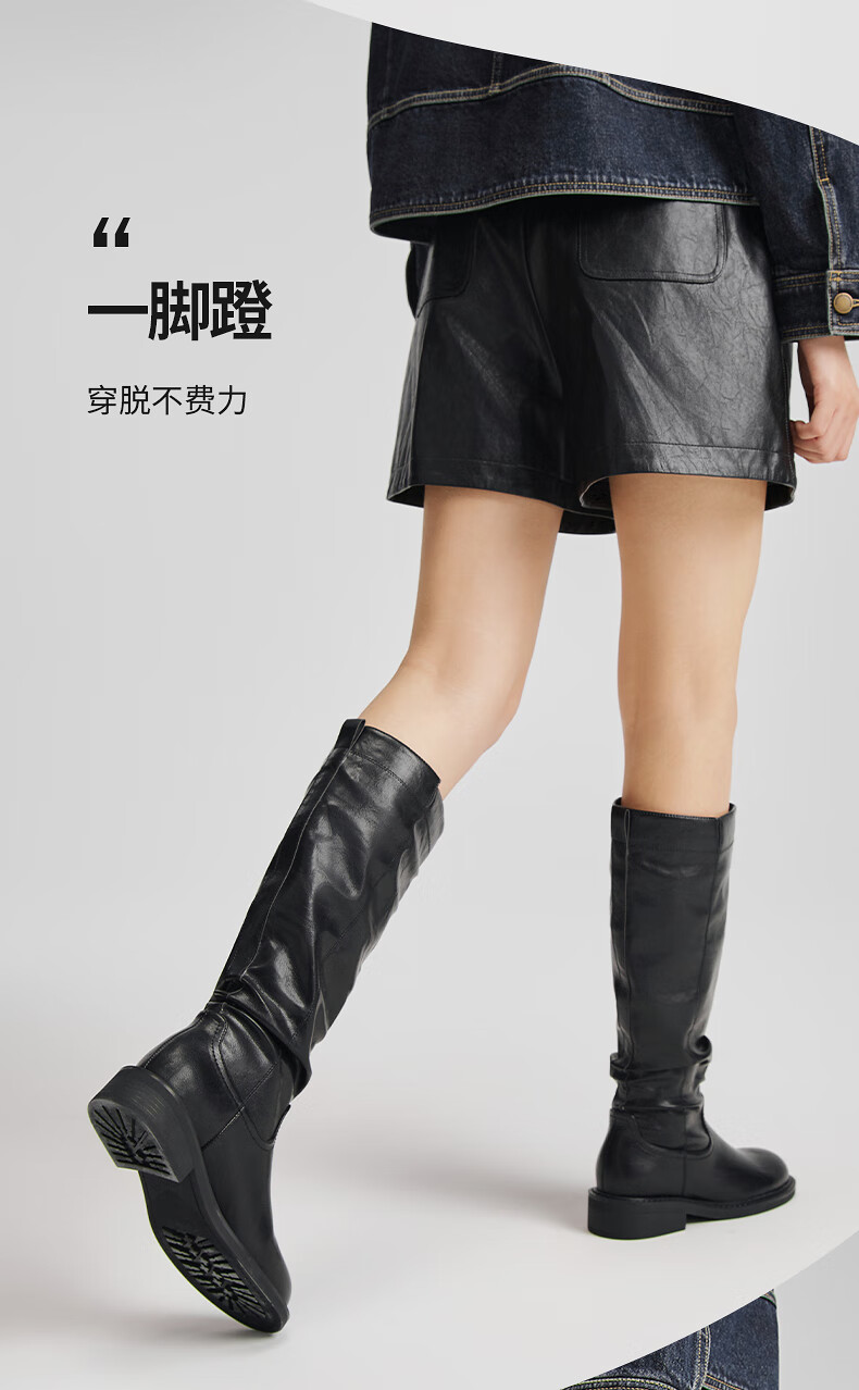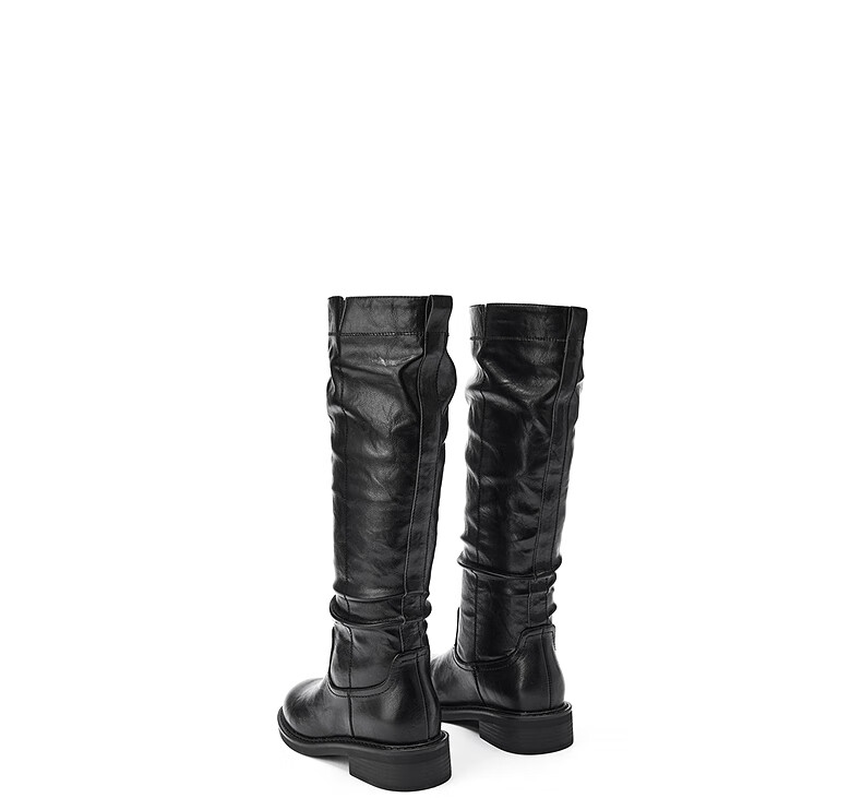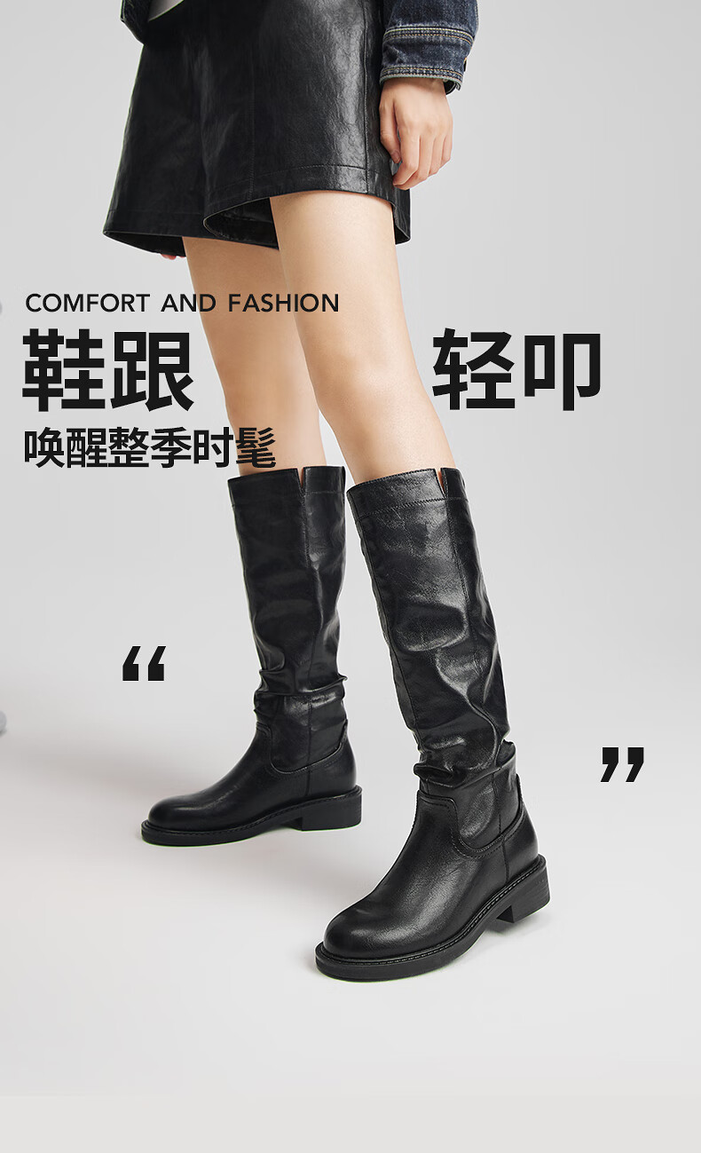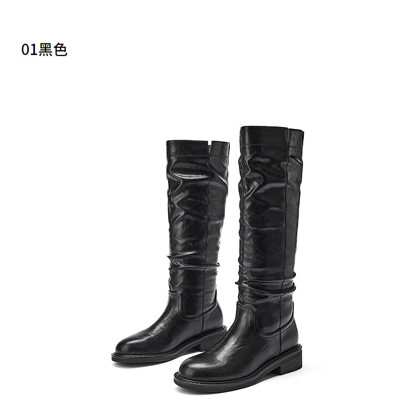 热风黑色长筒靴女2025年冬季新款复古褶皱骑士靴堆堆时装靴子女鞋 01黑色 38