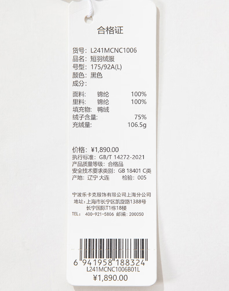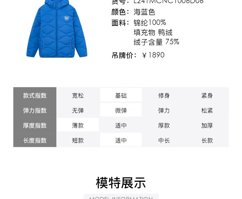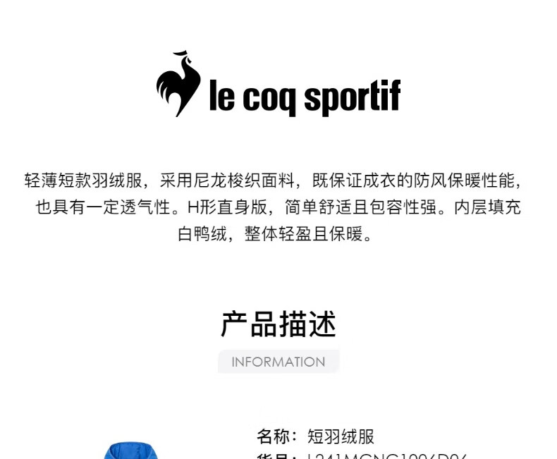 Le coq sportif乐卡克法国公鸡男子连帽舒适短款羽绒服