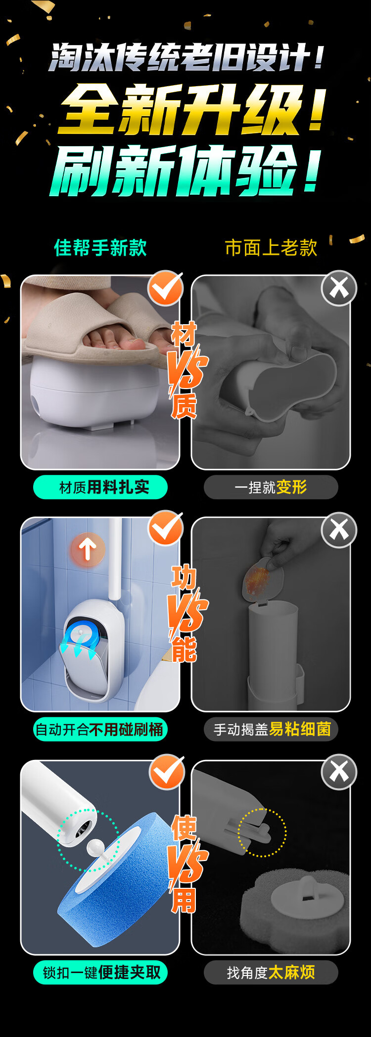 佳帮手一次性马桶刷子套装卫生间无死角洗厕所壁挂可抛式马桶清洁神器