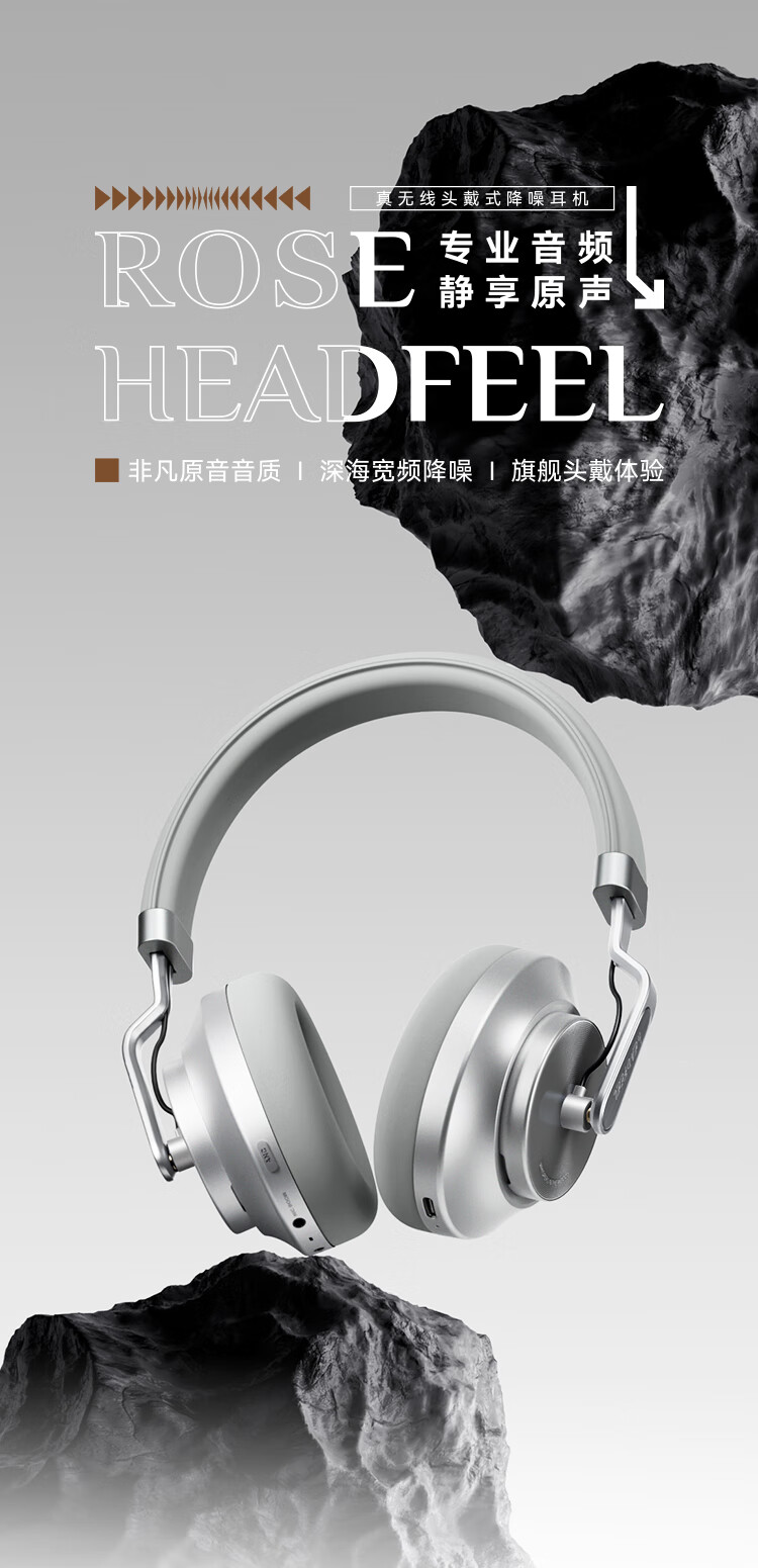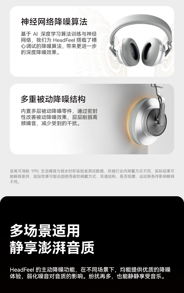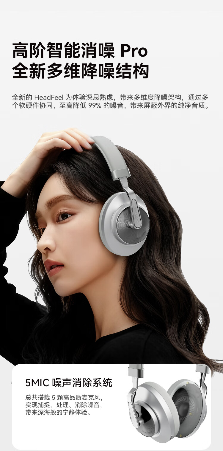 弱水时砂【重磅新品】HeadFeel头戴式耳机蓝牙无线降噪耳机手机电脑游戏低延迟超长续航送男女友学生 【流银】旗舰音质|宽频深海降噪|100h续航 LHDC5.0/LDAC高音质协议