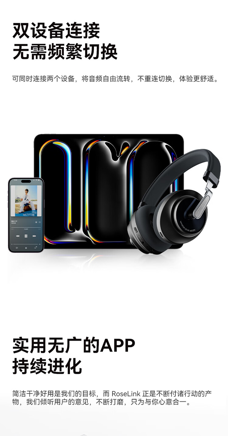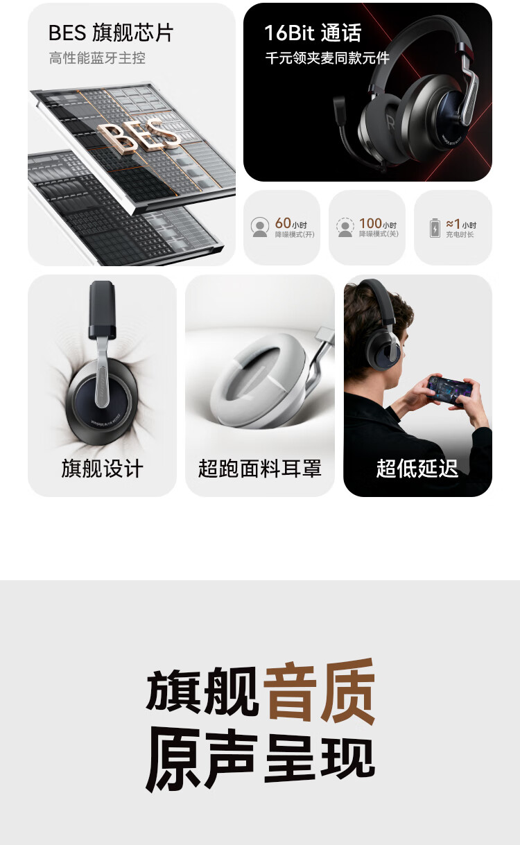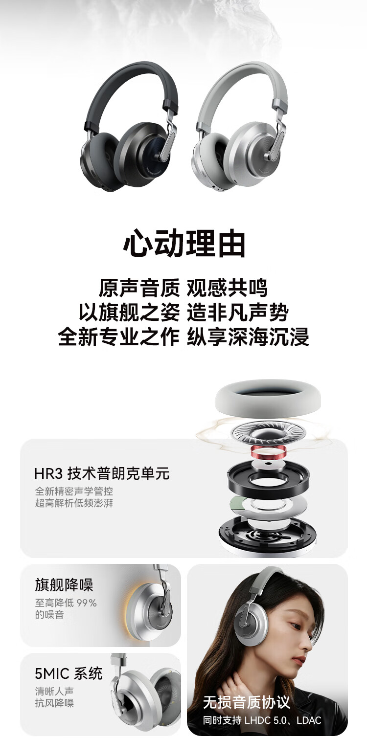 弱水时砂【重磅新品】HeadFeel头戴式耳机蓝牙无线降噪耳机手机电脑游戏低延迟超长续航送男女友学生 【流银】旗舰音质|宽频深海降噪|100h续航 LHDC5.0/LDAC高音质协议