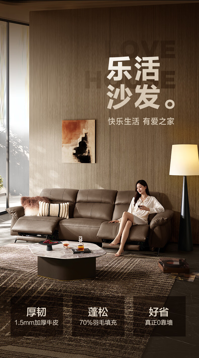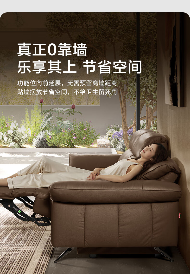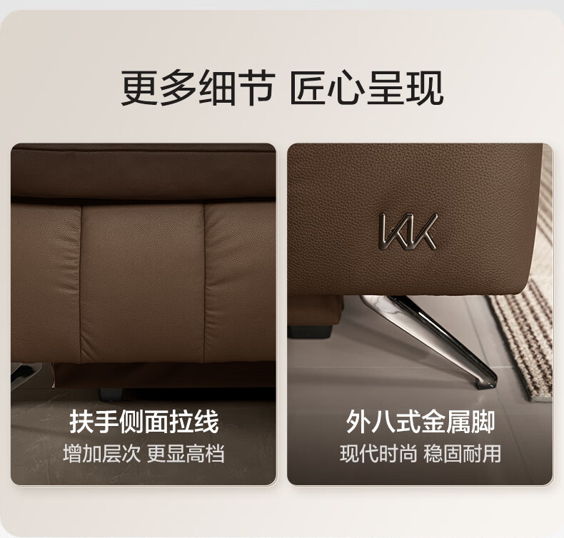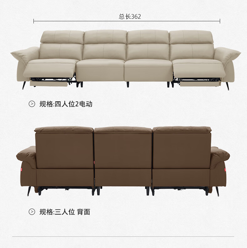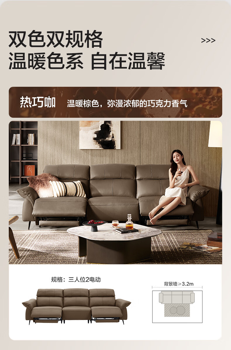 顾家家居(KUKA)【半青皮】极简风加厚牛皮乐活沙发70%羽毛6327咖双电动2.93m