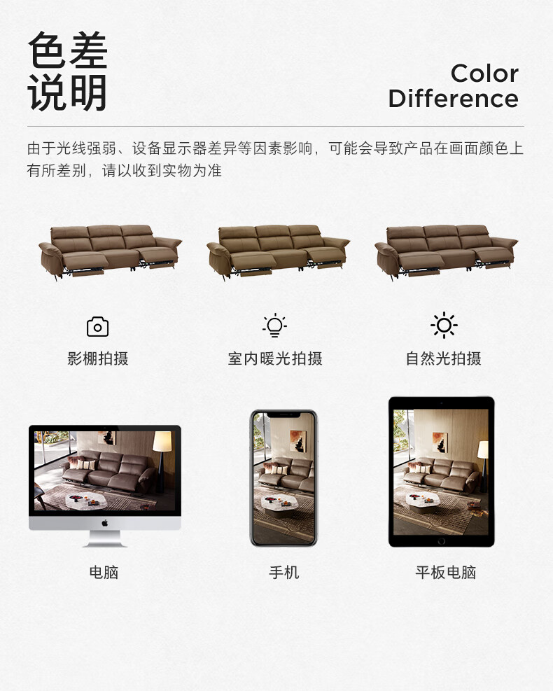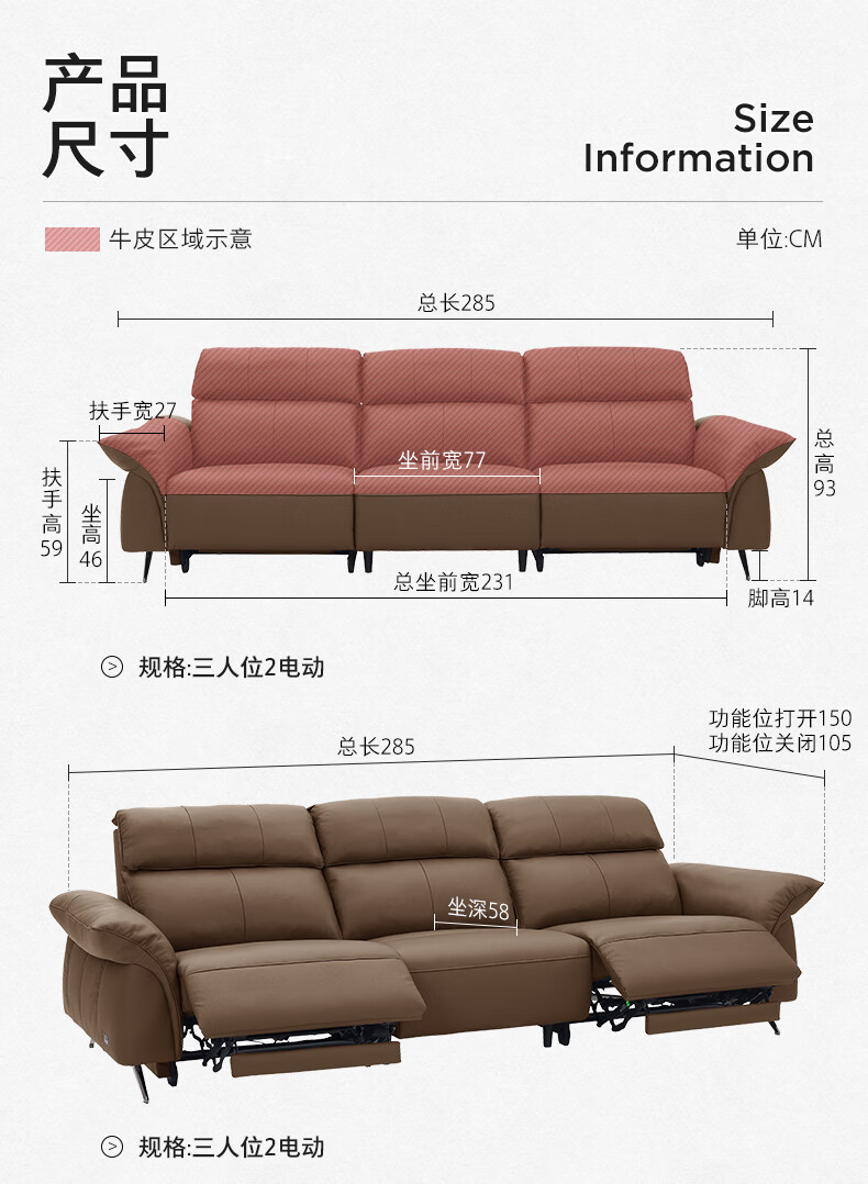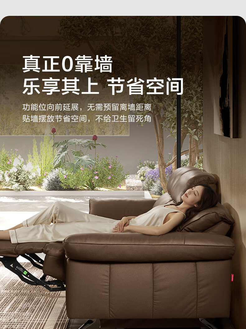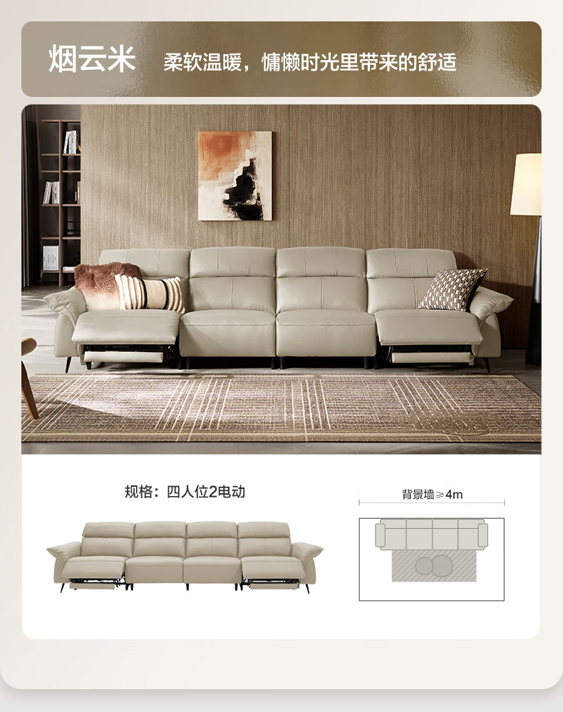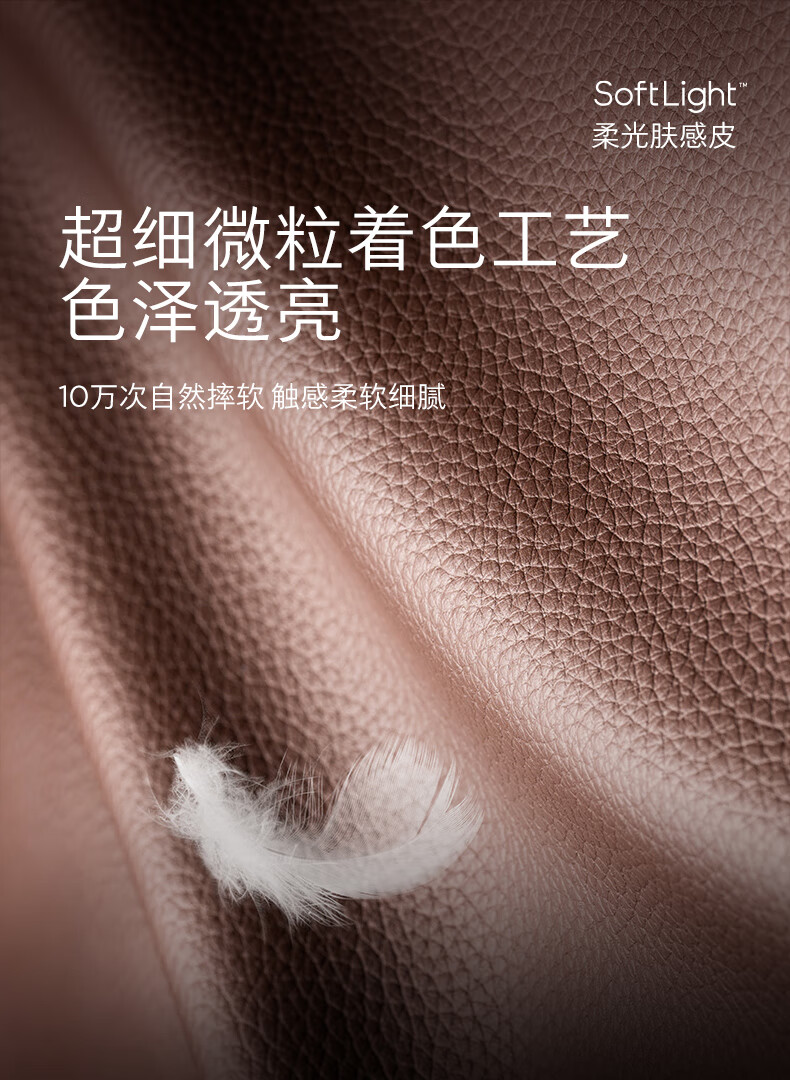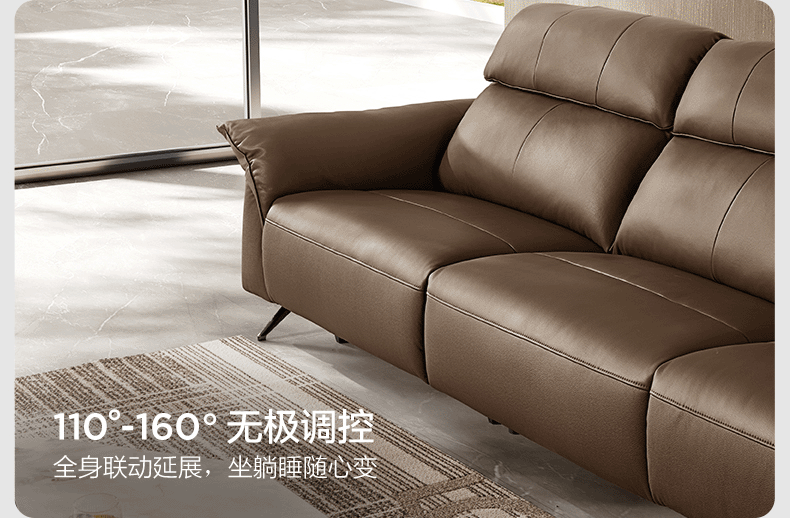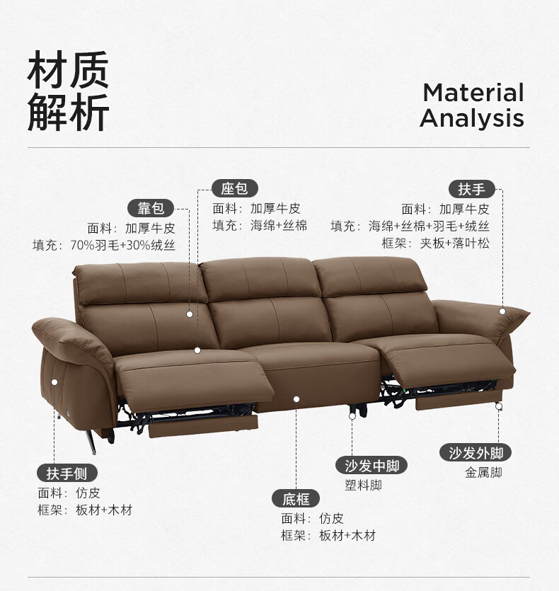 顾家家居(KUKA)【半青皮】极简风加厚牛皮乐活沙发70%羽毛6327咖双电动2.93m