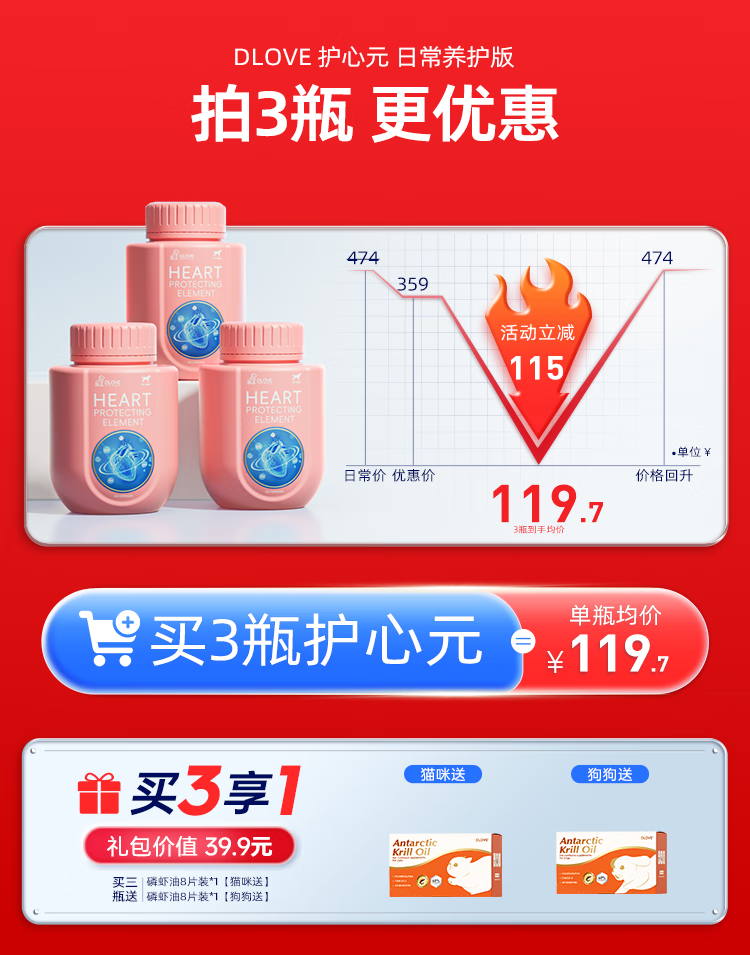 萌护卫美国DLOVE 护心元水溶辅酶q10犬猫心脏肥大衰竭宠物保护心脏 1瓶【犬用】护心元120粒/瓶 【7天试用 3期分期免息】