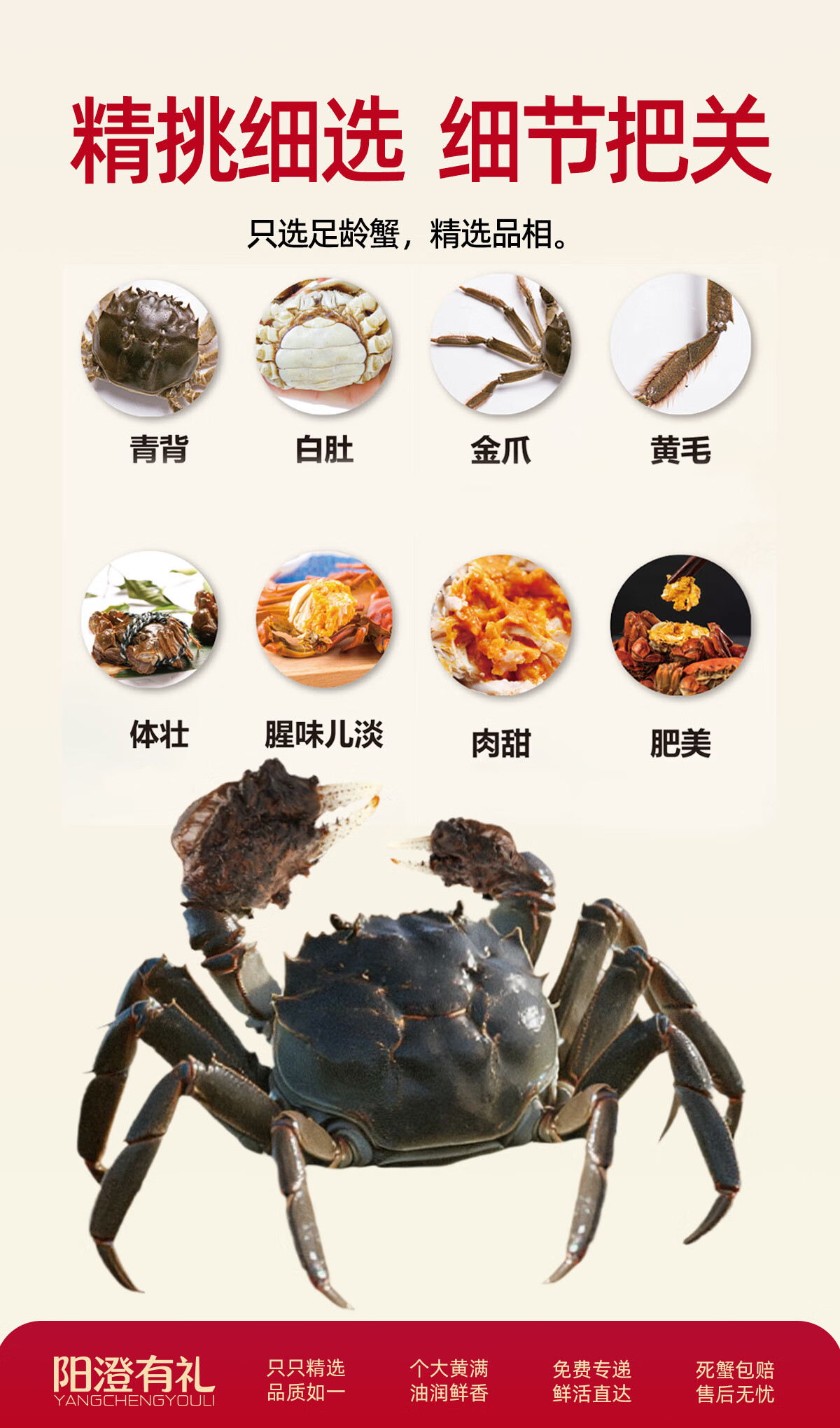 【活蟹】阳澄有礼 3.0-3.3两公蟹8只 精品大闸蟹鲜活海鲜螃蟹 蟹类生鲜礼盒 源头直发