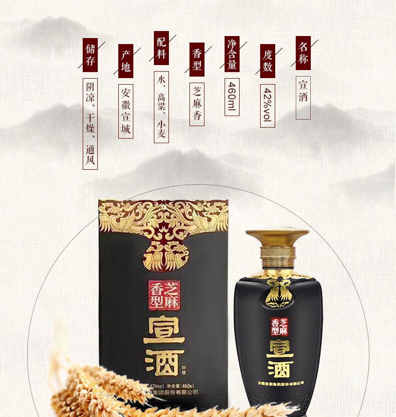 宣酒 芝麻香型白酒 42度 460ml 单瓶装 小窖酿造 热门商品 送礼