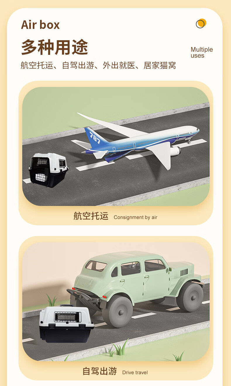 波奇多 宠物航空箱猫狗大容量空运箱 托运航空箱 小号(建议12斤内宠物)