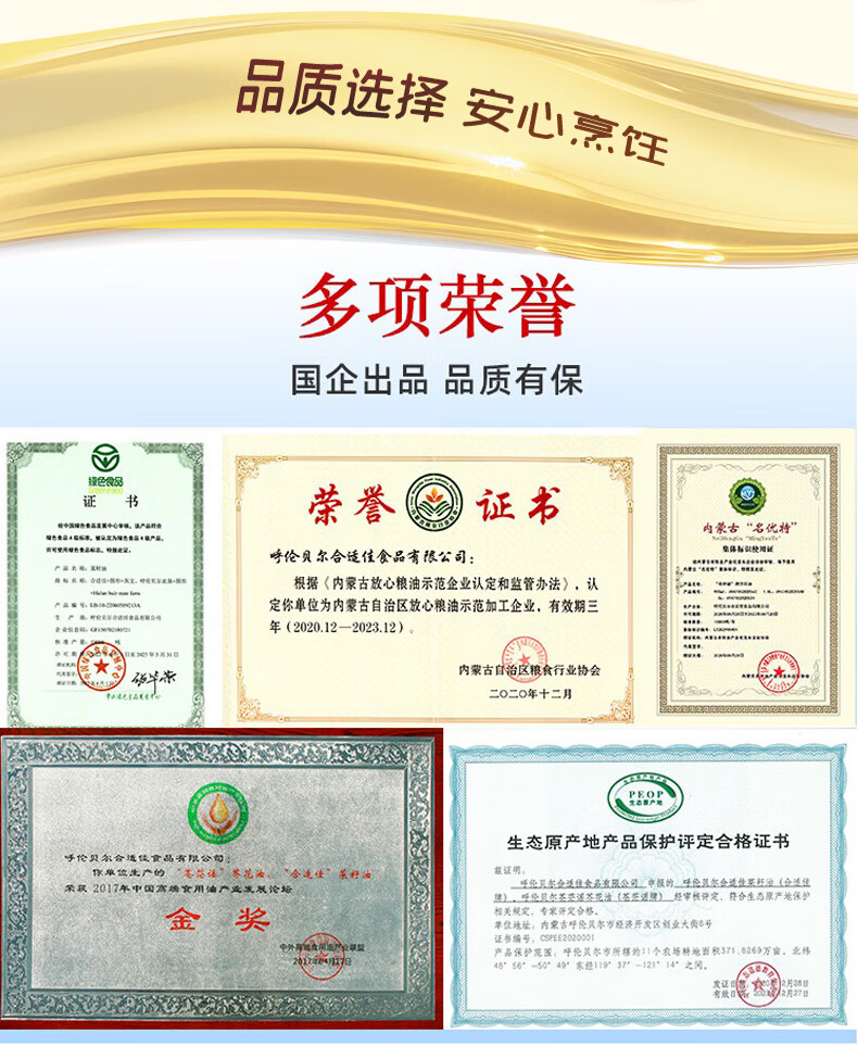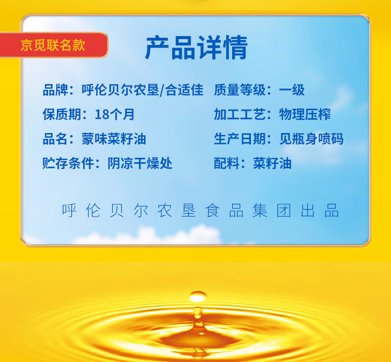 合适佳&京觅内蒙古风味物理压榨非转5L一级低芥酸菜籽油食用油国企出品