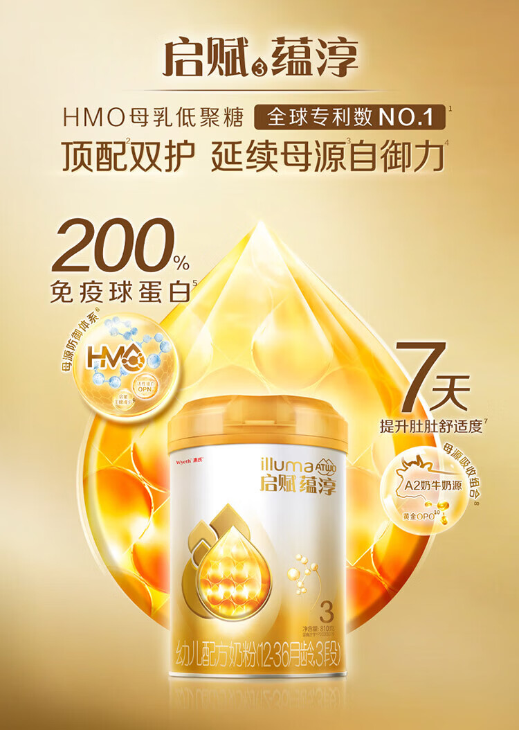 惠氏【官方授权】蕴淳A2奶源启赋幼儿配方奶粉3段(12-36月)810g 6罐 (新国标)