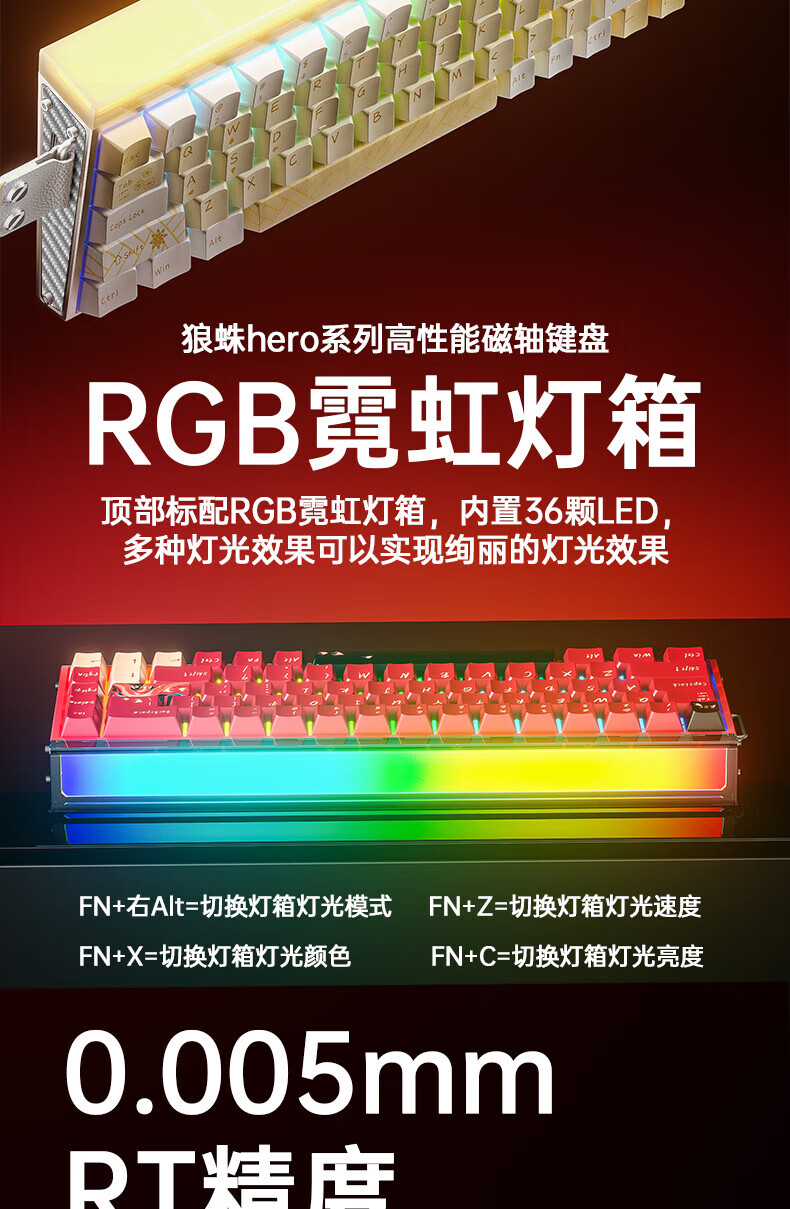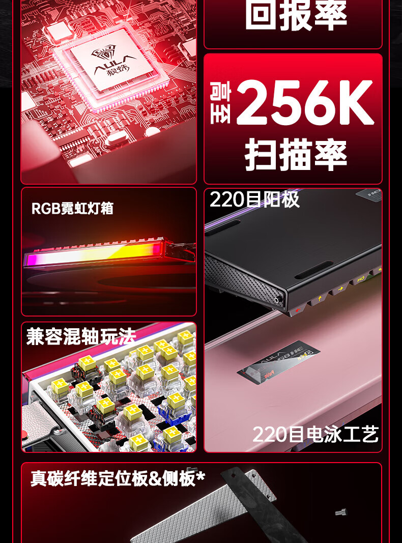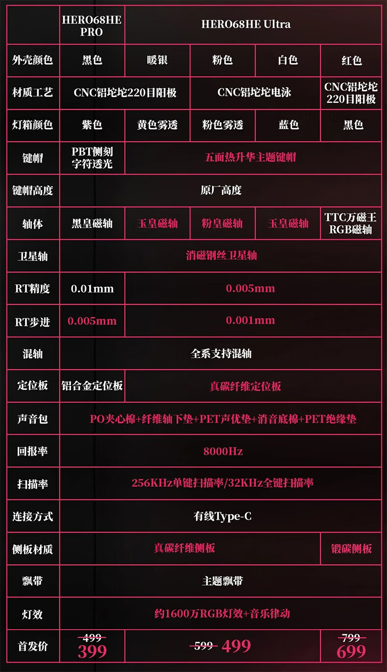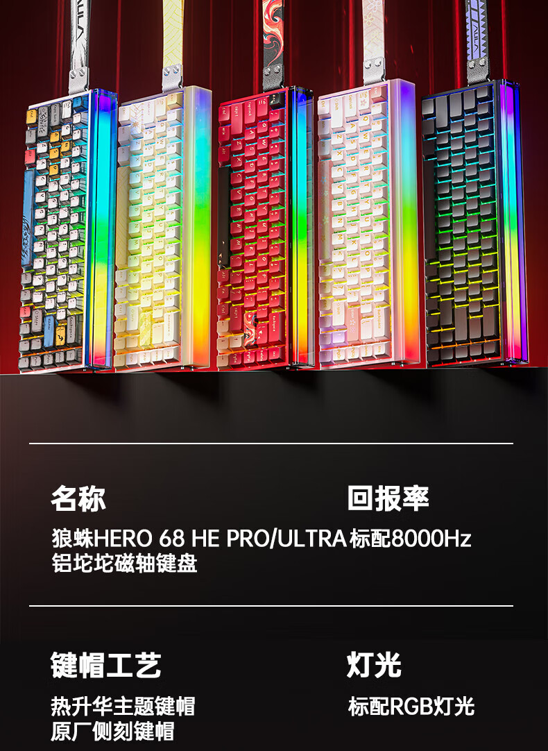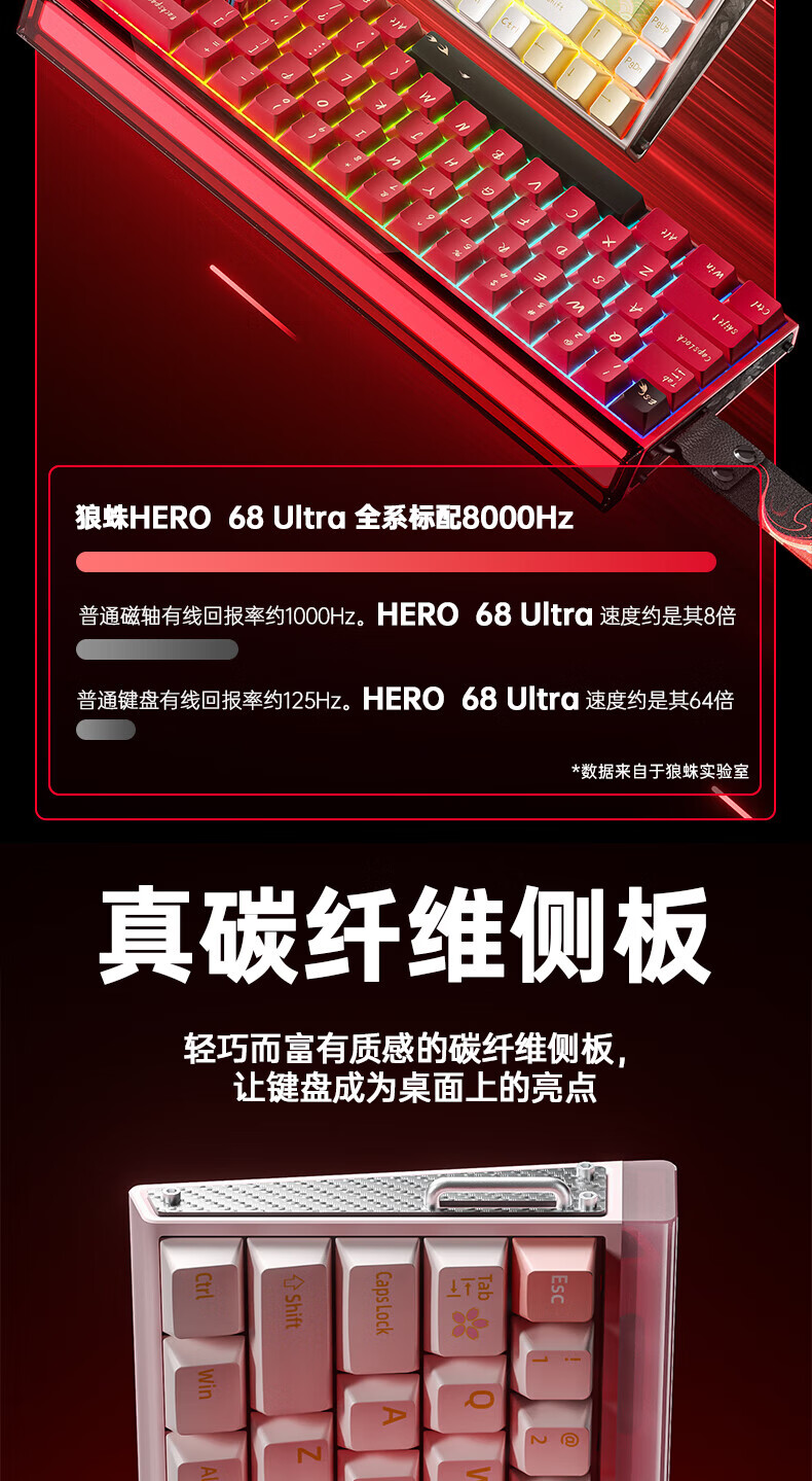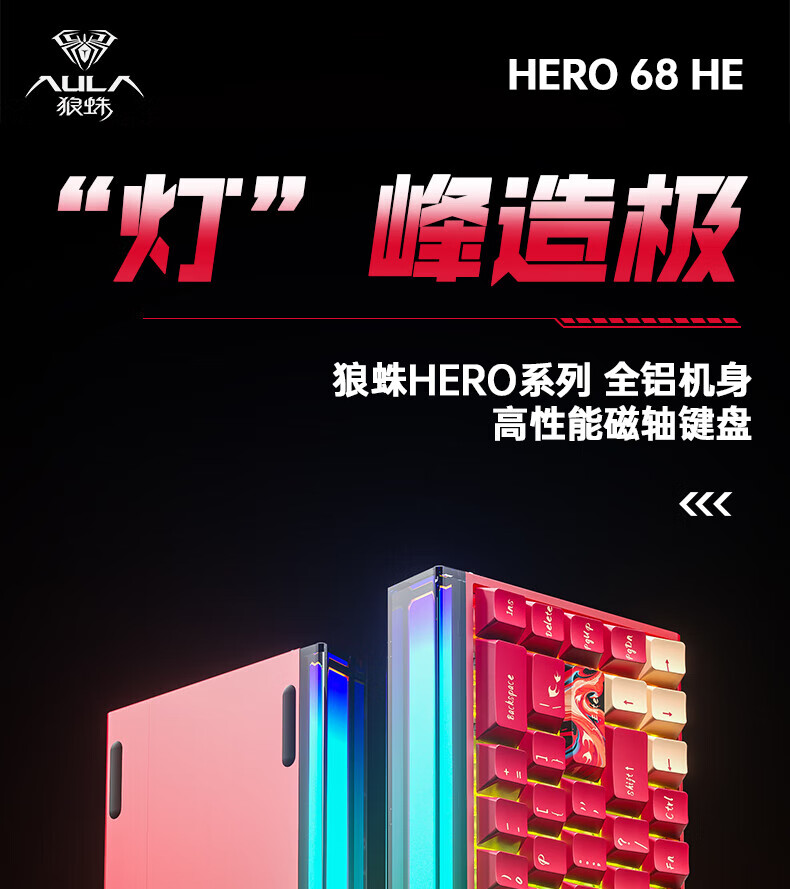 狼蛛(AULA)HERO68HEUltra铝坨坨磁轴键盘RT电竞游戏客制化机械有线RGB灯效万磁王轴网页驱动无畏契约8K回报率 68Ultra 电泳粉色【粉皇磁轴】碳定位板