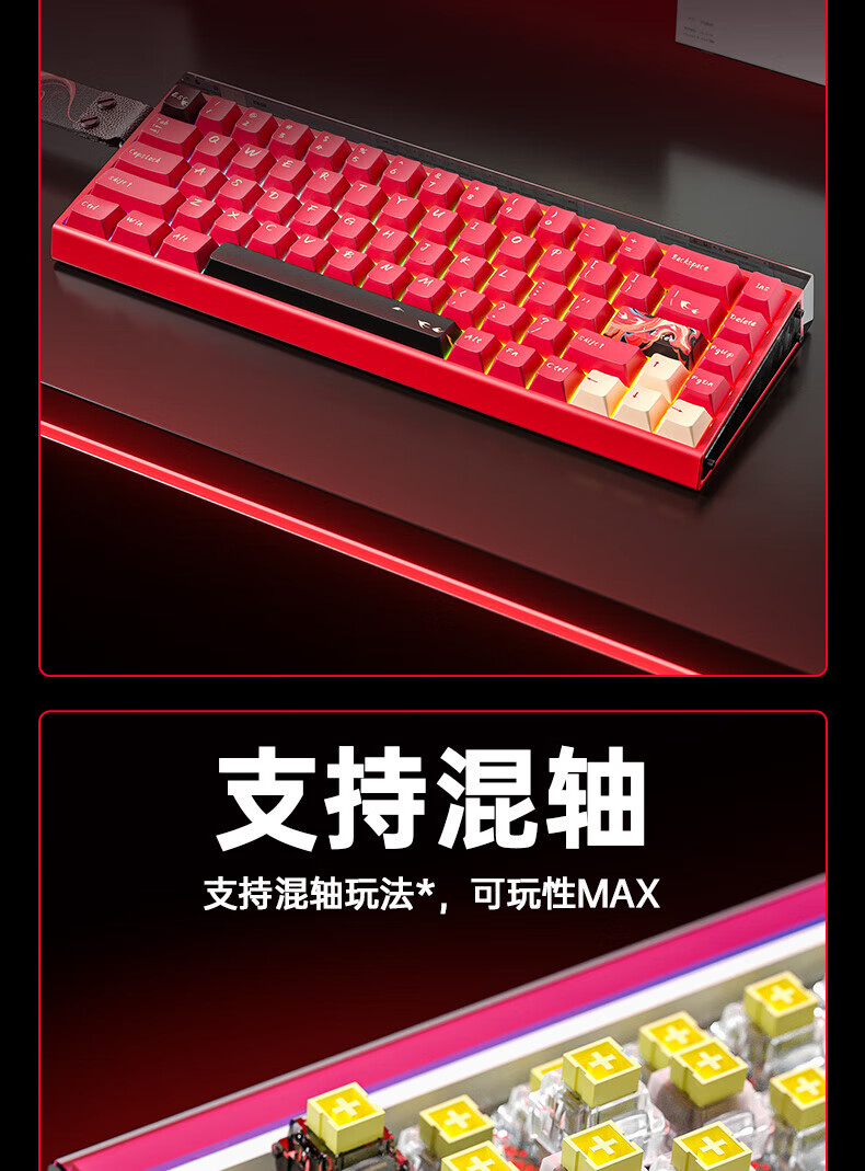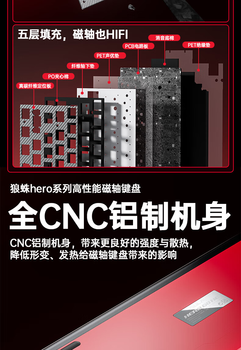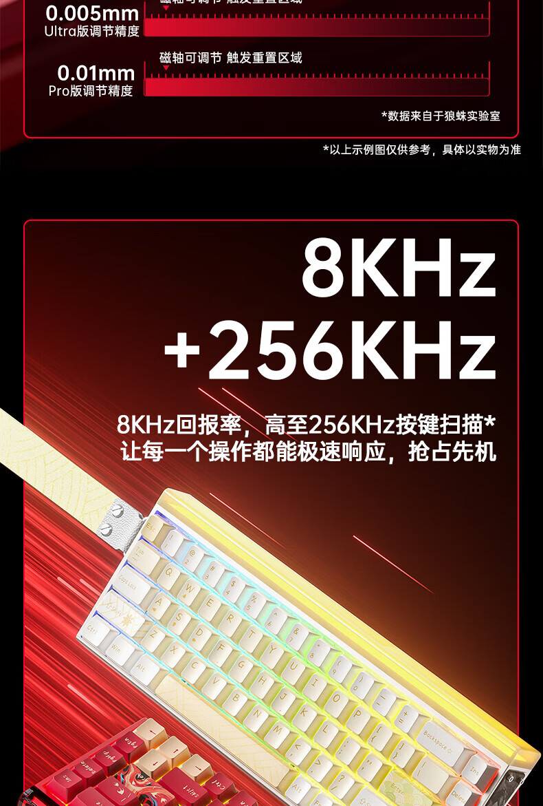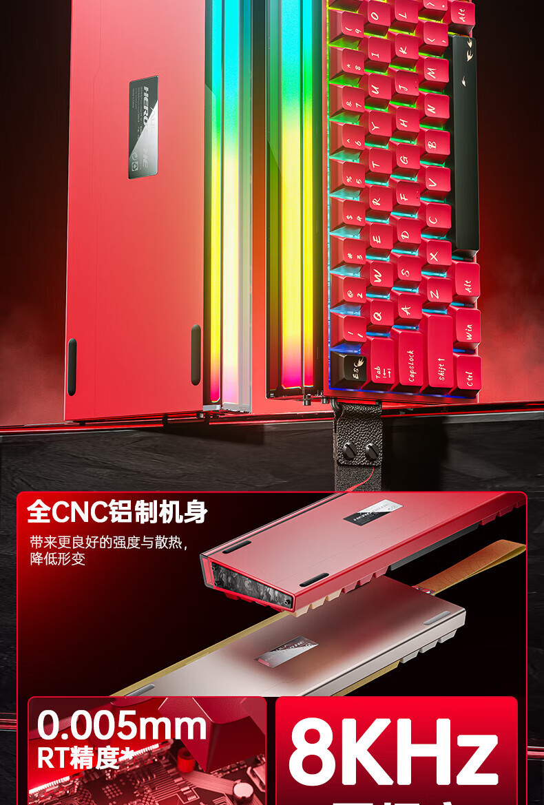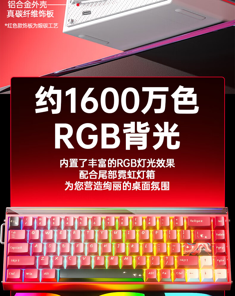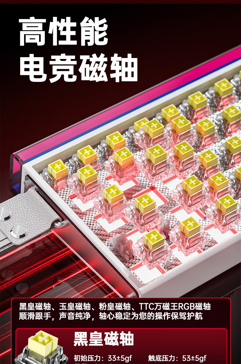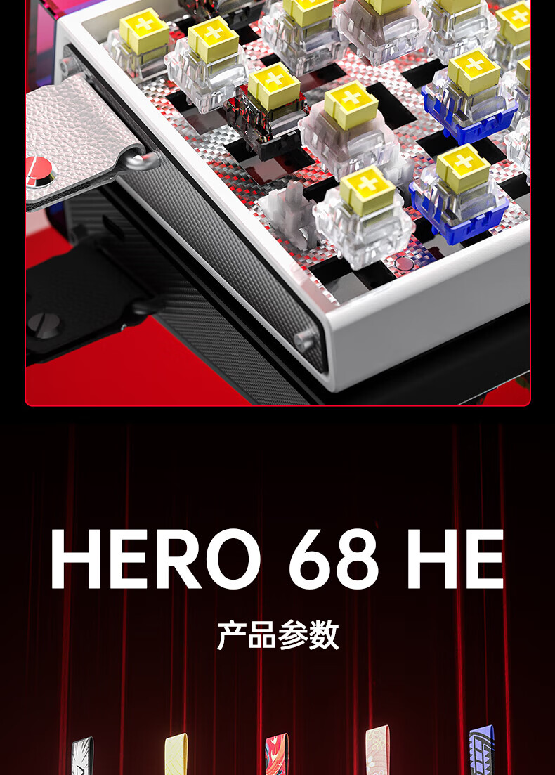 狼蛛(AULA)HERO68HEUltra铝坨坨磁轴键盘RT电竞游戏客制化机械有线RGB灯效万磁王轴网页驱动无畏契约8K回报率 68Ultra 电泳粉色【粉皇磁轴】碳定位板