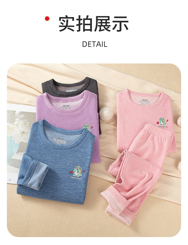 有只绵儿童保暖内衣套装磨毛加绒加厚长袖秋衣秋裤秋冬两件套男孩女童 山羊绒蚕丝恐龙蓝色 均码 140CM