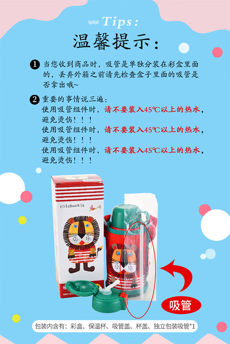虎牌(TIGER)第三代最新款儿童小针鼹保温杯双杯盖杯MBR吸管款600ML双十一礼物