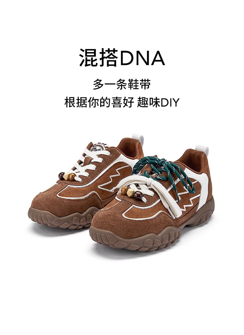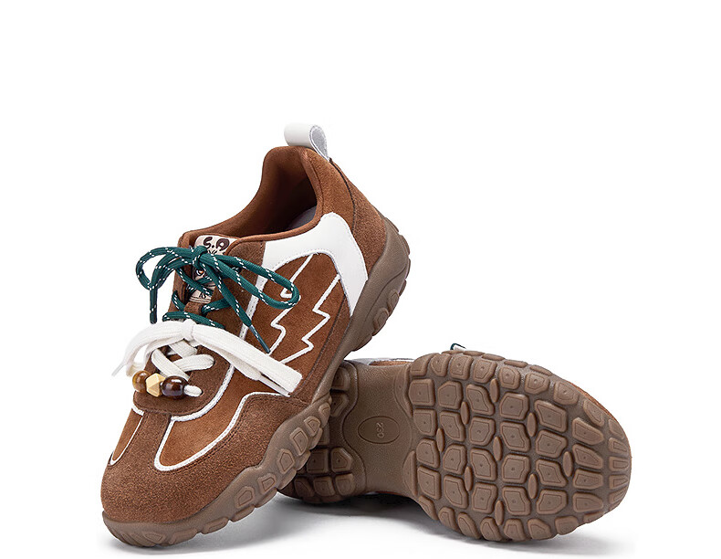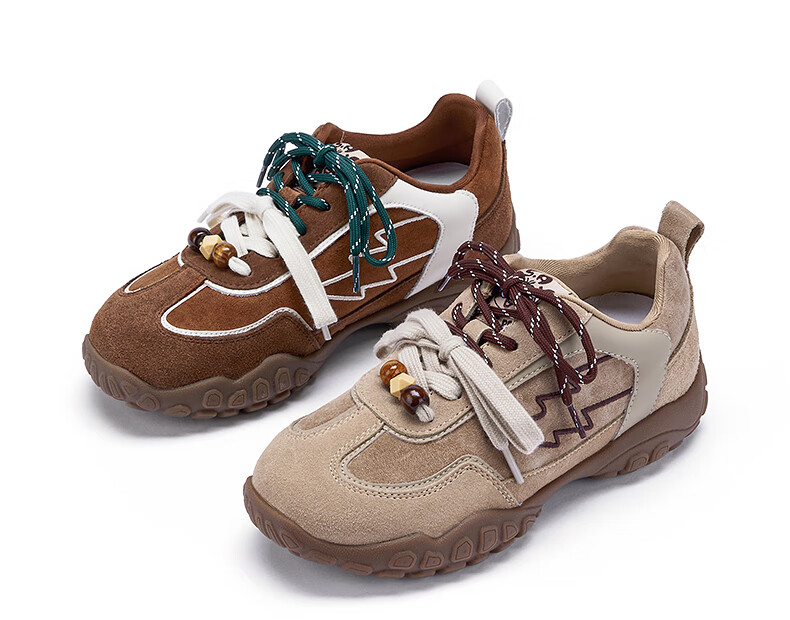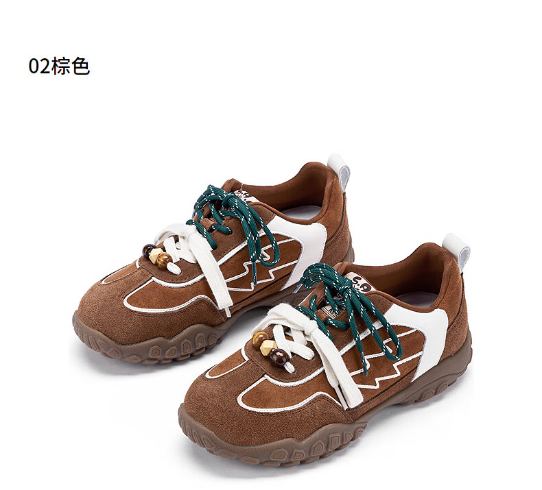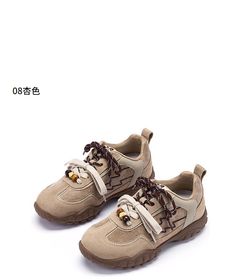 热风【迪士尼系列】女鞋2025年冬季新款百搭德训鞋复古休闲慢跑鞋 08杏色 37