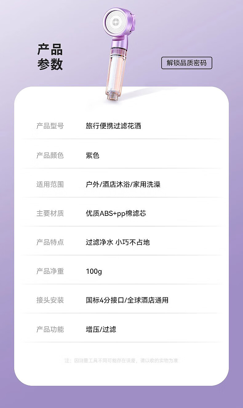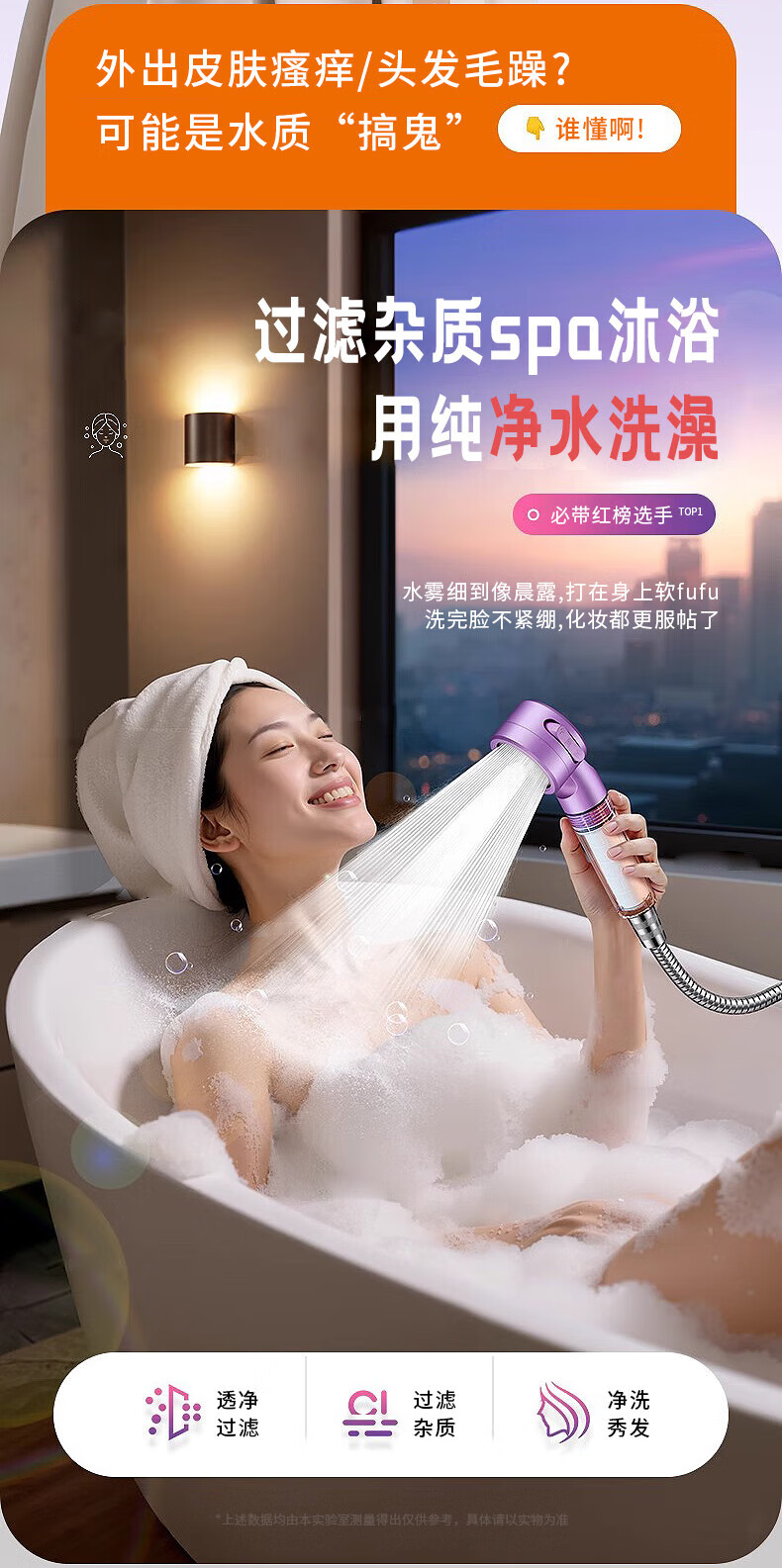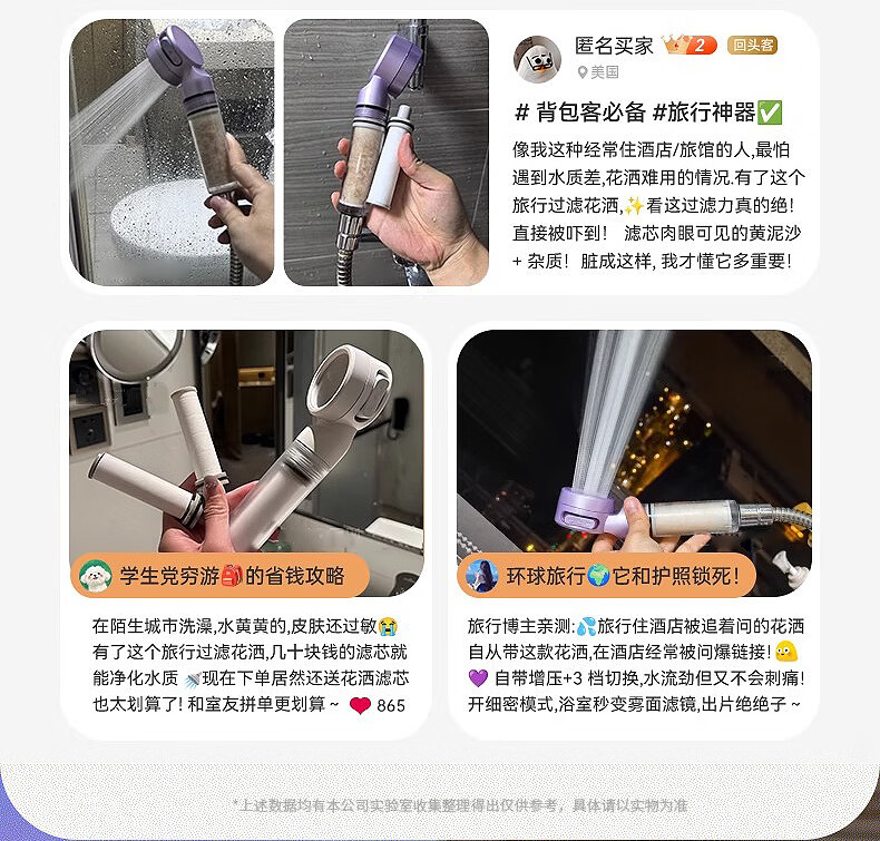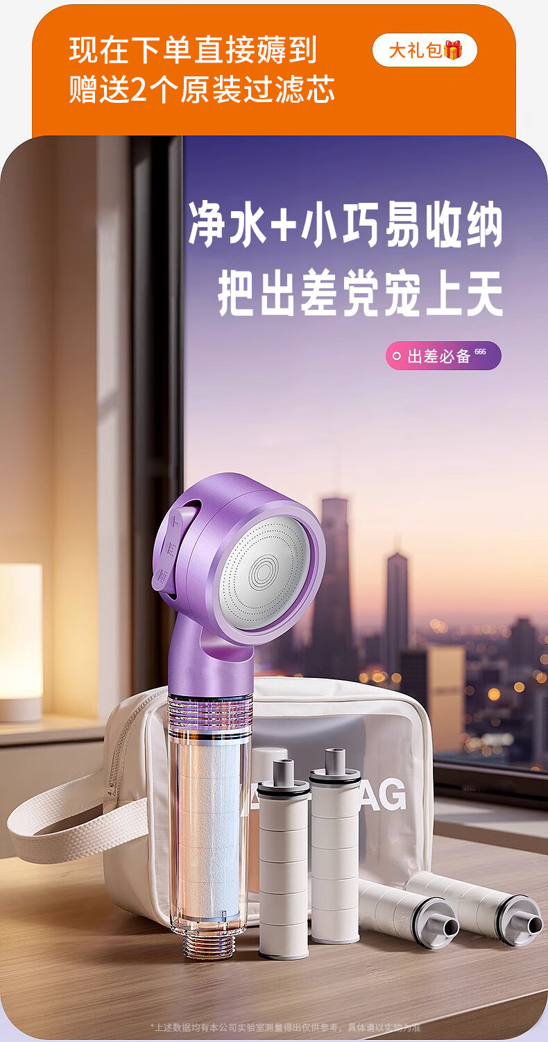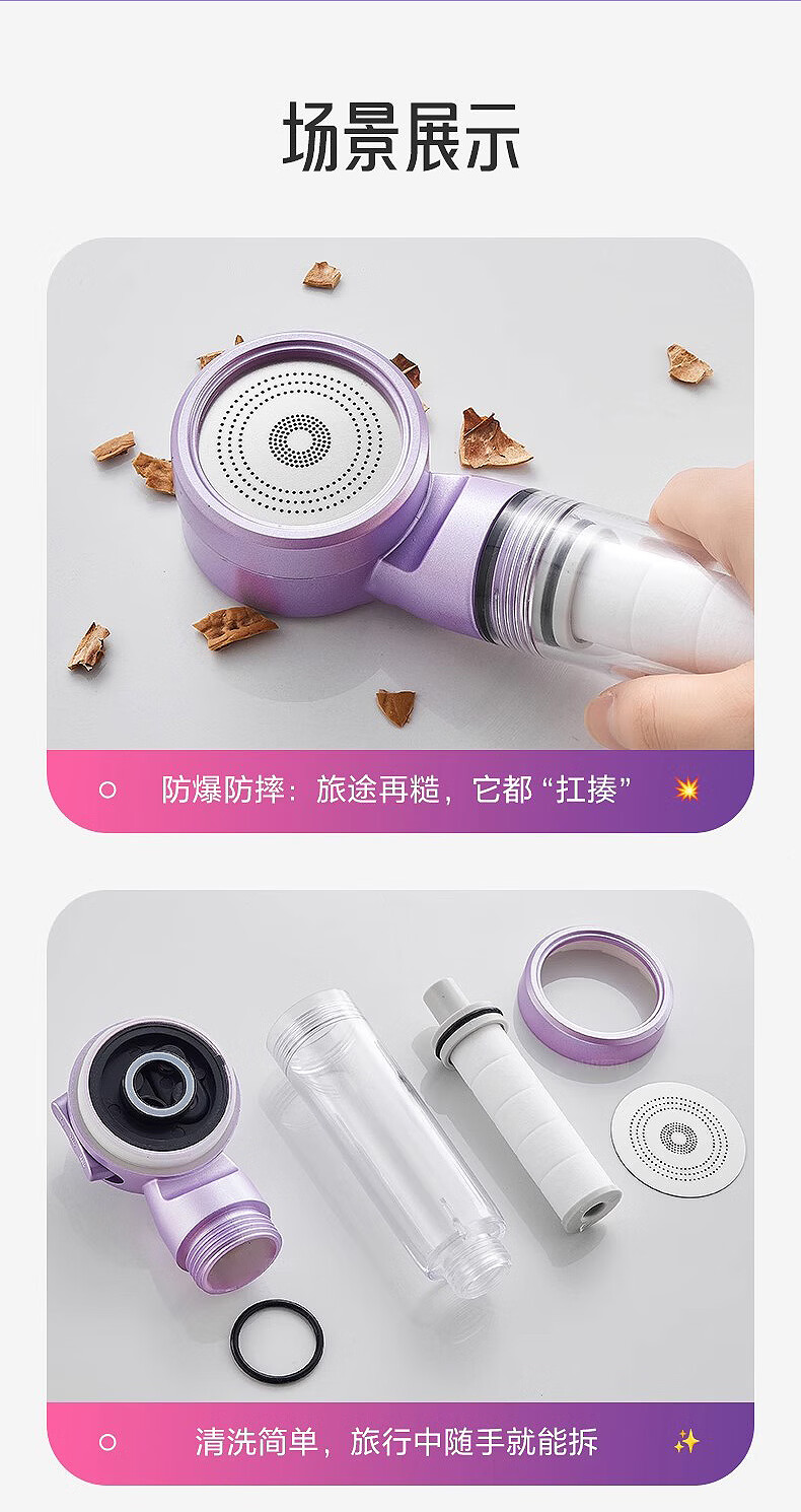 X-GRKE【德国】旅行便携过滤花洒喷头净水滤芯浴室洗澡增压婴儿淋浴花洒 旅行便携花洒【过滤款】莫奈紫 迷你婴儿通用丨配高精度滤芯x3