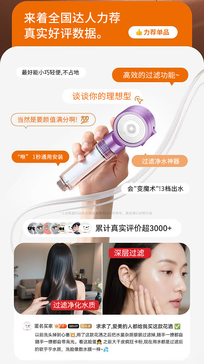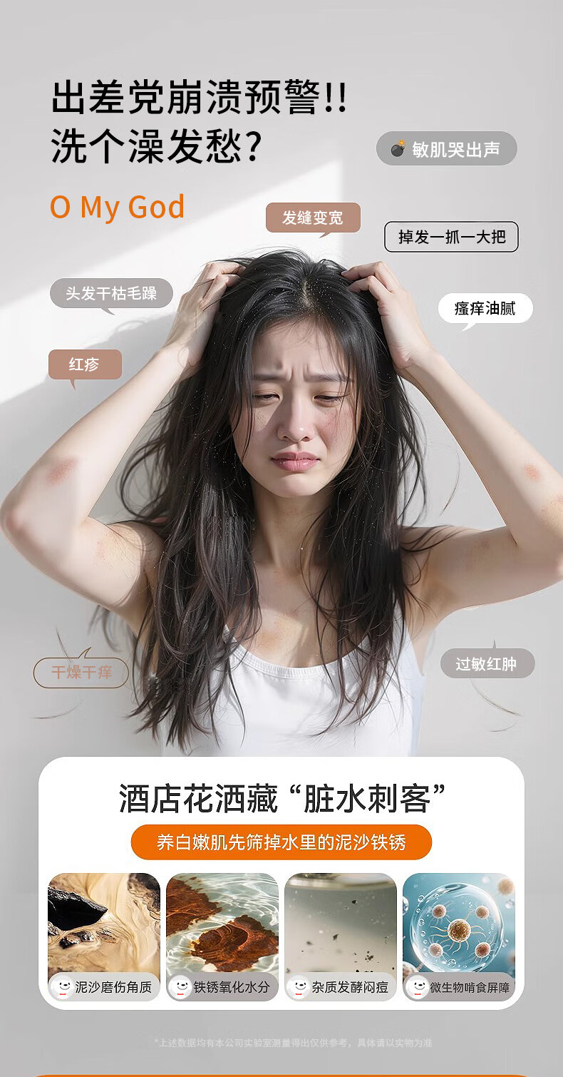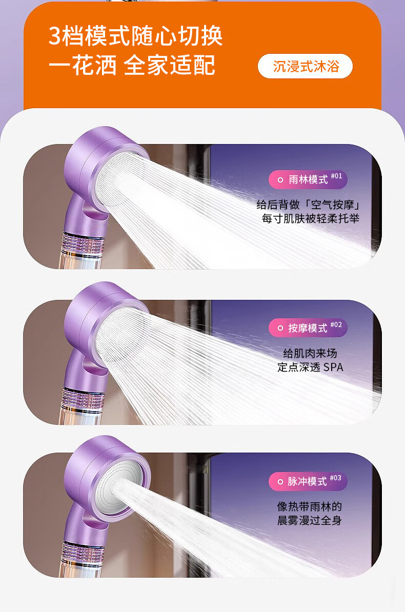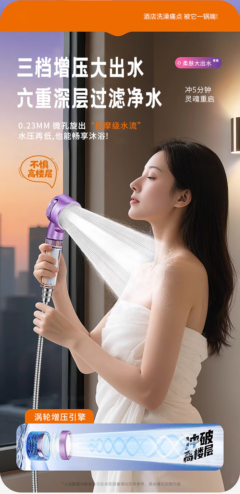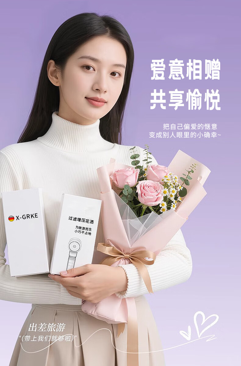 X-GRKE【德国】旅行便携过滤花洒喷头净水滤芯浴室洗澡增压婴儿淋浴花洒 旅行便携花洒【过滤款】莫奈紫 迷你婴儿通用丨配高精度滤芯x3