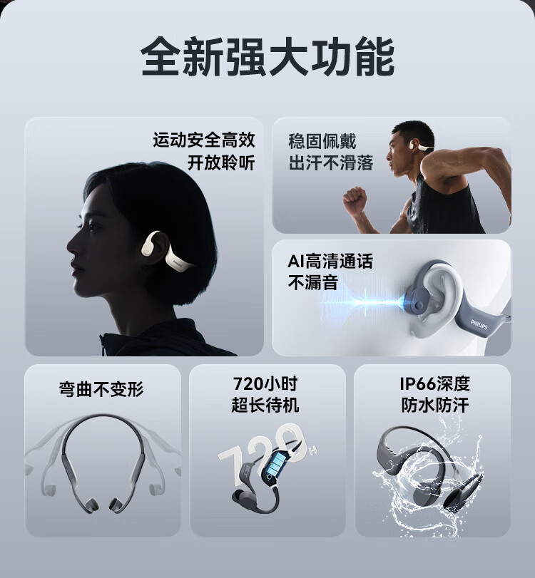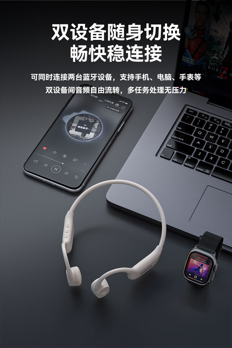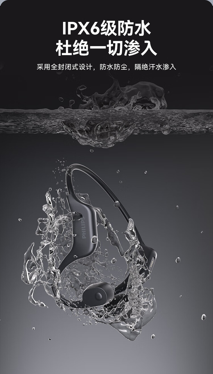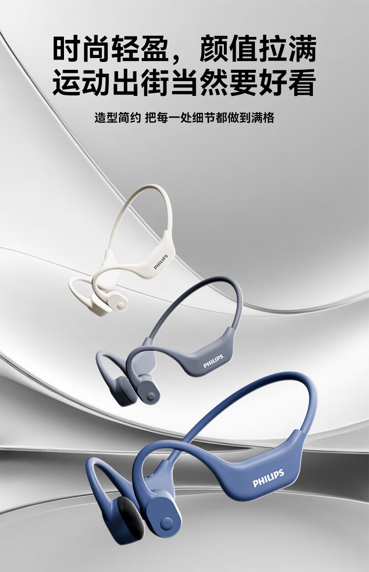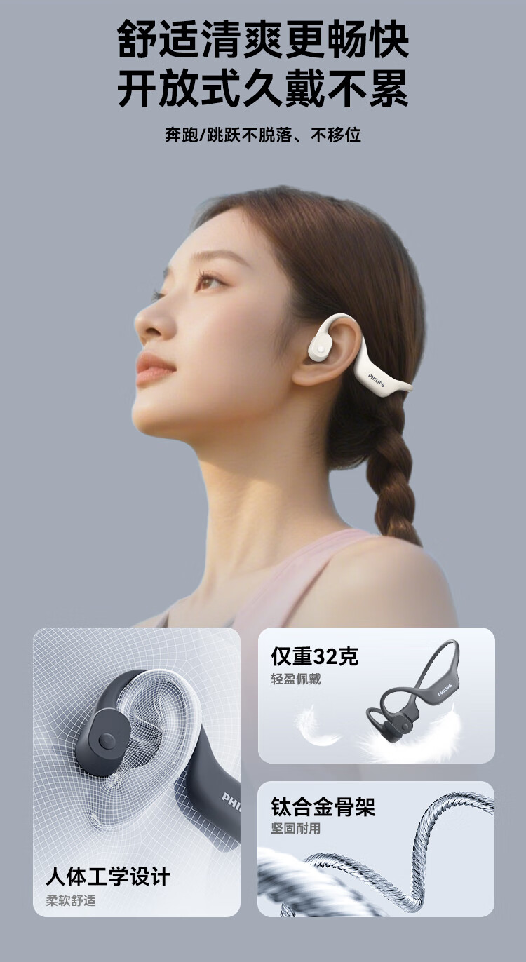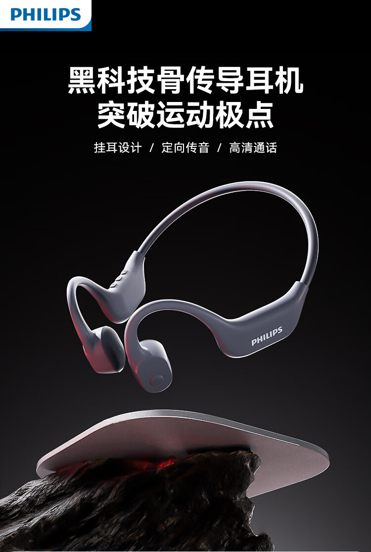飞利浦(PHILIPS)骨传导蓝牙耳机专业运动跑步挂耳式真无线开放式不入耳夹式长续航高端降噪礼物TAA6609C黑色