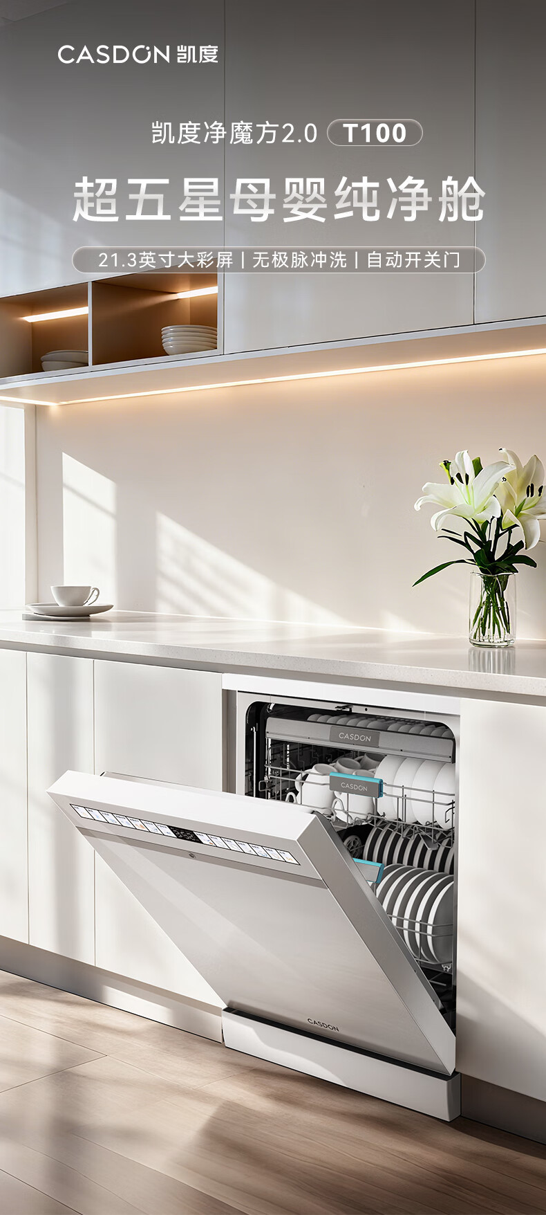 凯度(CASDON)净魔方2.0 洗碗机嵌入式 智能16套+3 全自动家用烘干独立式 一级水效 XWDQ16-T100-W白色