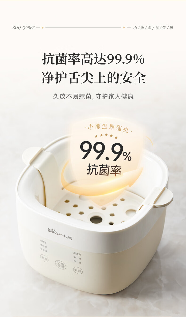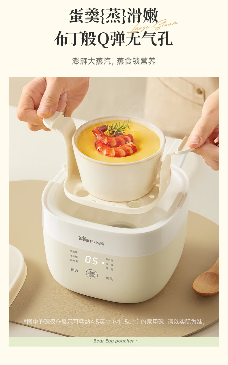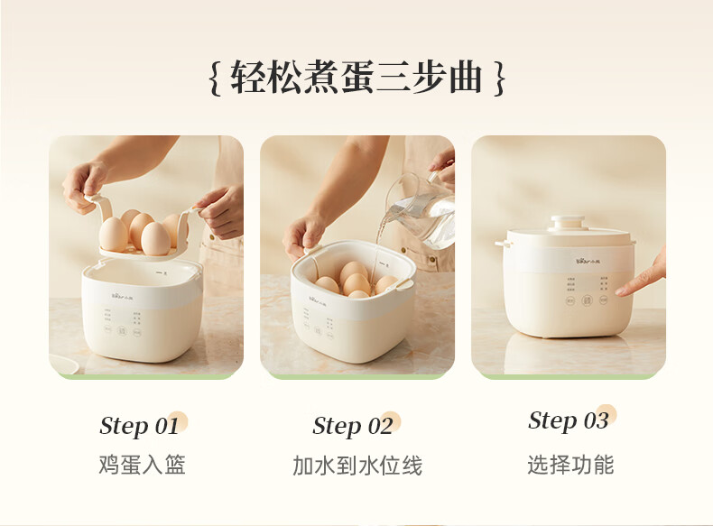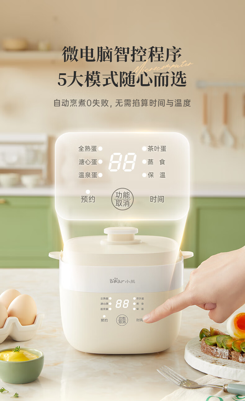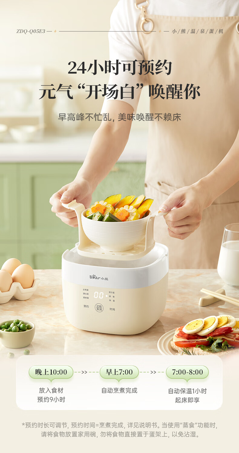 小熊(Bear)煮蛋器 蒸蛋器 温泉蛋机 智能预约定时自动断电 煮鸡蛋神器溏心蛋茶叶蛋 早餐一体机 双层 ZDQ-T10Y2【配蛋架+蒸笼+蒸碗】