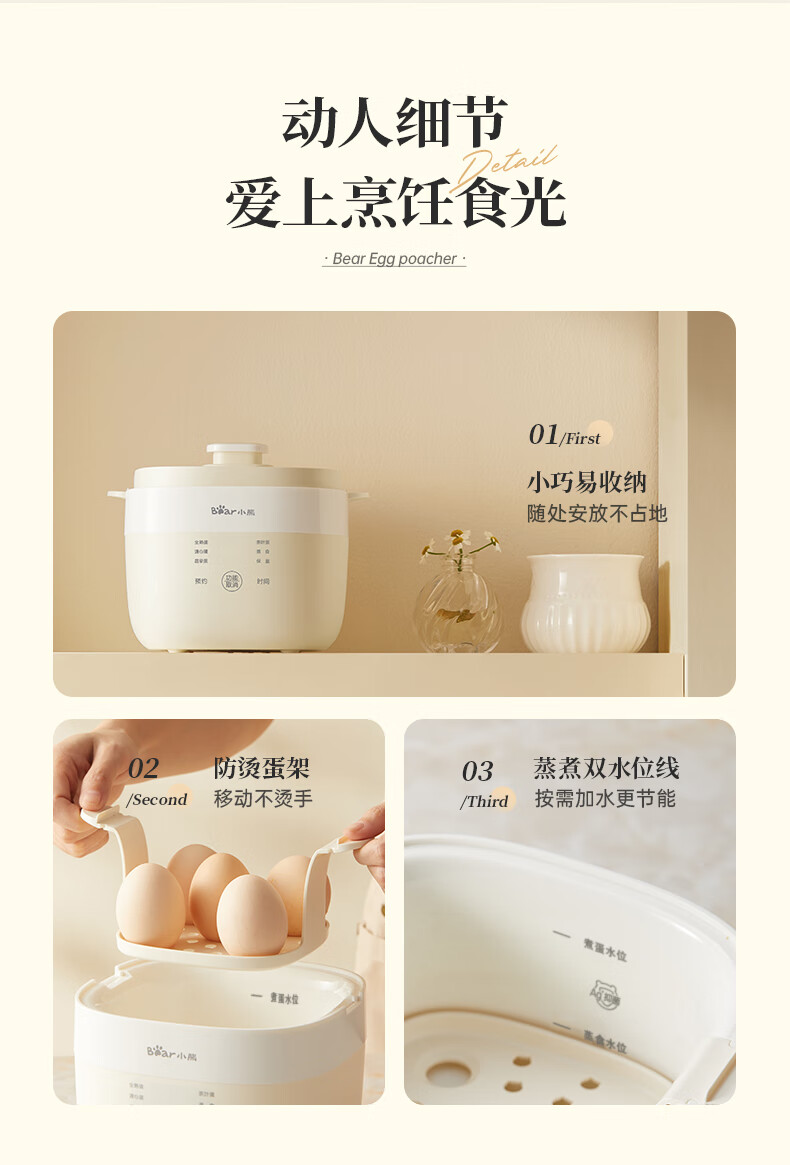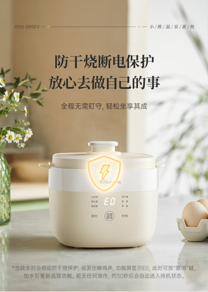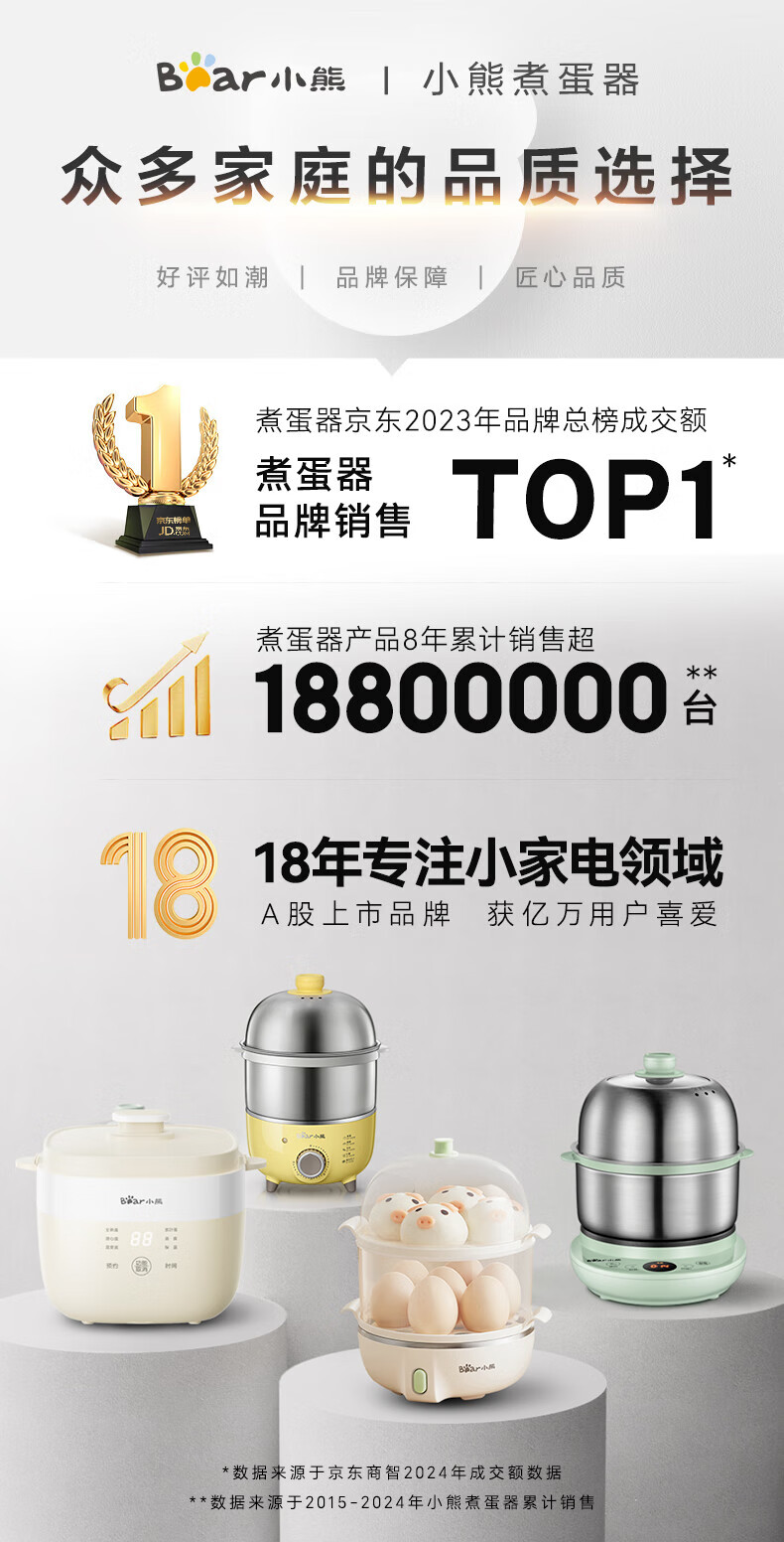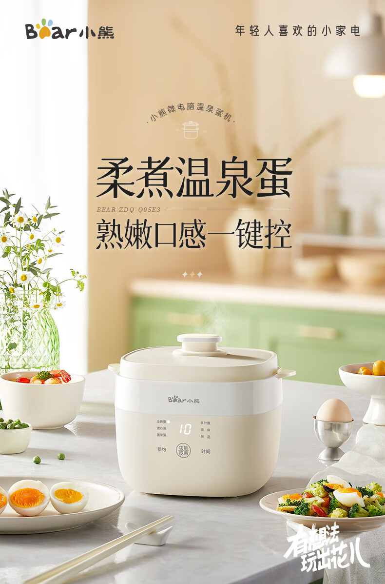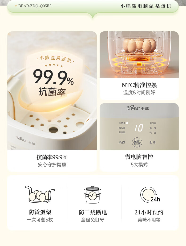小熊(Bear)煮蛋器 蒸蛋器 温泉蛋机 智能预约定时自动断电 煮鸡蛋神器溏心蛋茶叶蛋 早餐一体机 双层 ZDQ-T10Y2【配蛋架+蒸笼+蒸碗】
