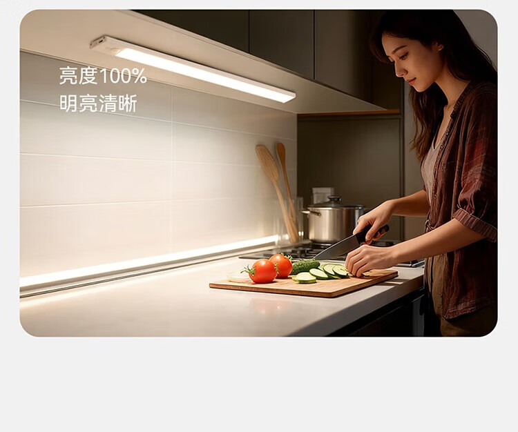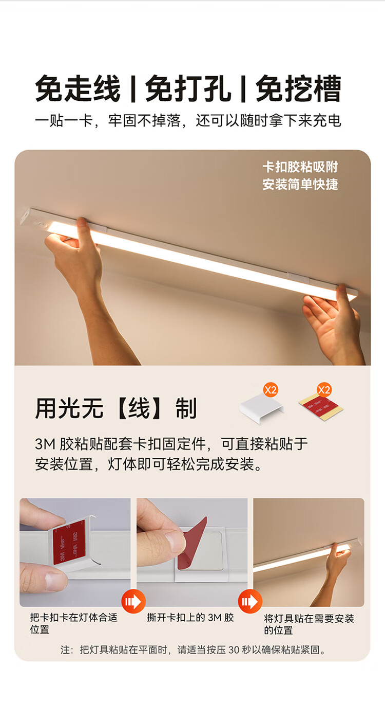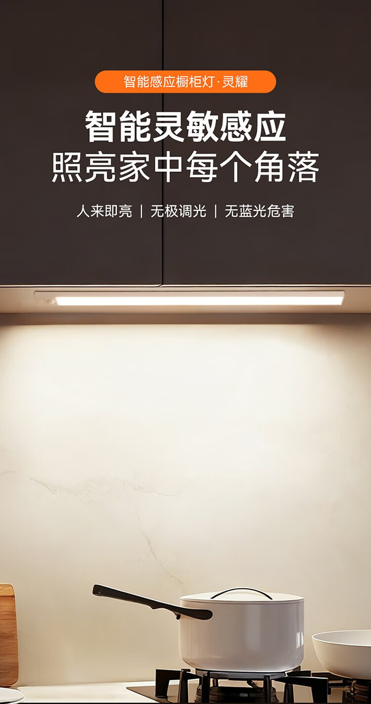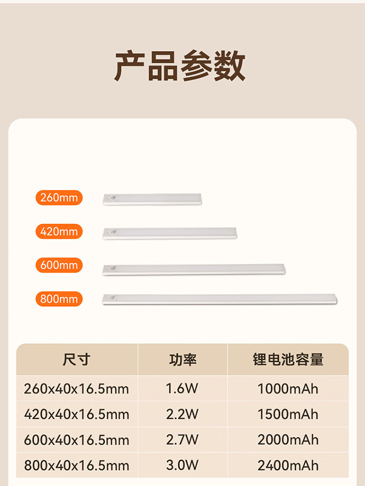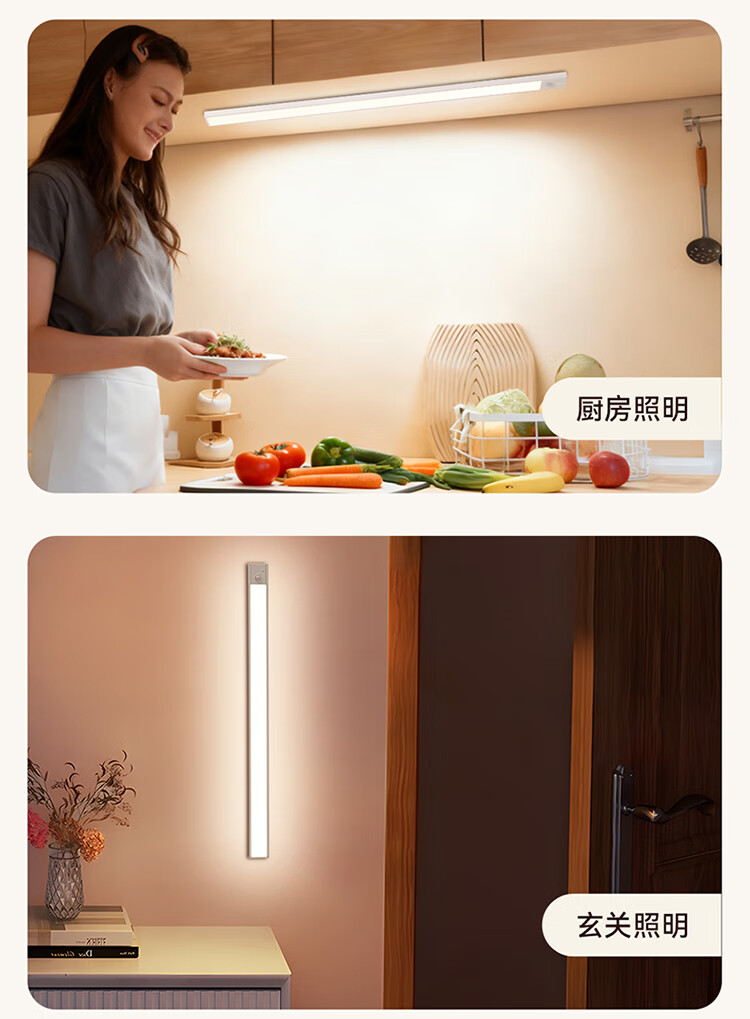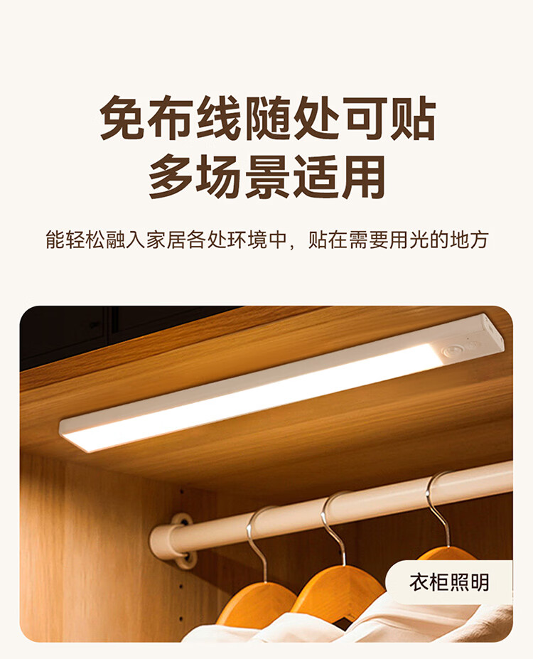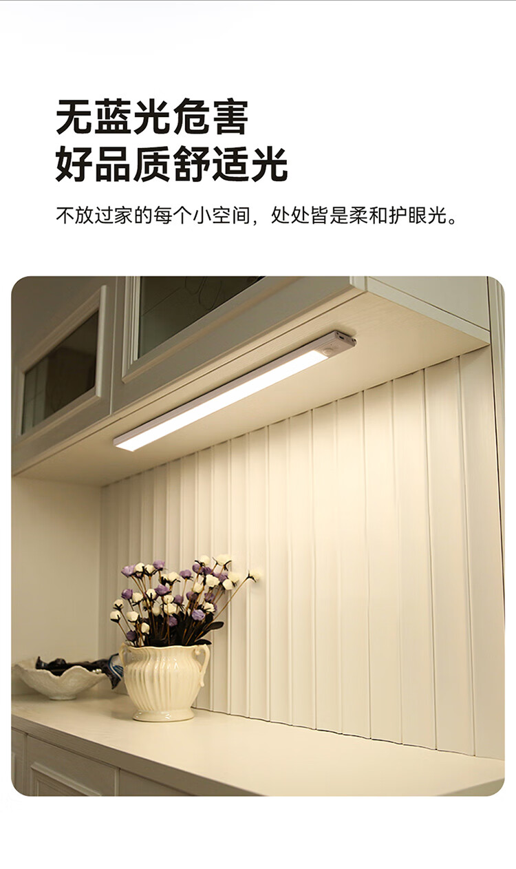 雷士照明LED橱柜灯带充电式人体感应厨房照明衣柜子酒柜磁吸灯条 【基础款】80cm-三色光-2400mAh-充电-光控-常亮