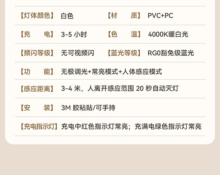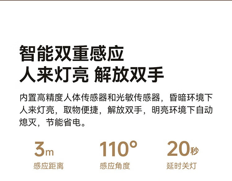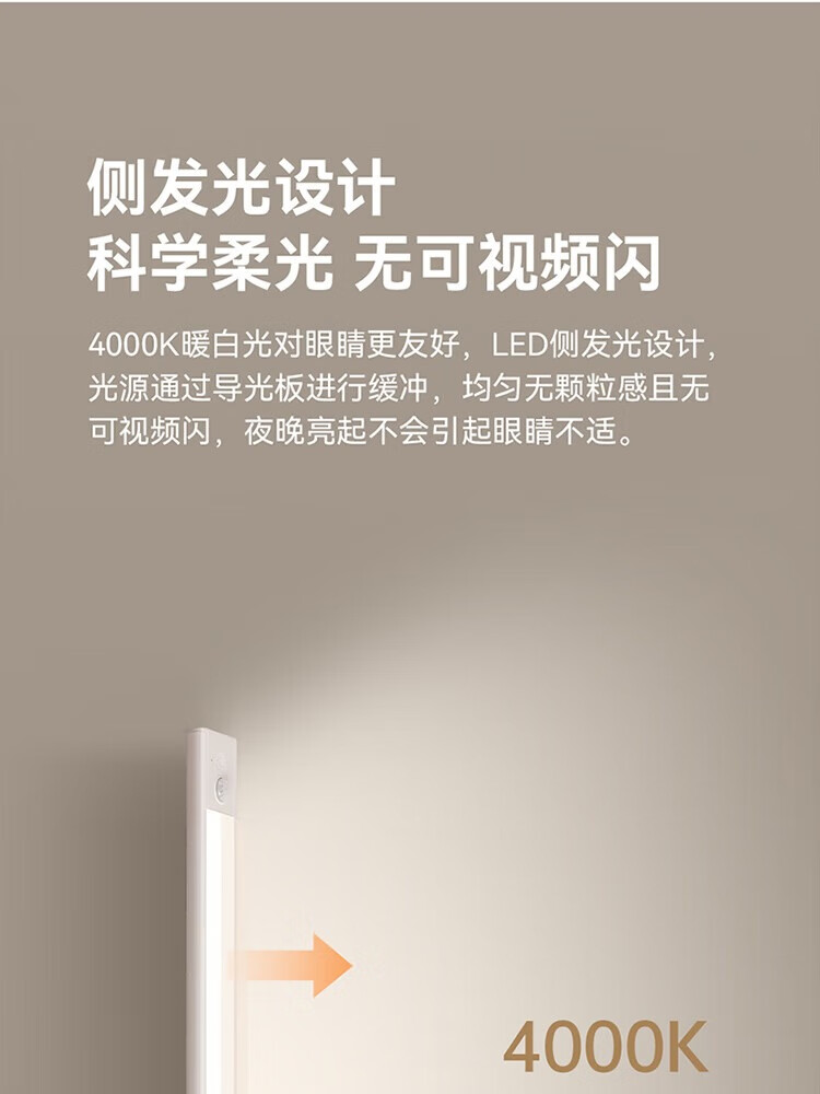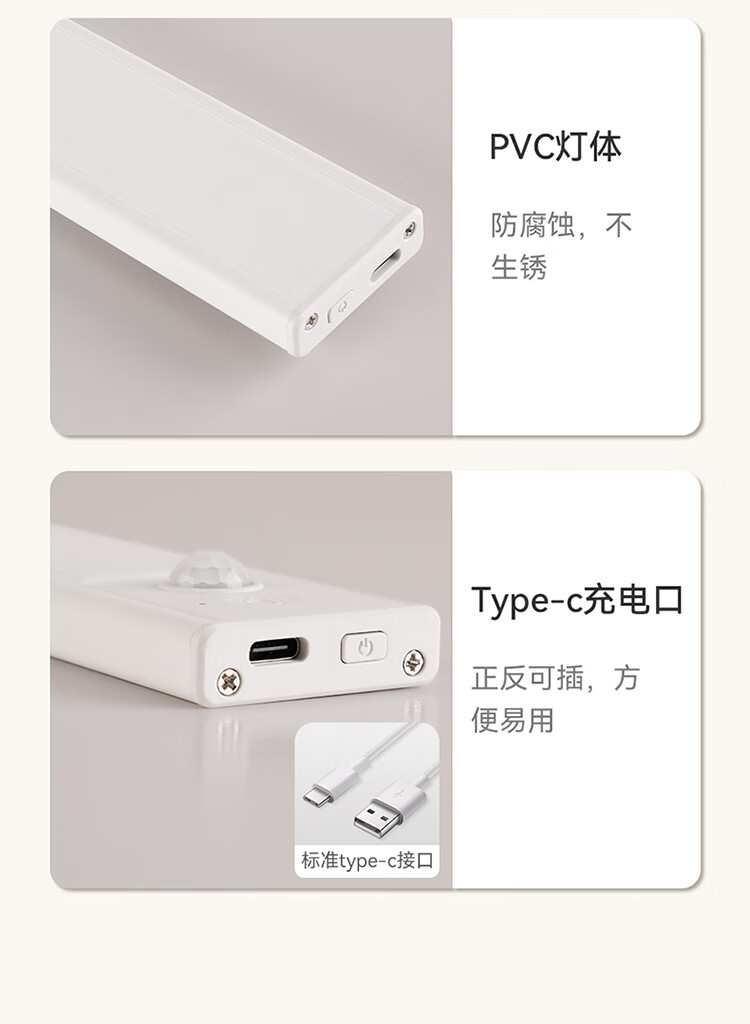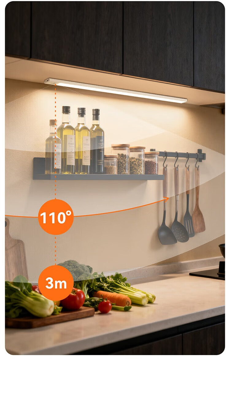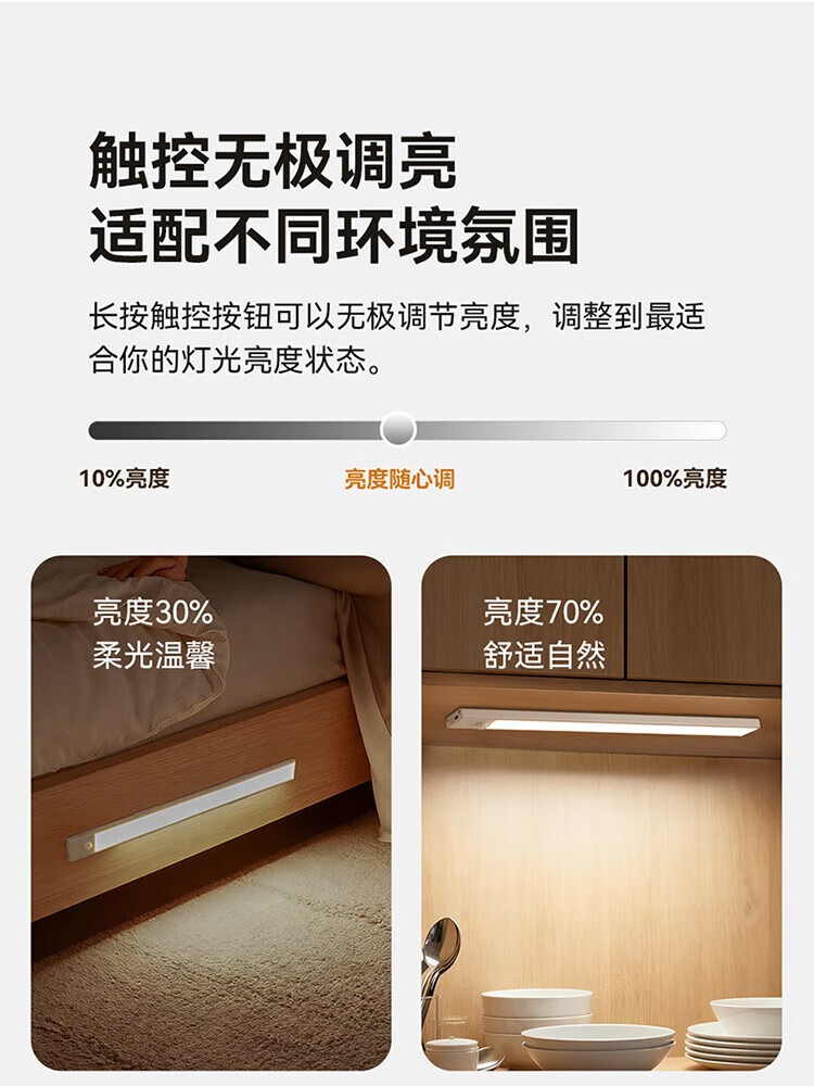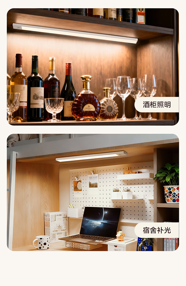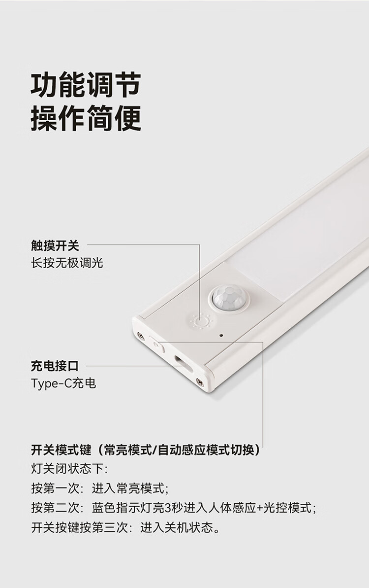 雷士照明LED橱柜灯带充电式人体感应厨房照明衣柜子酒柜磁吸灯条 【基础款】80cm-三色光-2400mAh-充电-光控-常亮