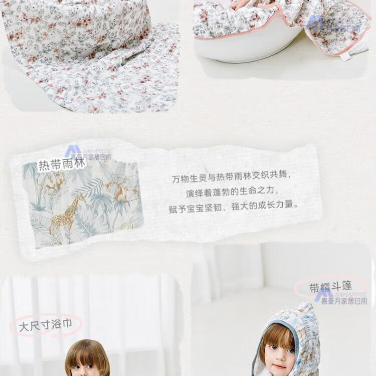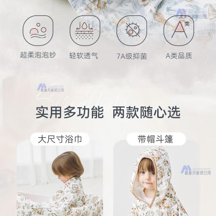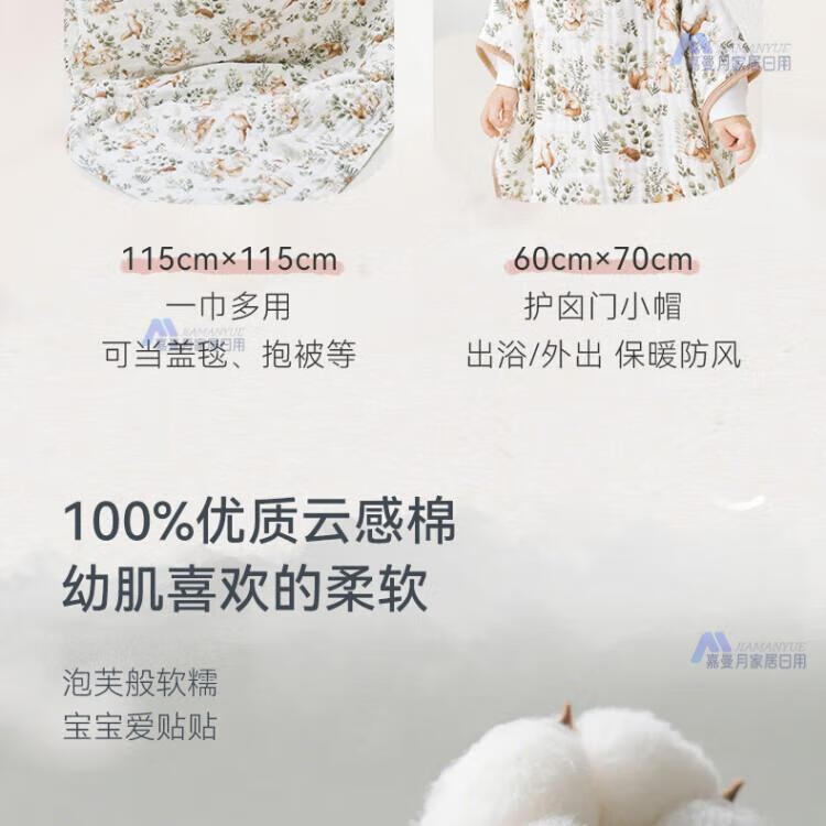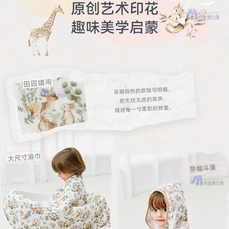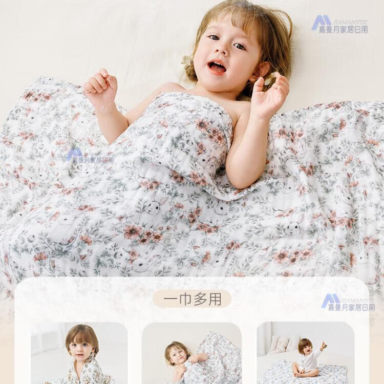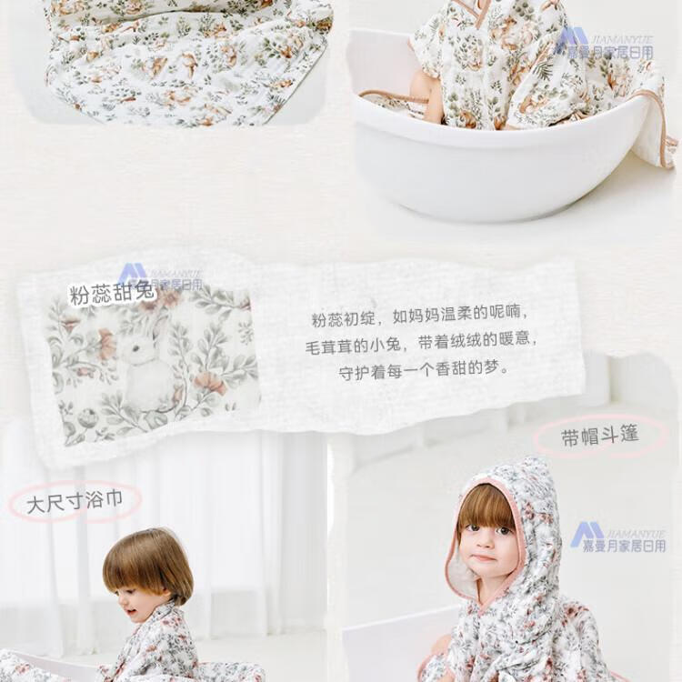 DEATKN德国全棉泡泡纱布浴巾新生婴儿儿童浴巾a类纯棉7A 粉蕊甜兔-大尺寸浴巾_115cm*115cm