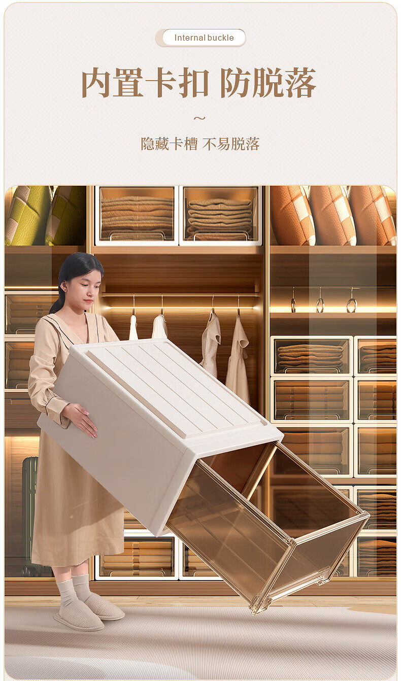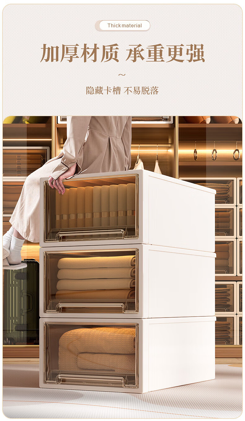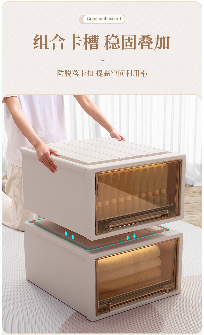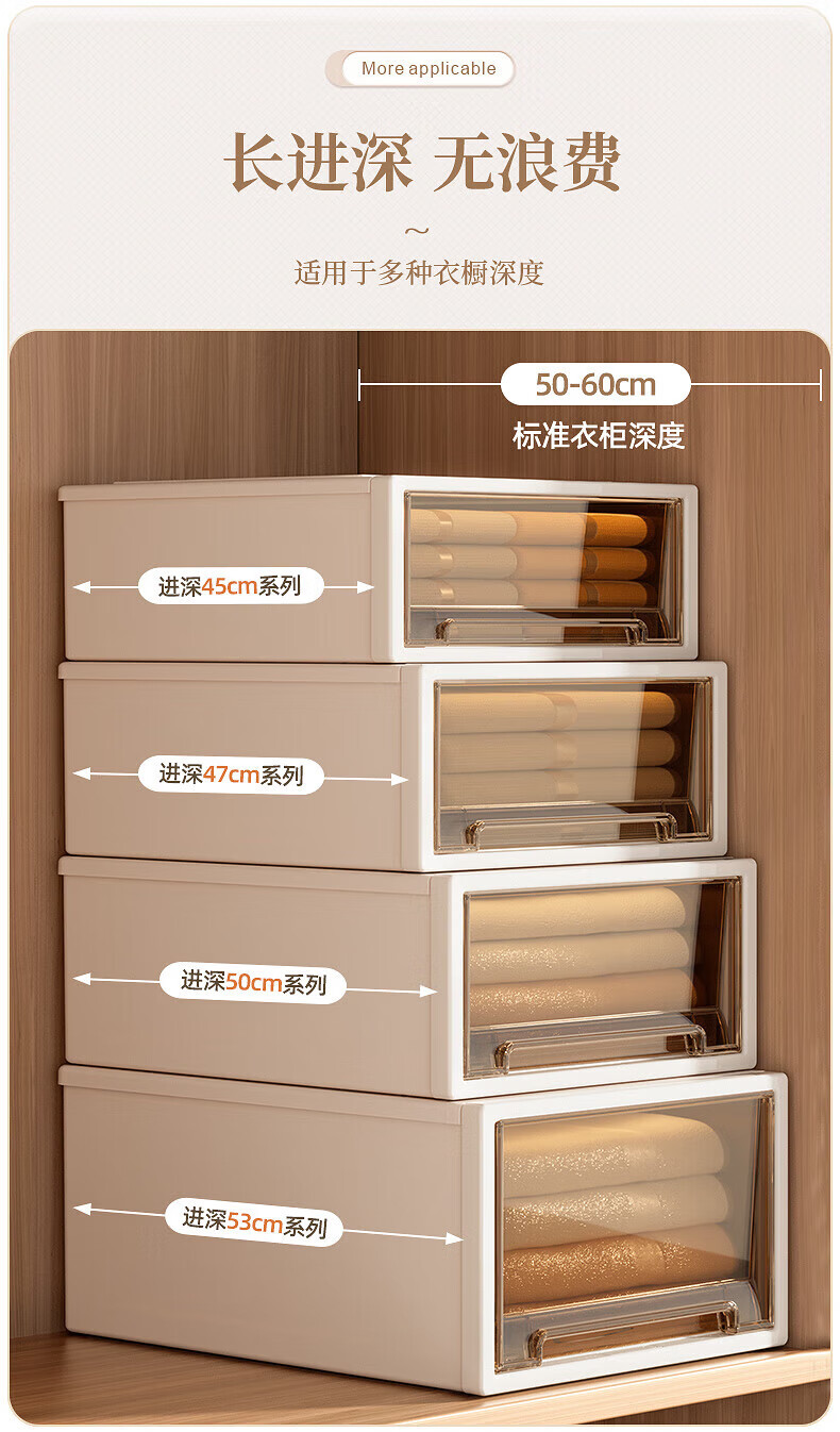 稻草熊(DOCOXO)抽屉式收纳箱透明衣柜大号衣服整理箱超大号储物箱塑料收纳柜子 深37*宽26*高14.2 杏色外壳+透明抽屉【1个装】