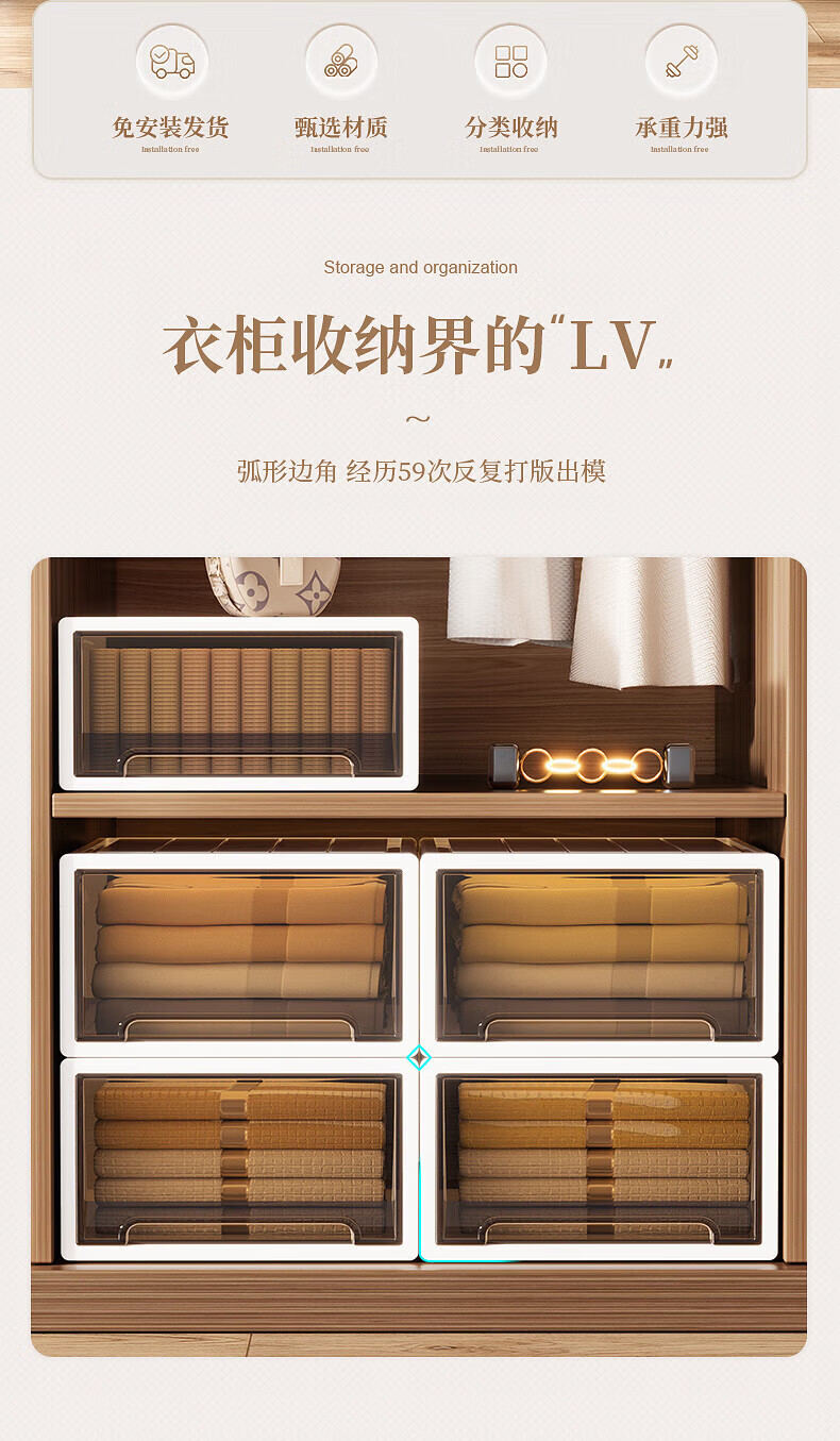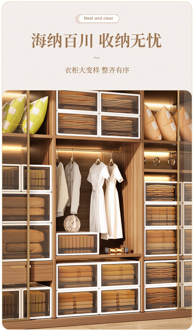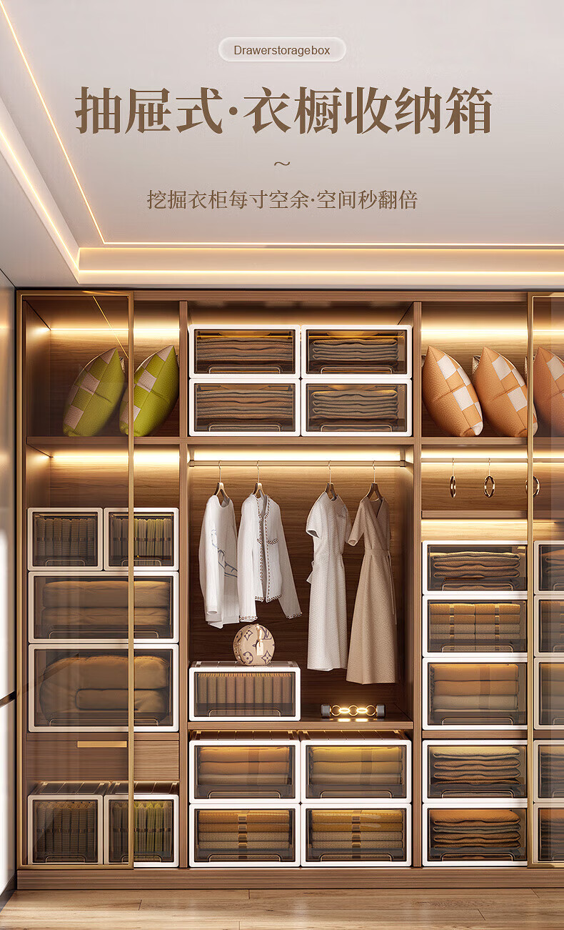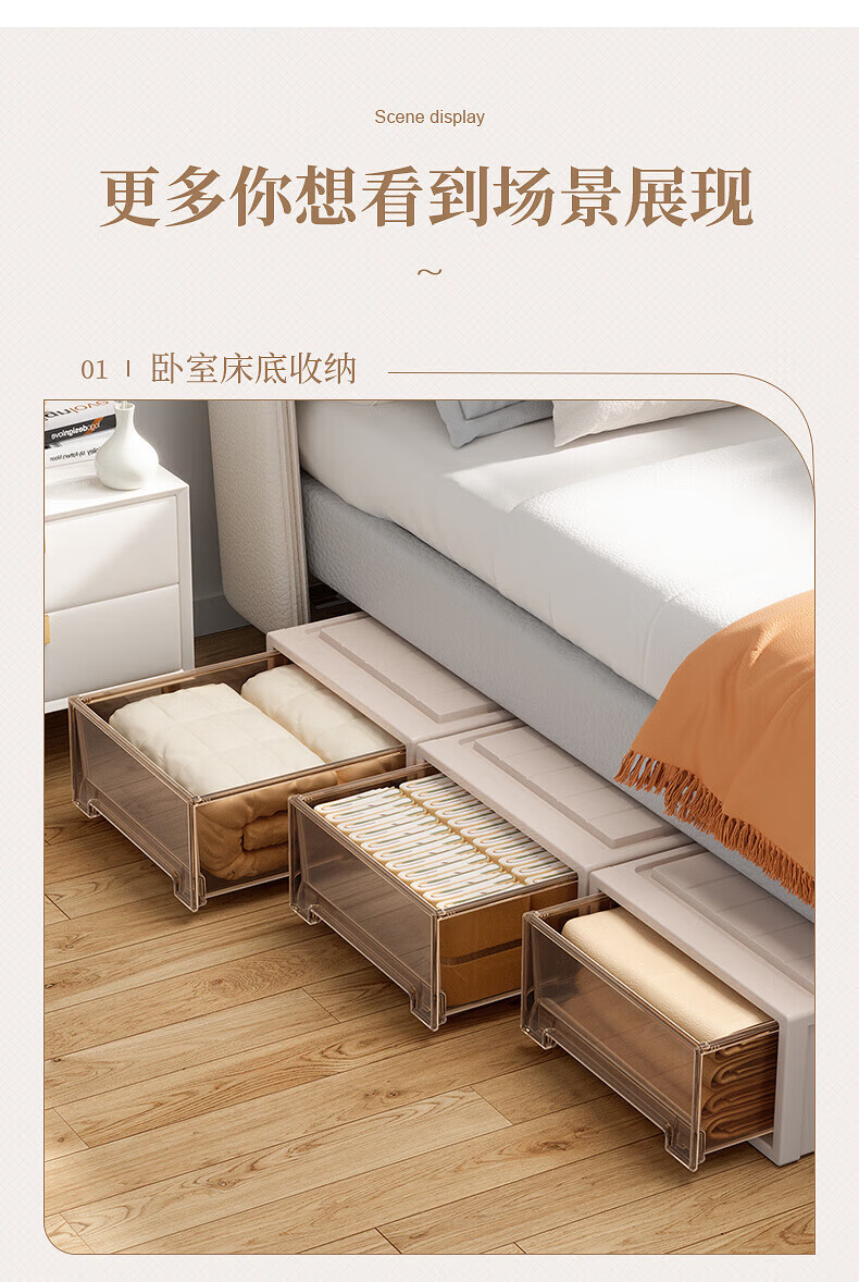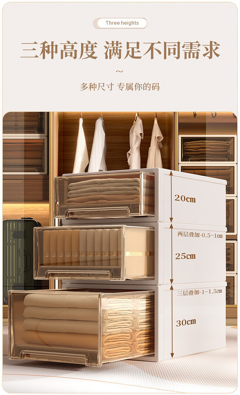稻草熊(DOCOXO)抽屉式收纳箱透明衣柜大号衣服整理箱超大号储物箱塑料收纳柜子 深37*宽26*高14.2 杏色外壳+透明抽屉【1个装】