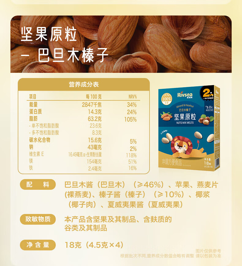 禾泱泱坚果原粒宝宝零食 无添加白砂糖 儿童坚果营养坚果溶溶豆 巴旦木榛子坚果原粒