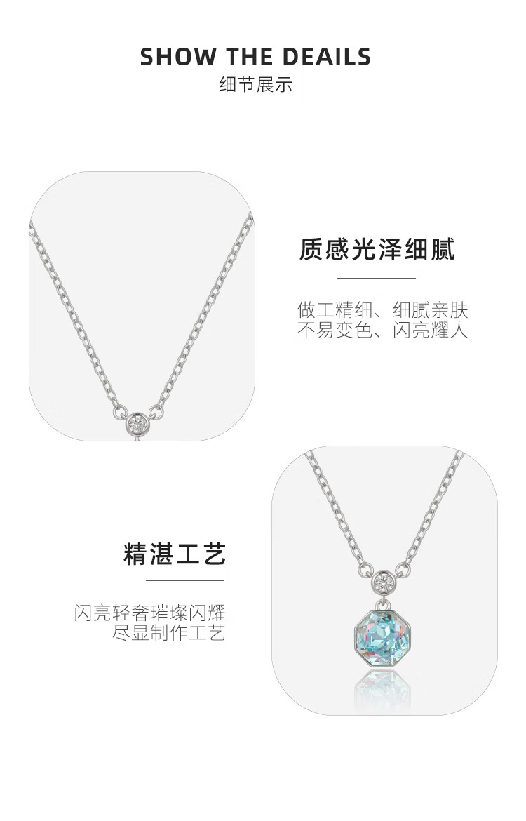 XUPING旭平首饰极简DIY搭配 女项链日常百搭送生日礼物 方/水晶玫瑰色 约40+5cm