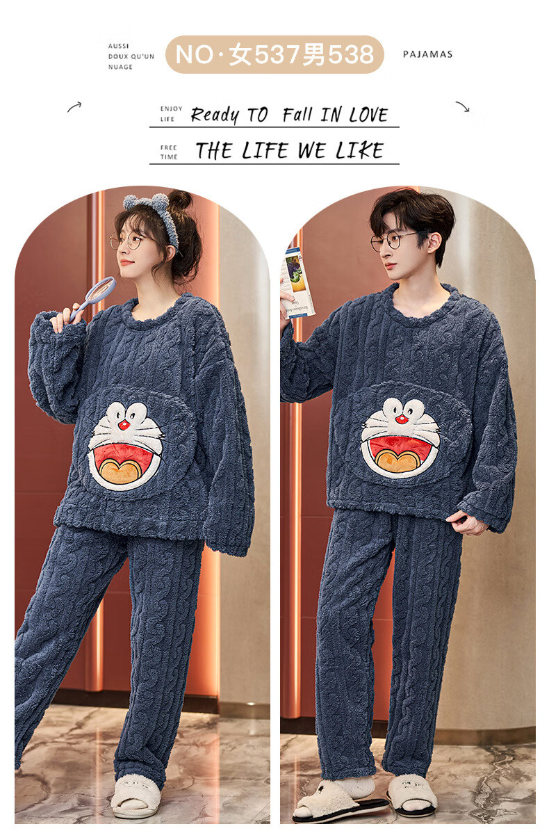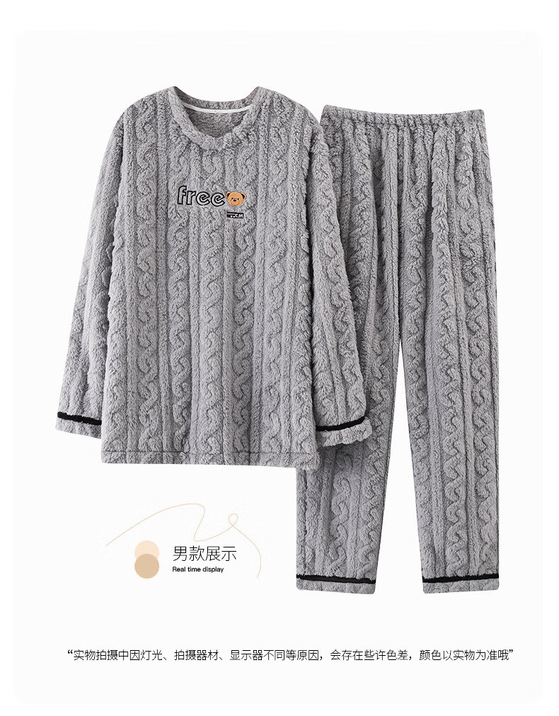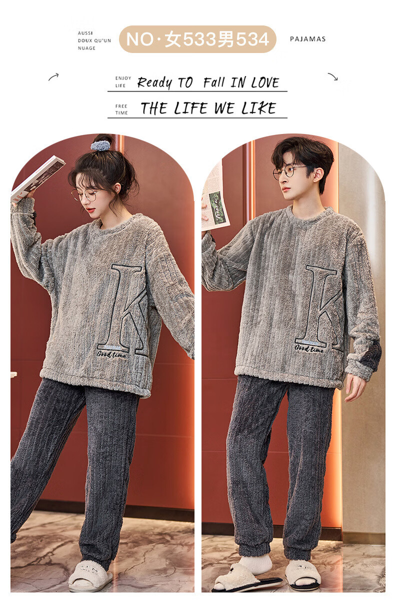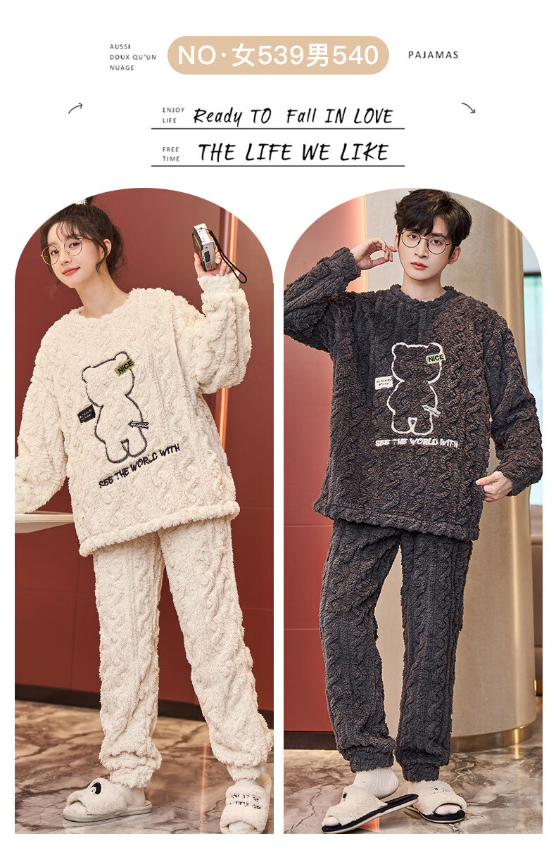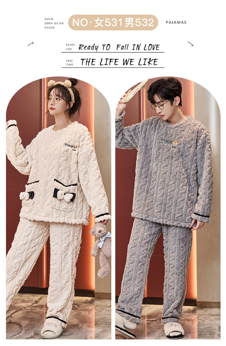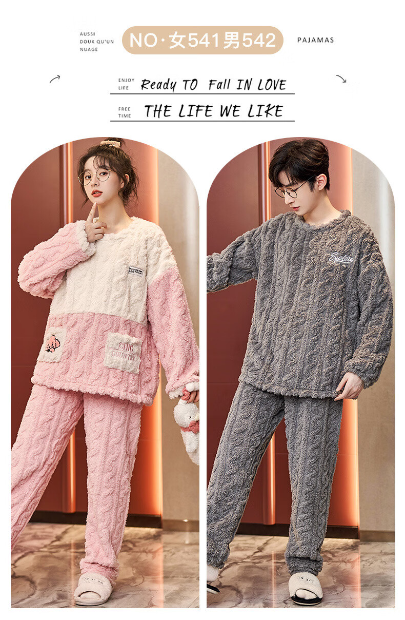 DAPHNE达芙妮【A】冬季情侣睡衣法兰绒加厚珊瑚绒舒适长袖套头男女孕妇家居服 541-542 男款:XXXL(150-170斤)