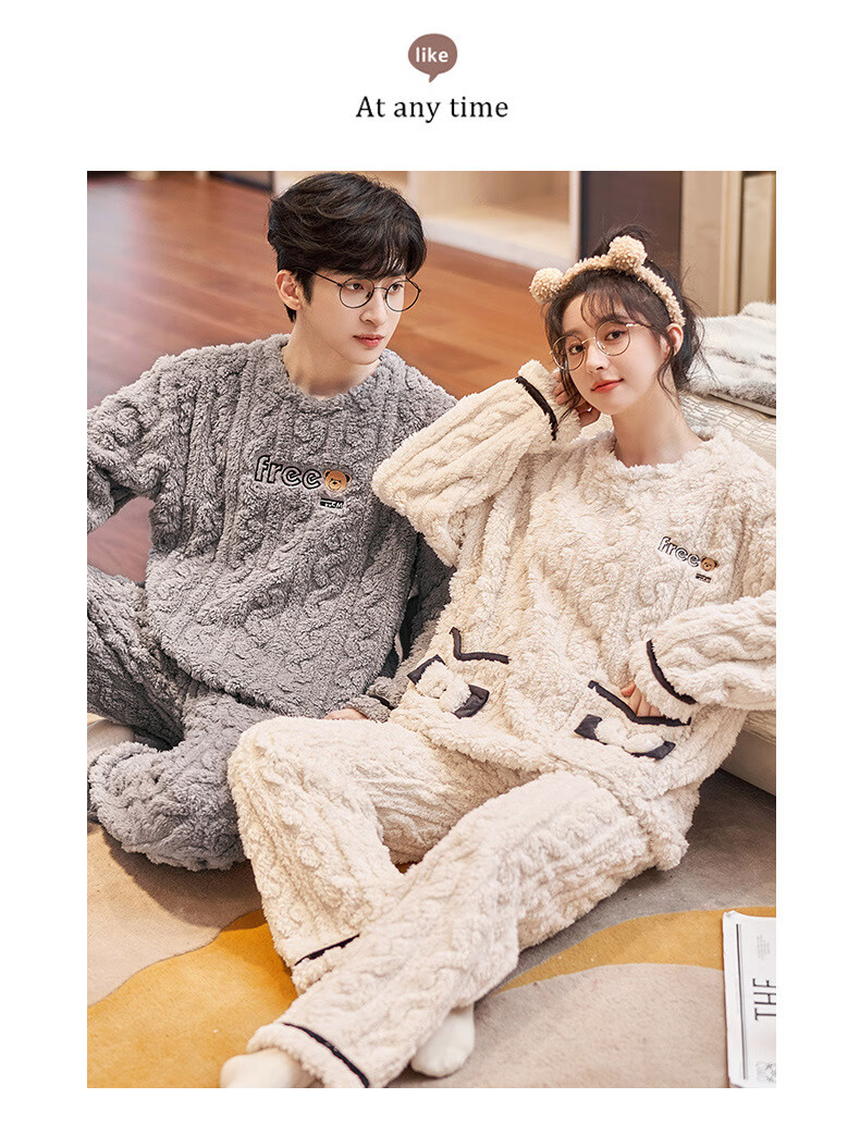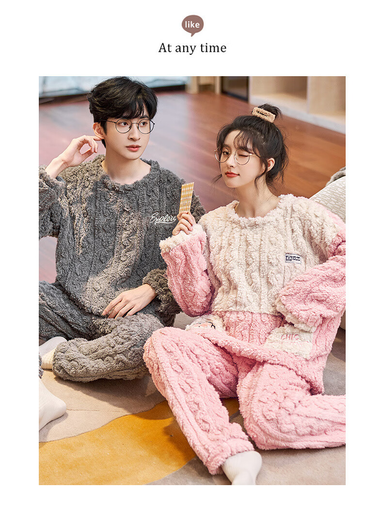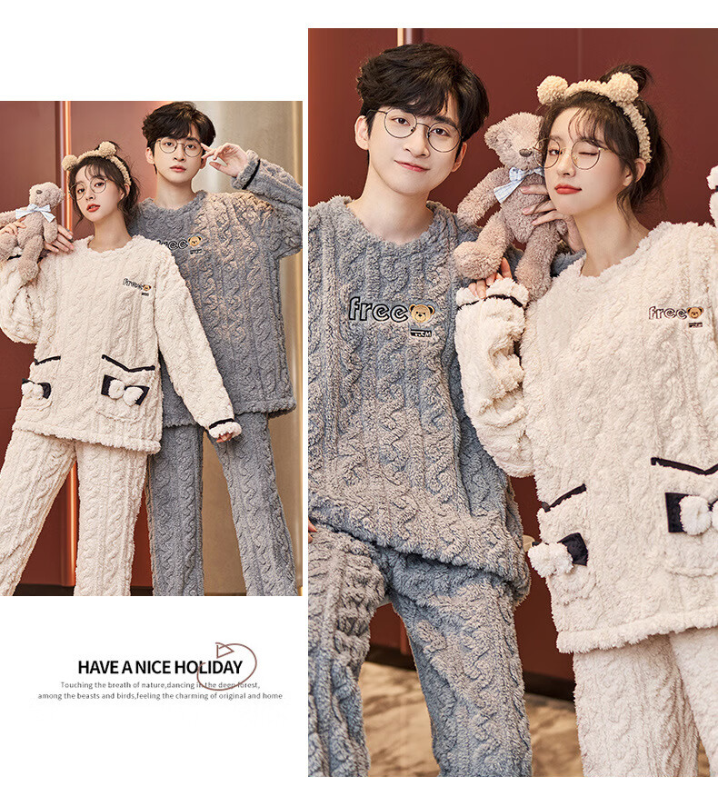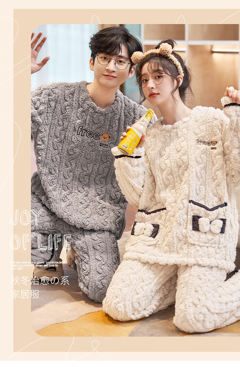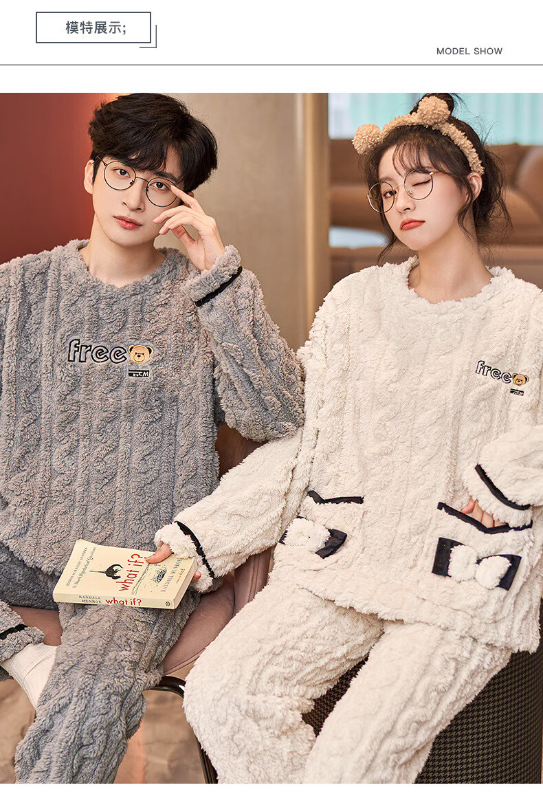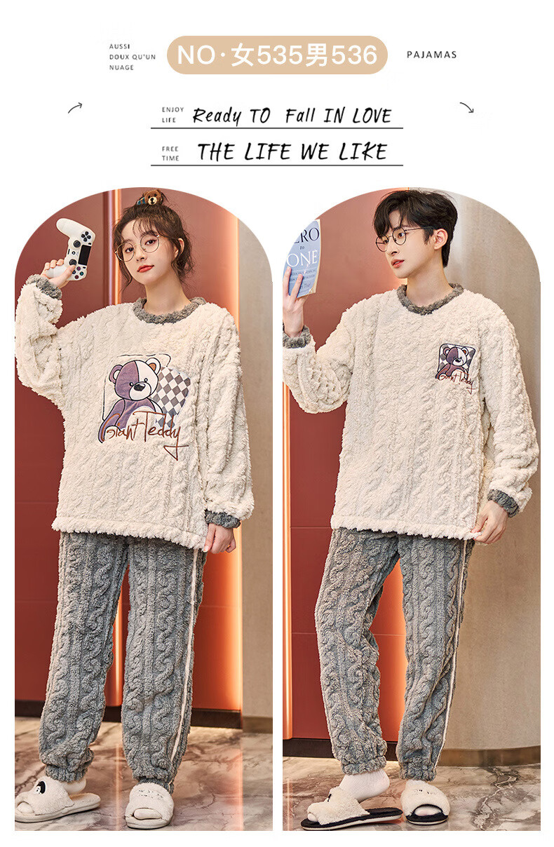 DAPHNE达芙妮【A】冬季情侣睡衣法兰绒加厚珊瑚绒舒适长袖套头男女孕妇家居服 541-542 男款:XXXL(150-170斤)