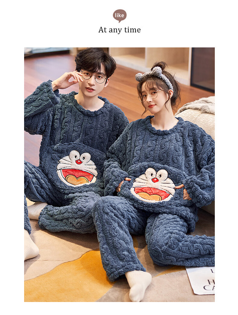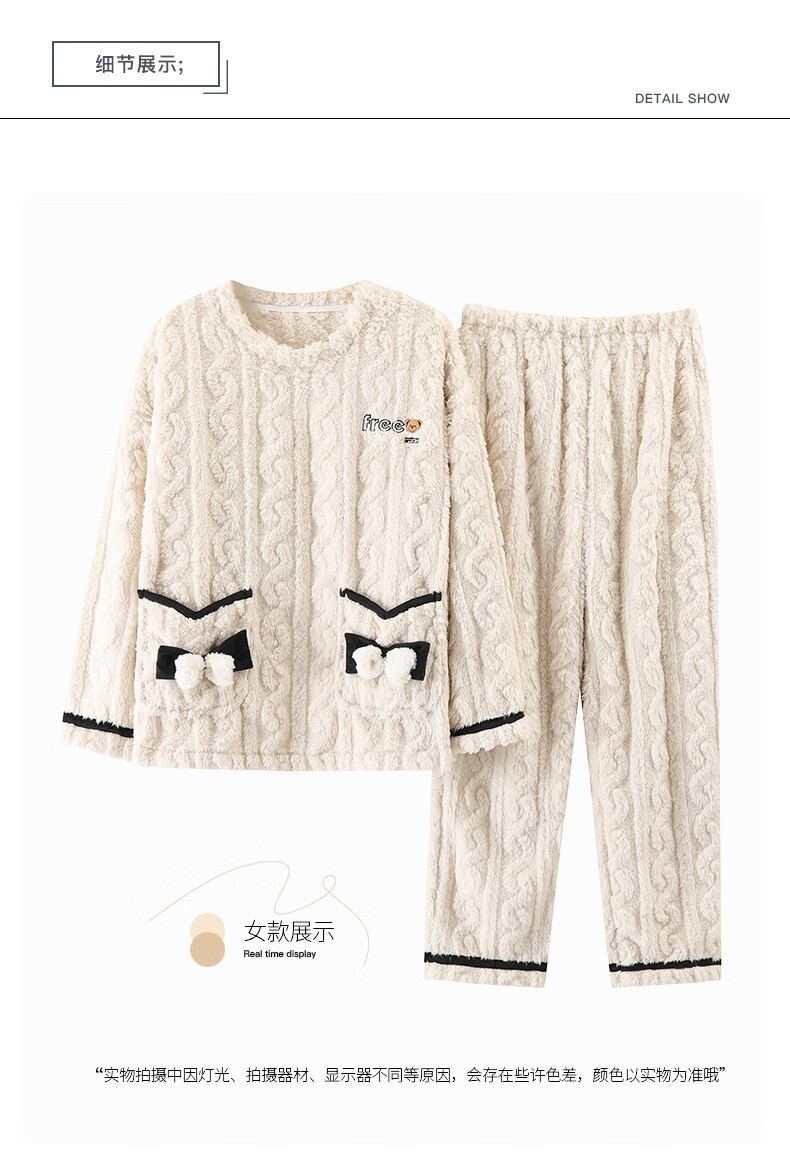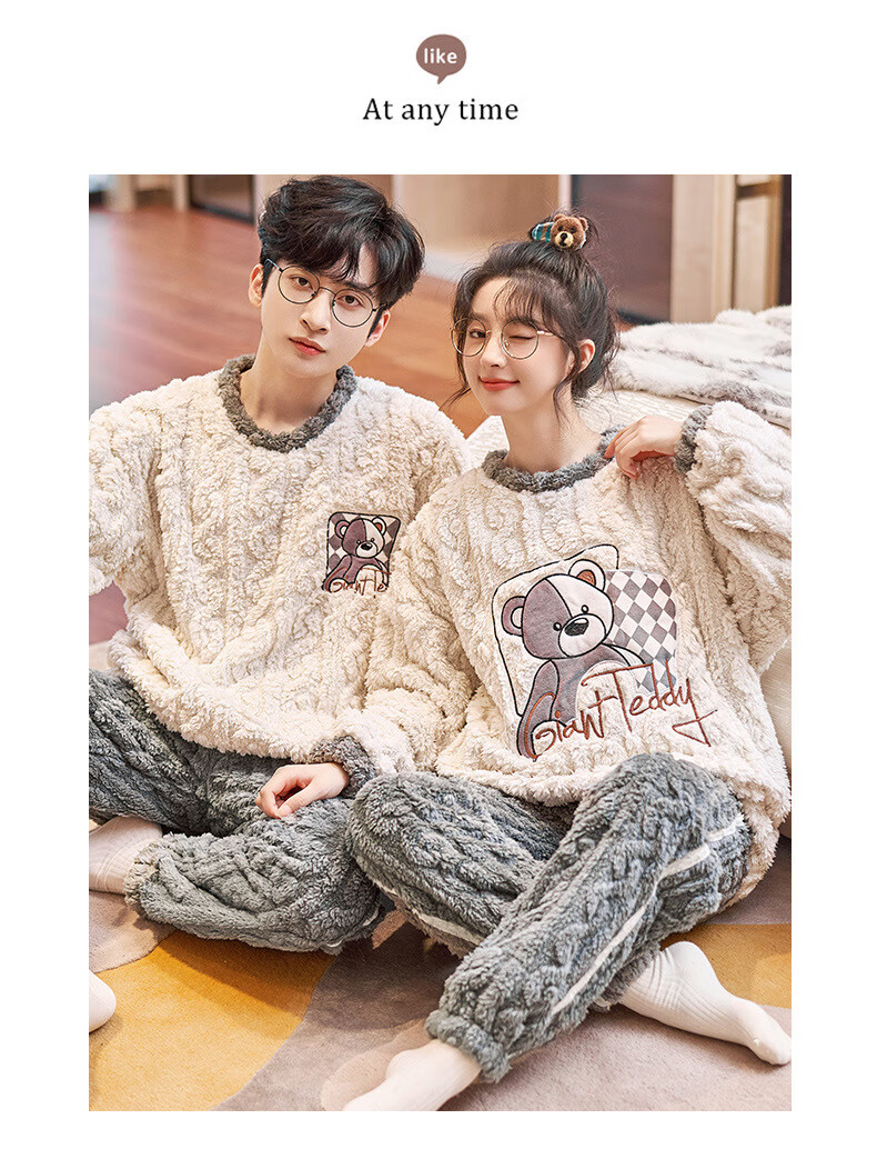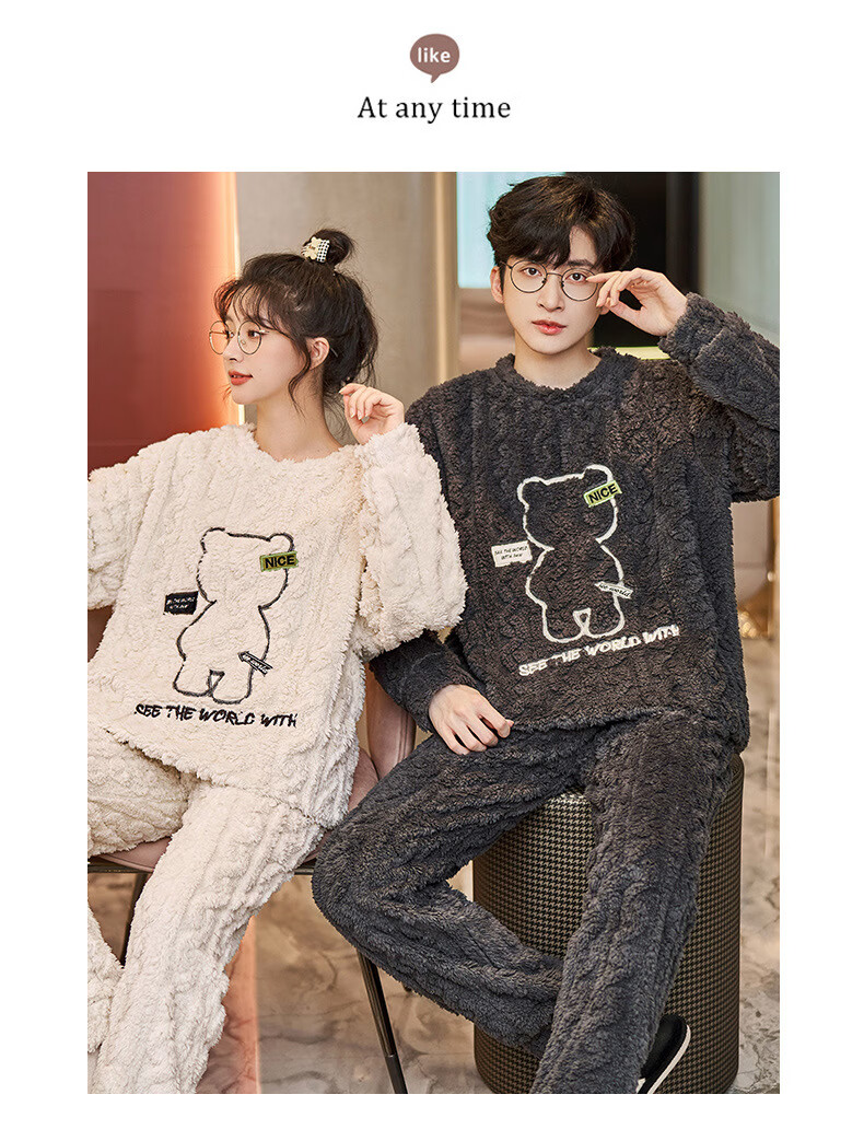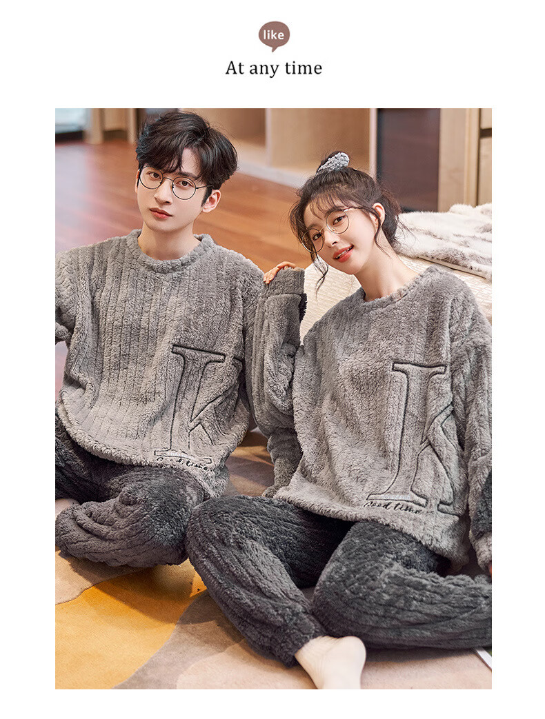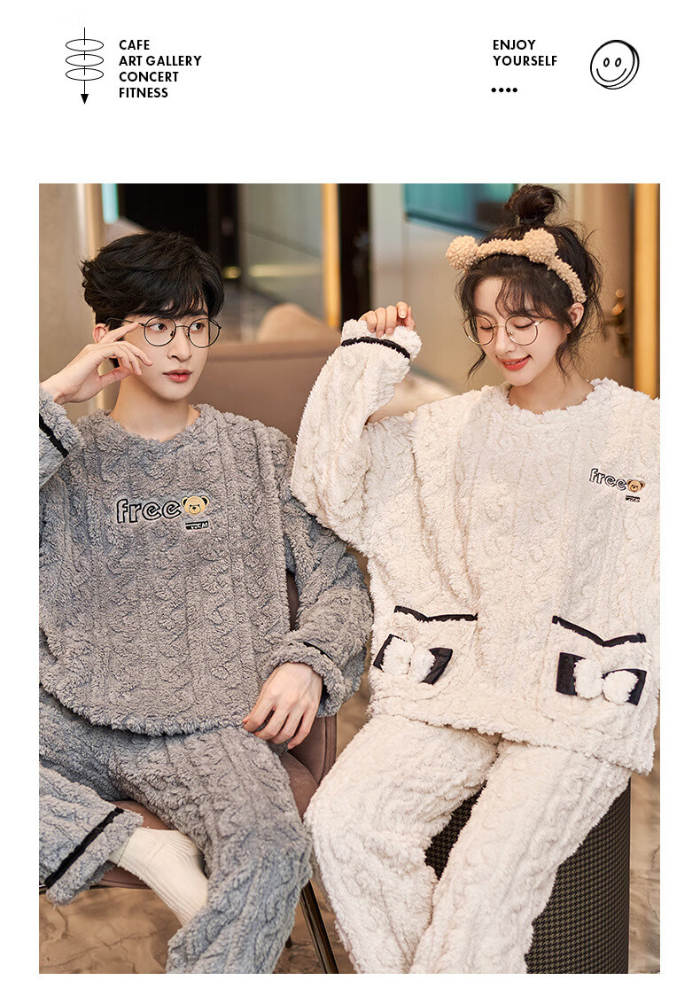 DAPHNE达芙妮【A】冬季情侣睡衣法兰绒加厚珊瑚绒舒适长袖套头男女孕妇家居服 541-542 男款:XXXL(150-170斤)