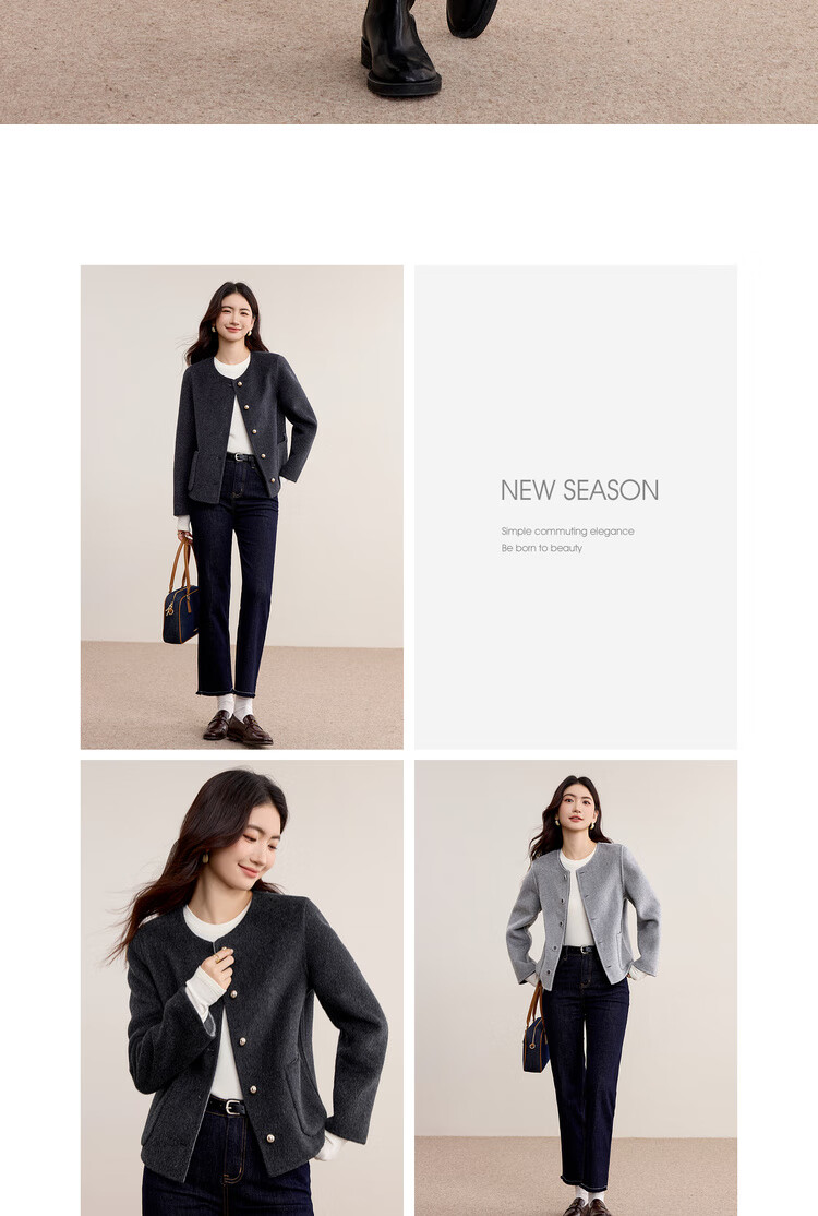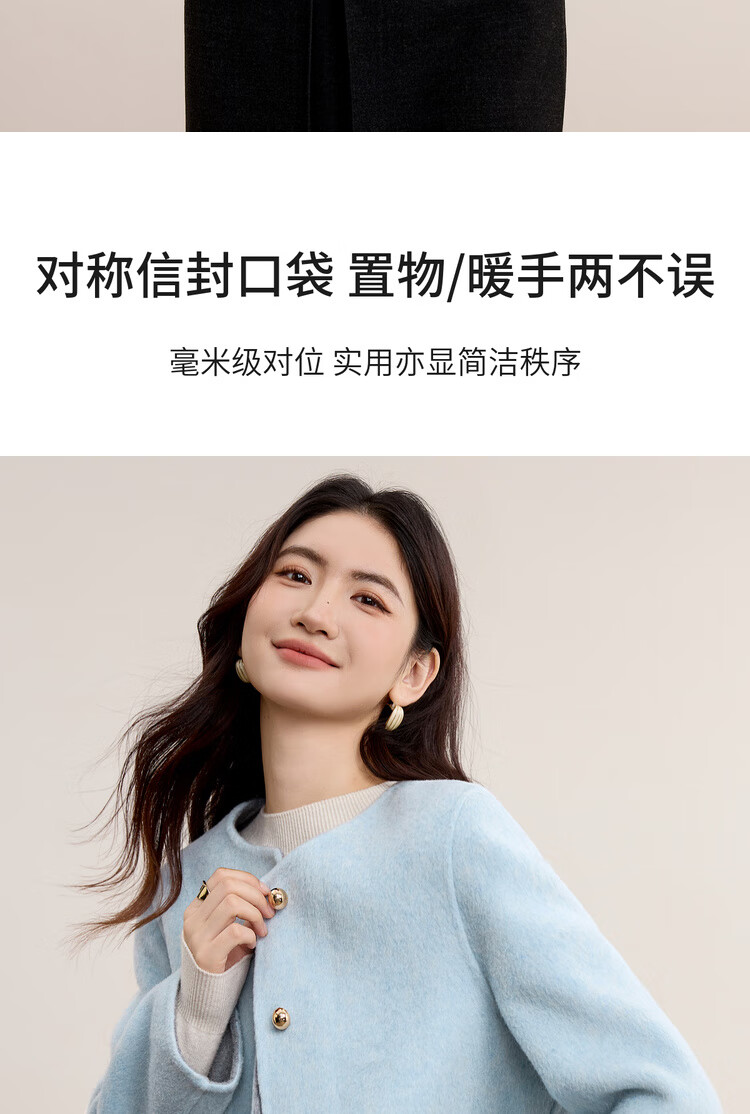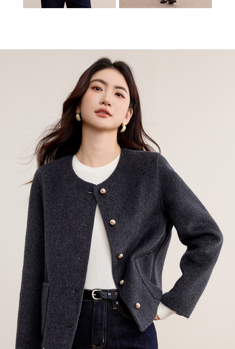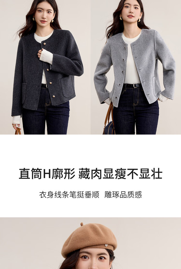 尚都比拉含绵羊毛圆领毛呢大衣女冬季厚实保暖双面呢外套优雅通勤长袖大衣