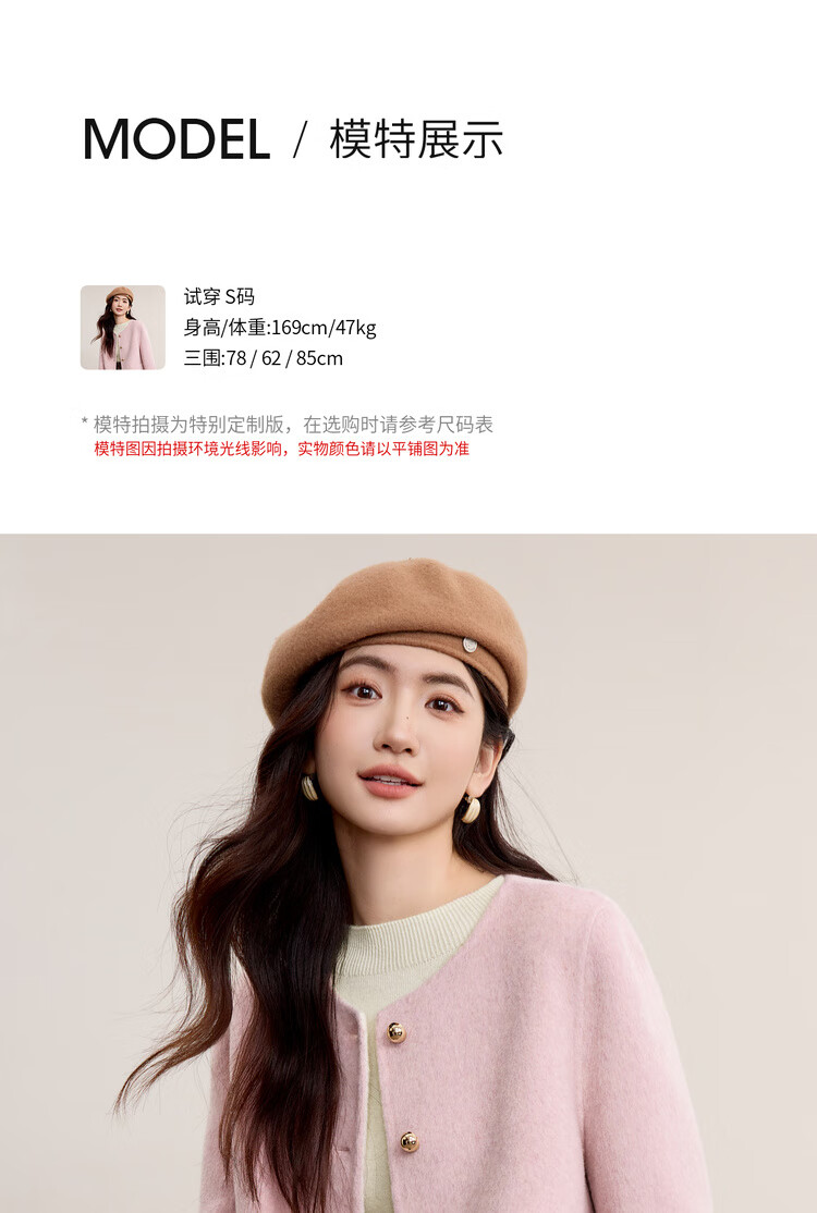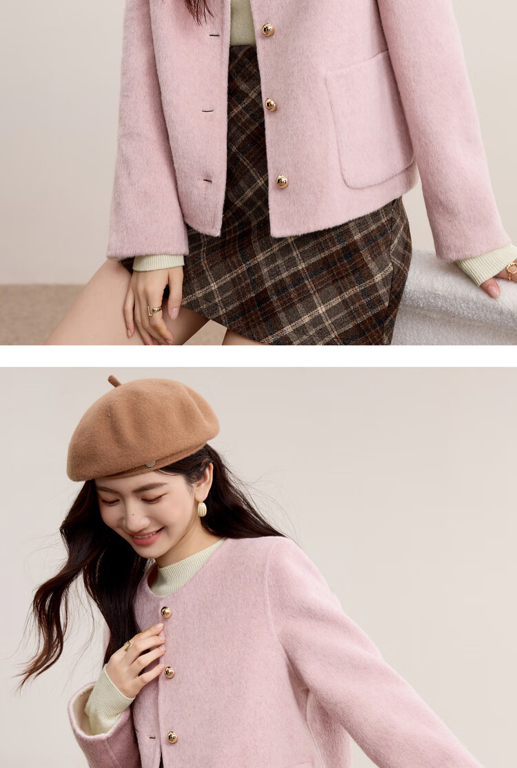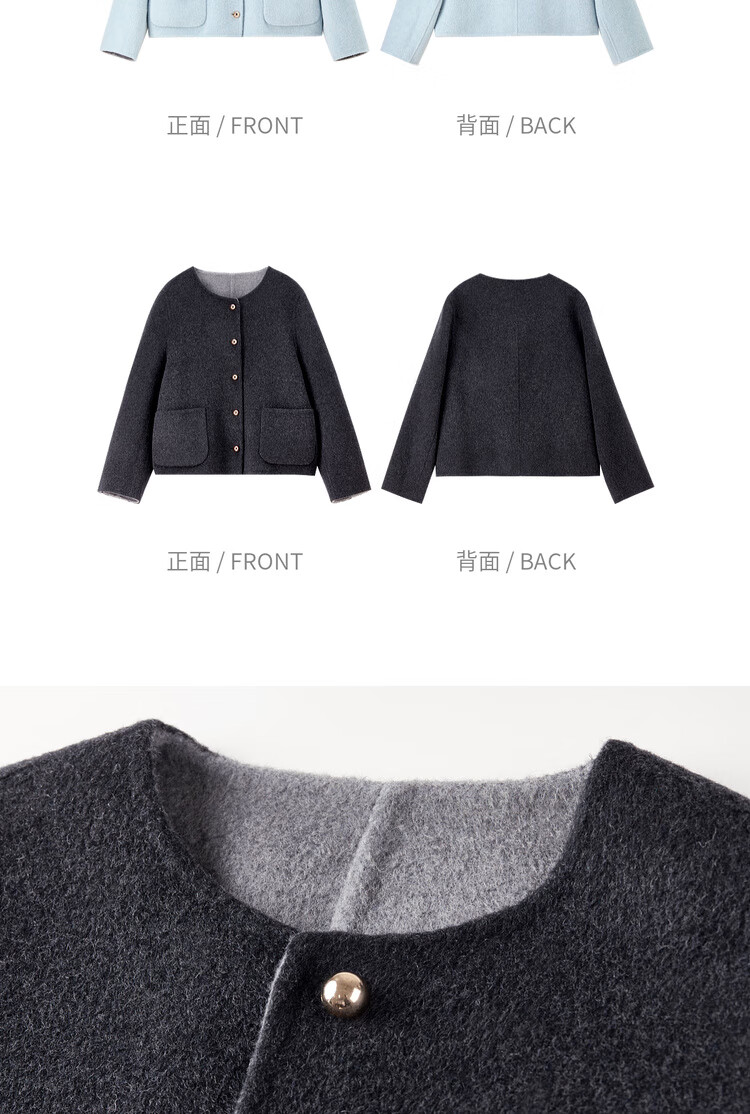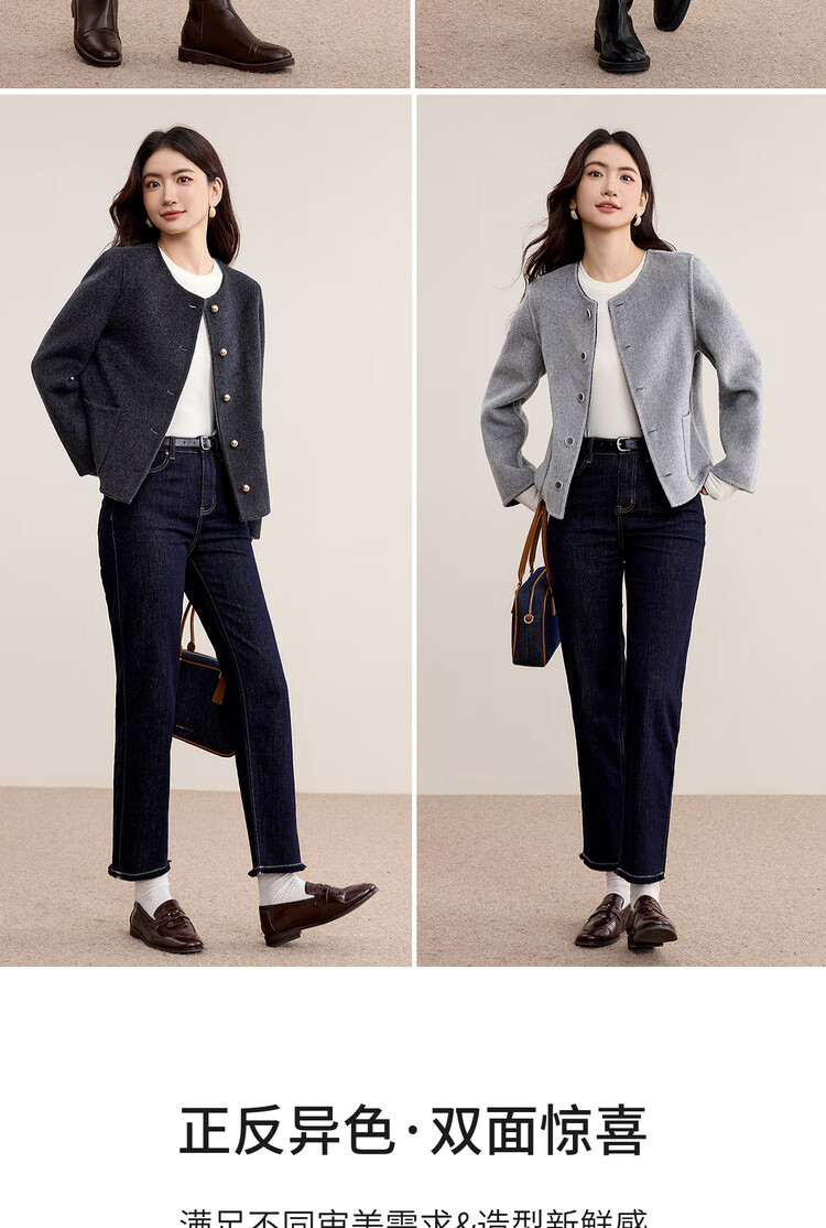 尚都比拉含绵羊毛圆领毛呢大衣女冬季厚实保暖双面呢外套优雅通勤长袖大衣