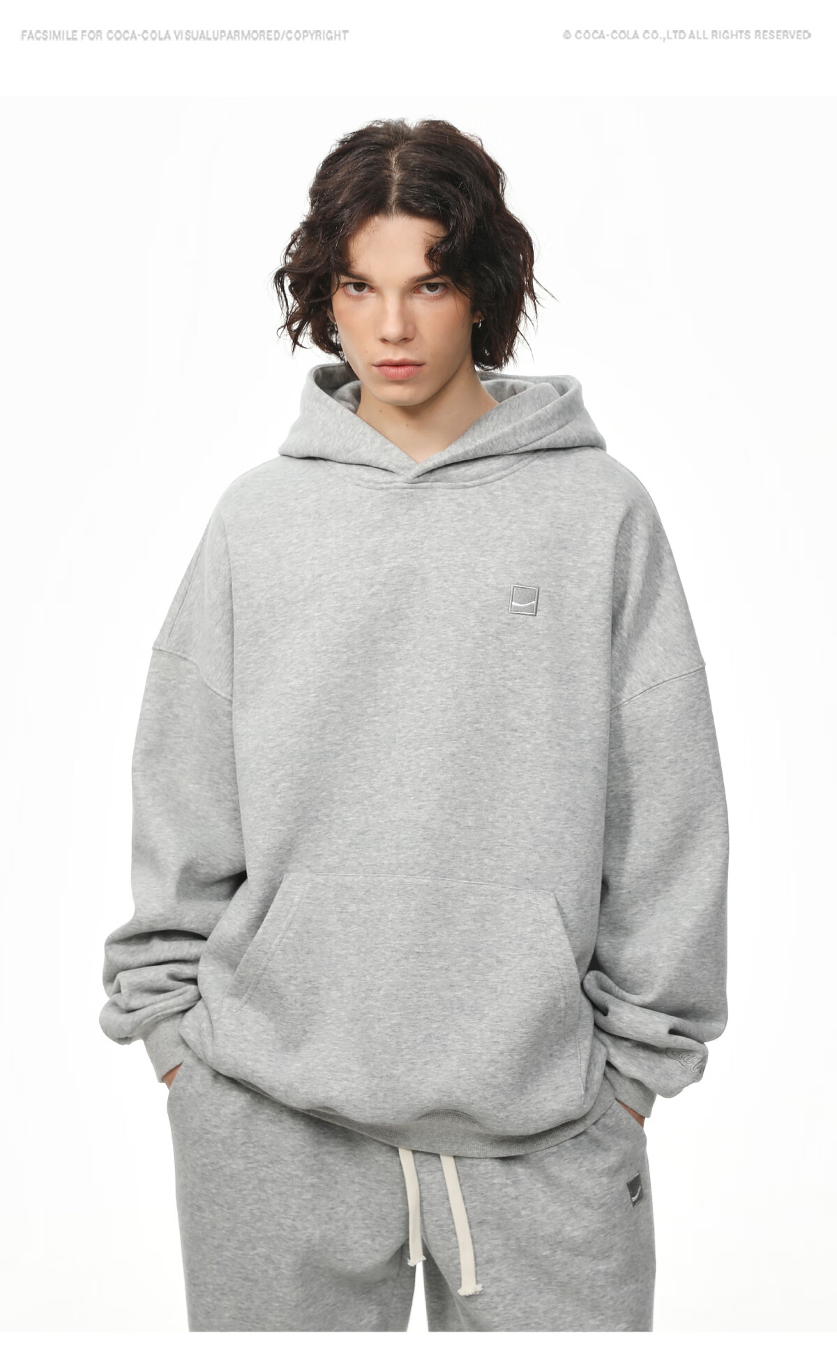 可口可乐(Coca-Cola)连帽卫衣男秋冬加绒加厚纯色简约刺绣上衣外套 花灰色 L