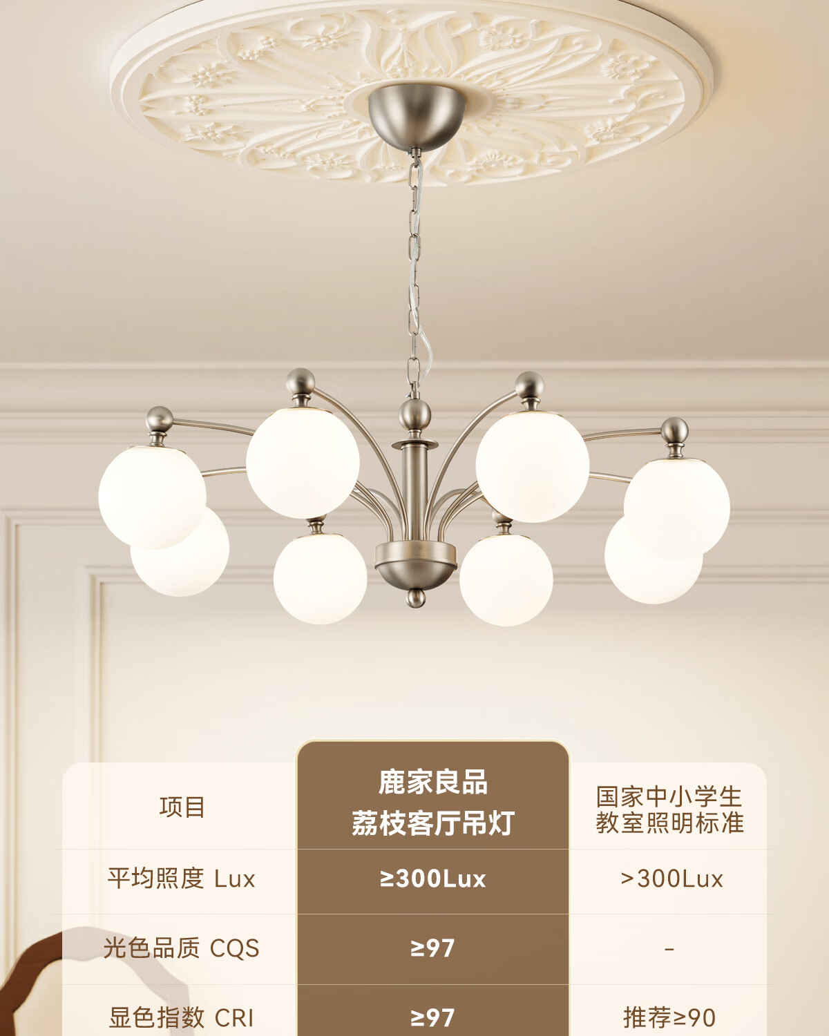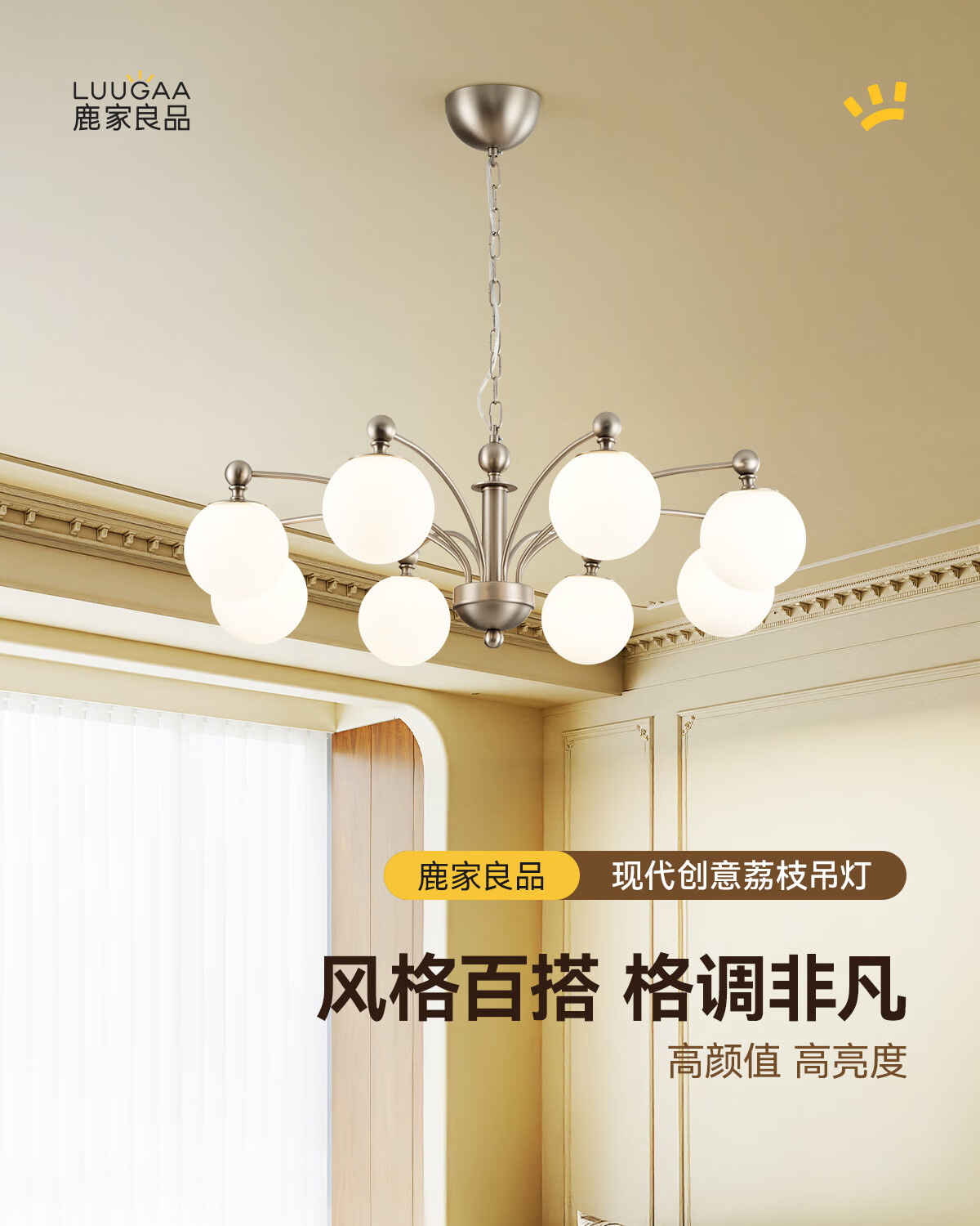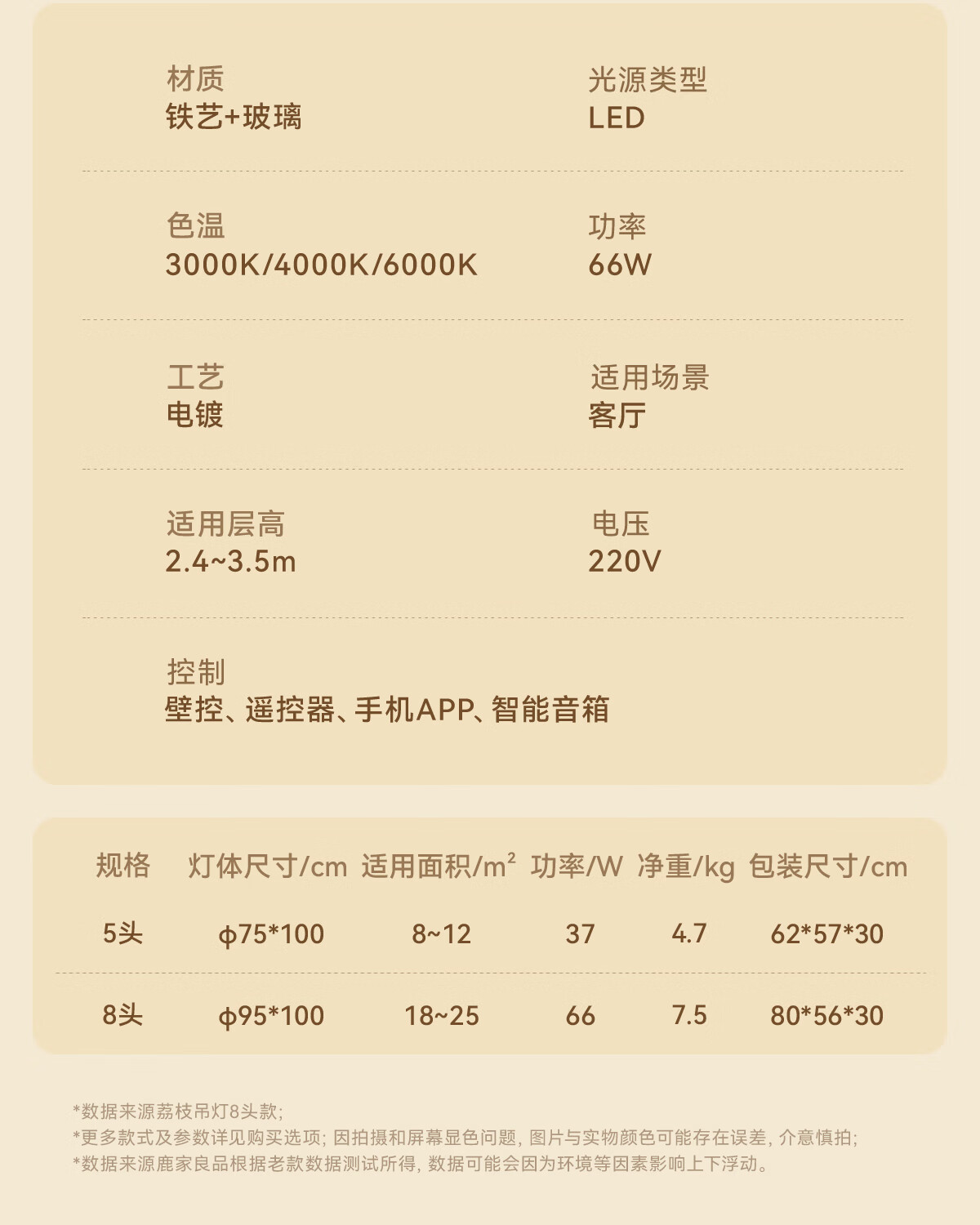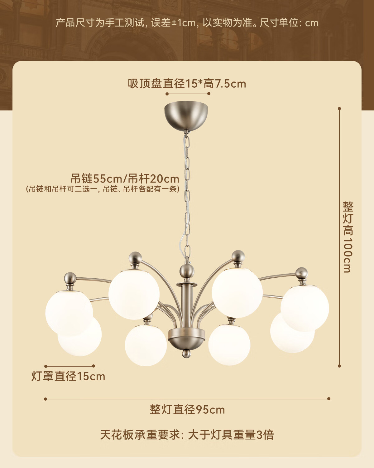 鹿家良品(LUUGAA)荔枝吊灯2025新款中古风主灯法式客厅吊灯卧室灯复古包豪斯大厅灯 【荐】全光谱8头95cm三色光66W