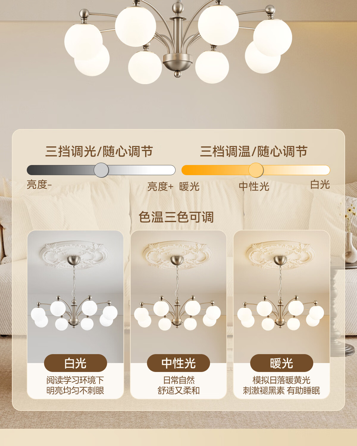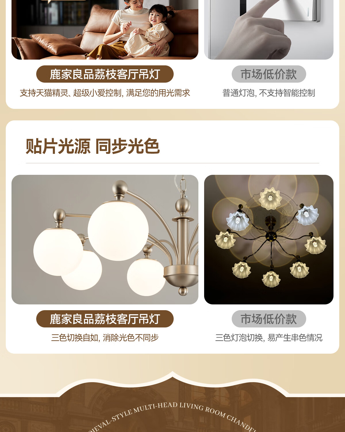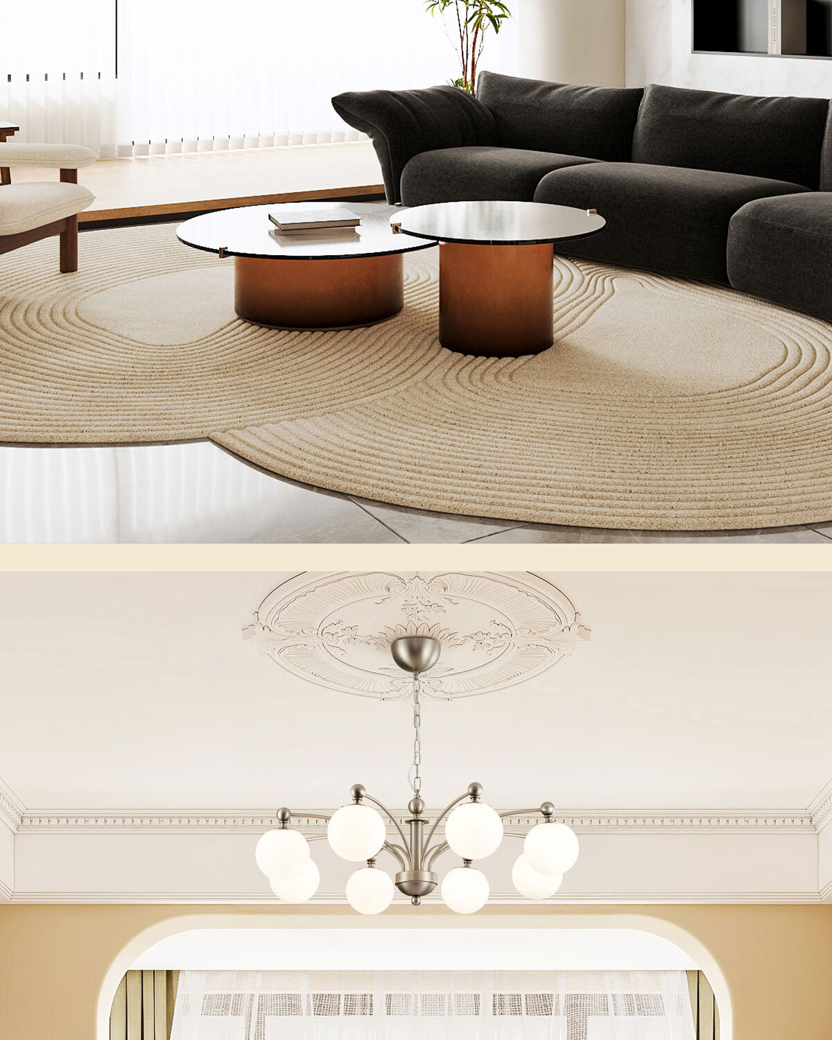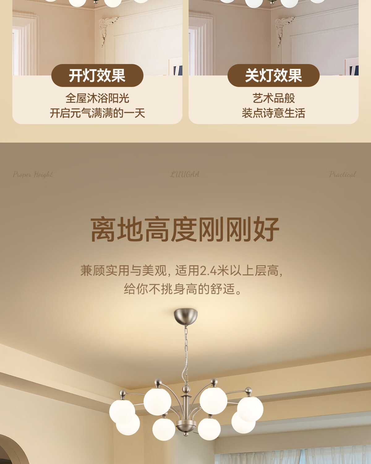 鹿家良品(LUUGAA)荔枝吊灯2025新款中古风主灯法式客厅吊灯卧室灯复古包豪斯大厅灯 【荐】全光谱8头95cm三色光66W