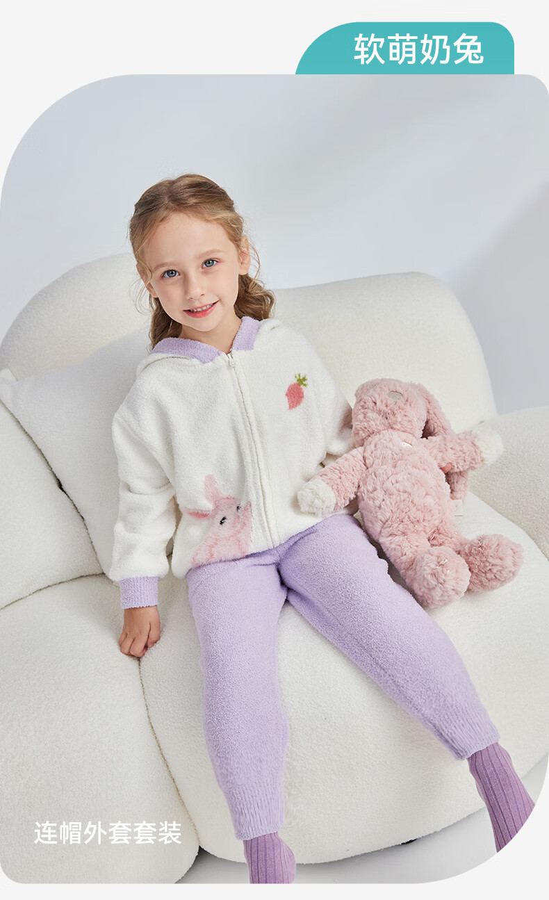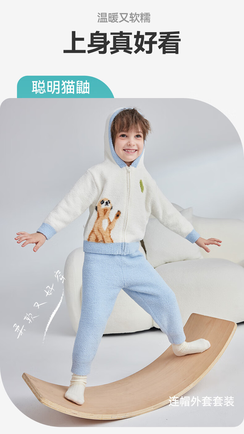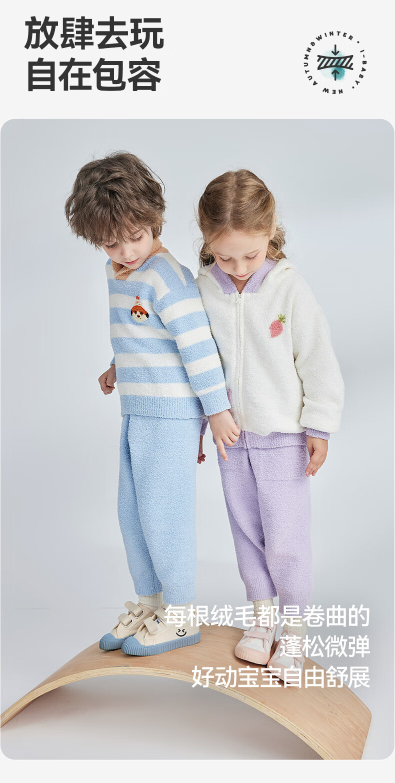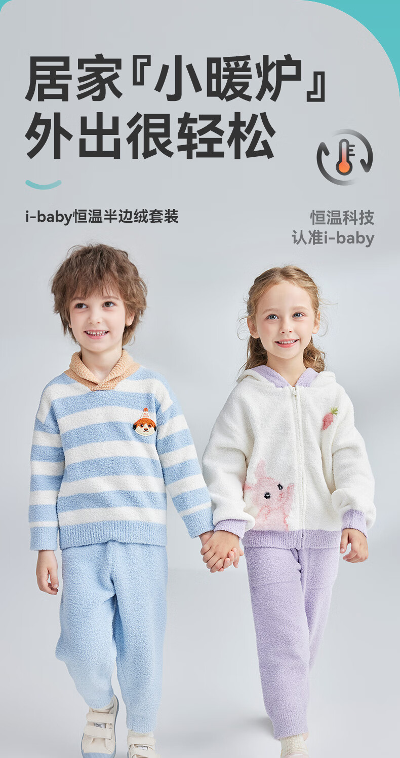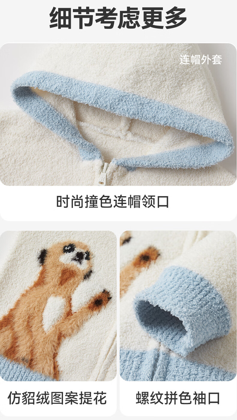 ibaby儿童连帽外套秋冬男女童半边绒开衫宝宝上衣