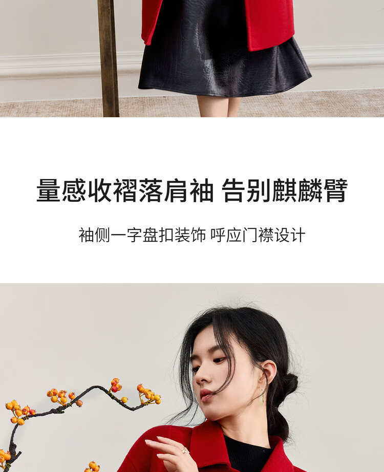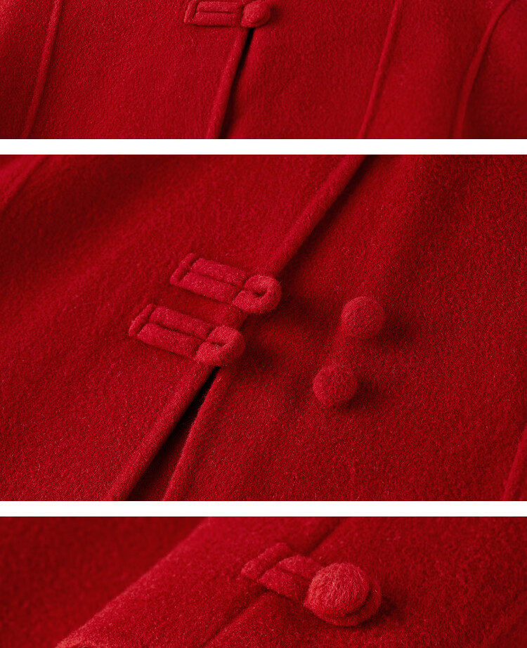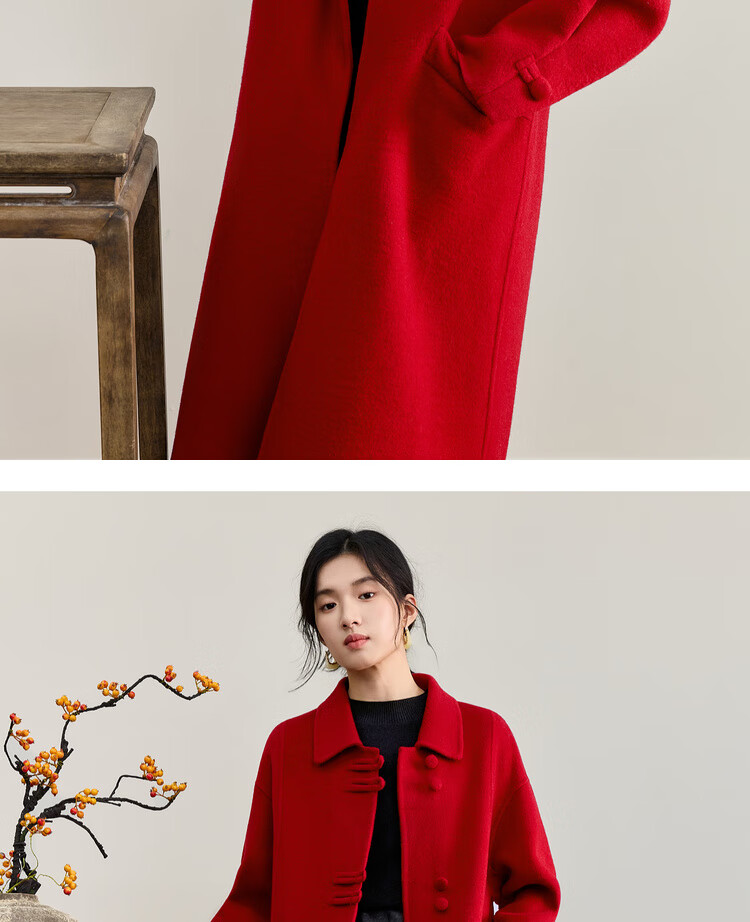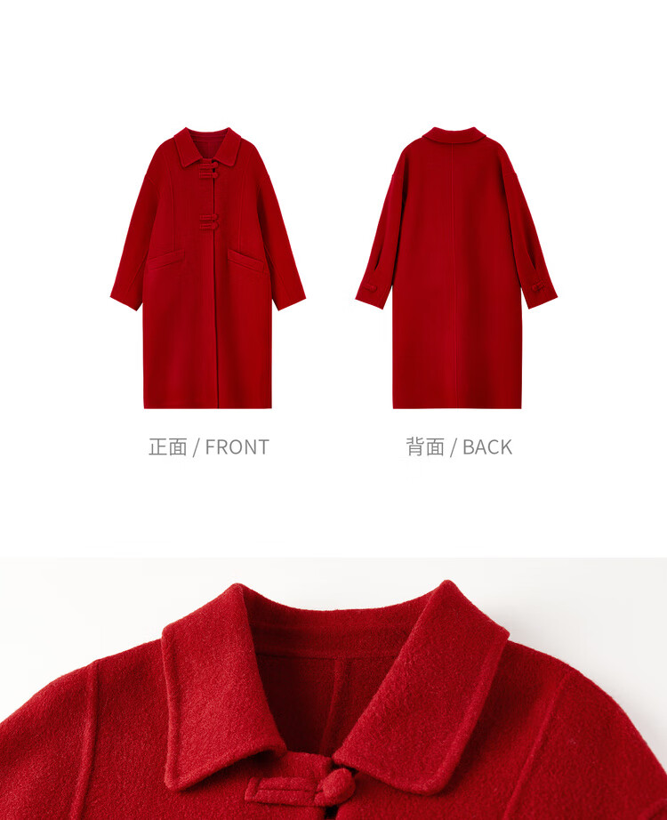 尚都比拉含绵羊毛国风毛呢大衣女冬季一字盘扣翻领双面呢外套宽松保暖大衣