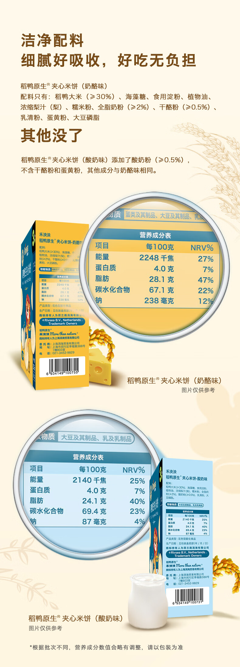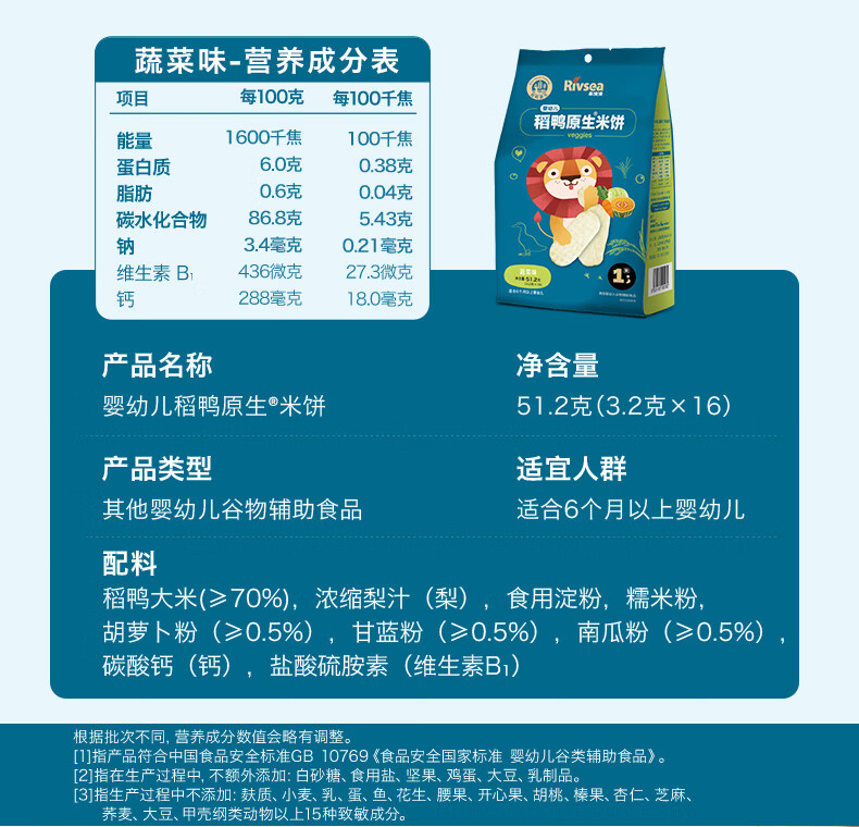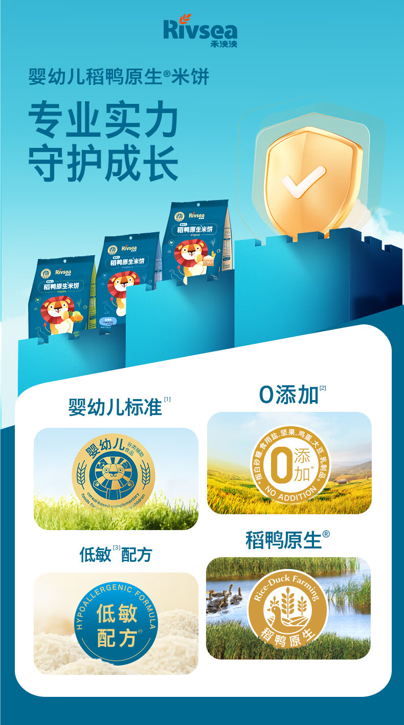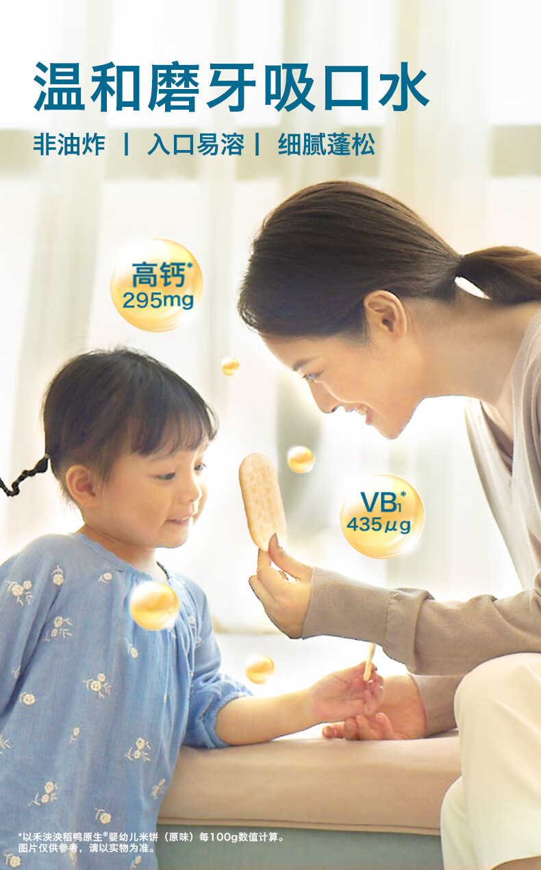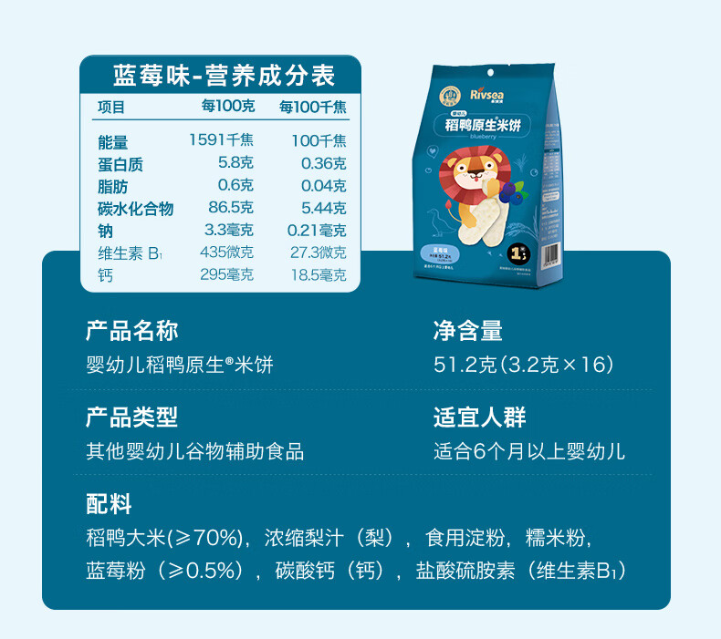 禾泱泱婴幼儿稻鸭原生米饼宝宝零食辅食儿童磨牙棒无添加白砂糖入口易溶 1阶稻鸭原生高钙米饼蓝莓味51.2g