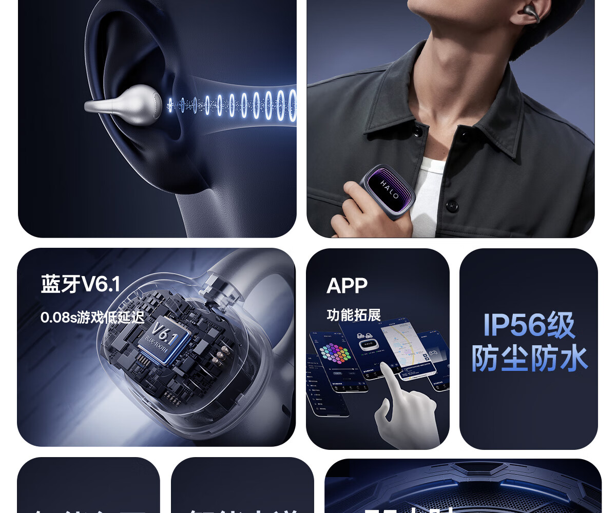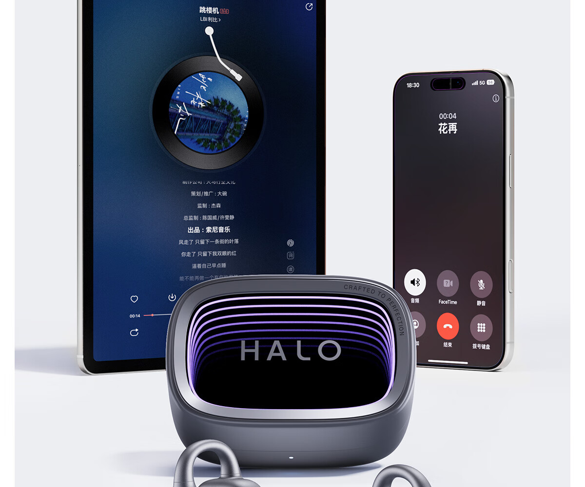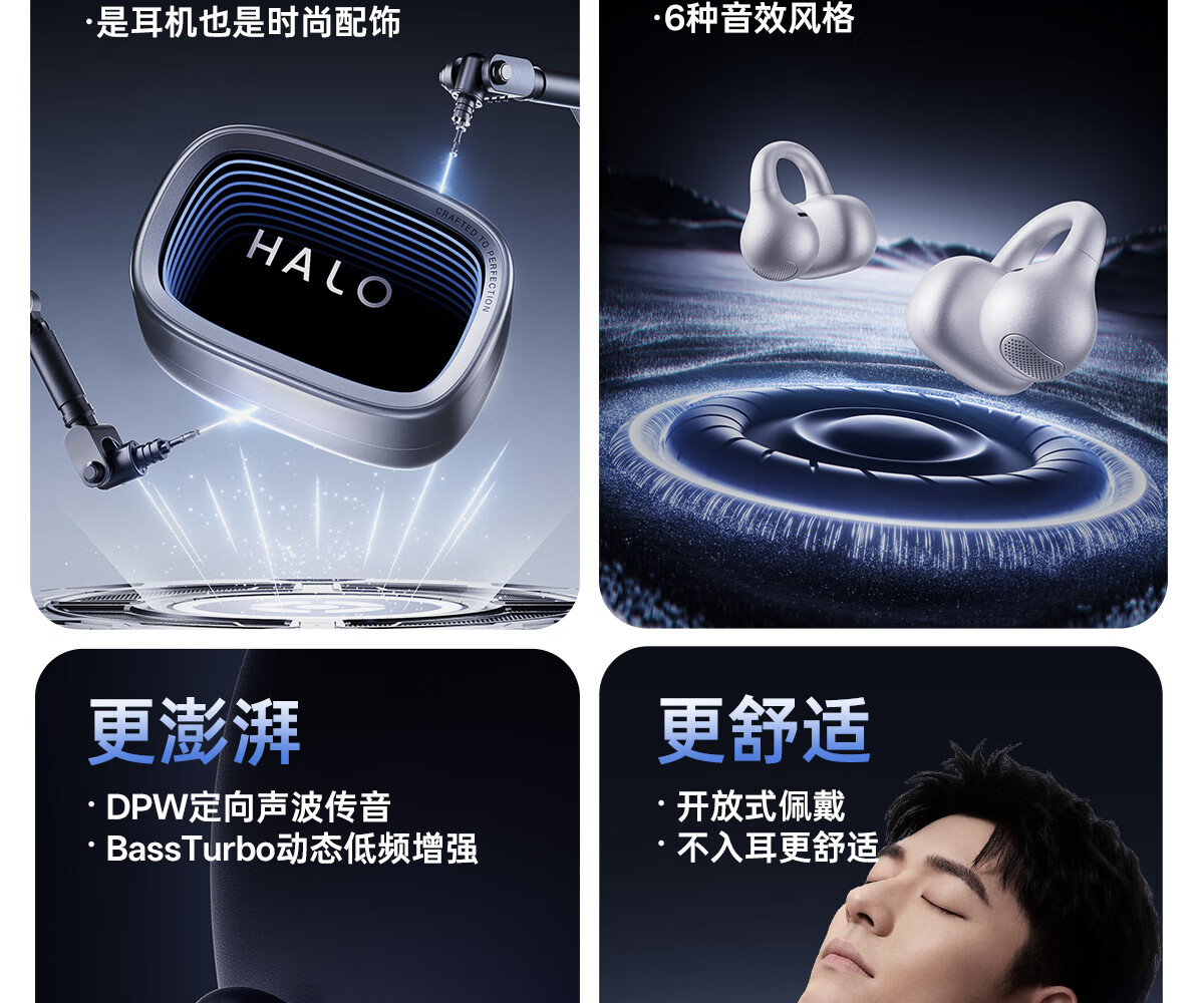 漫步者花再Halo Clip 耳夹式潮玩蓝牙耳机 赛博深渊灯效 蓝牙6.1 35h超长续航 适用苹果华为小米 幻境银