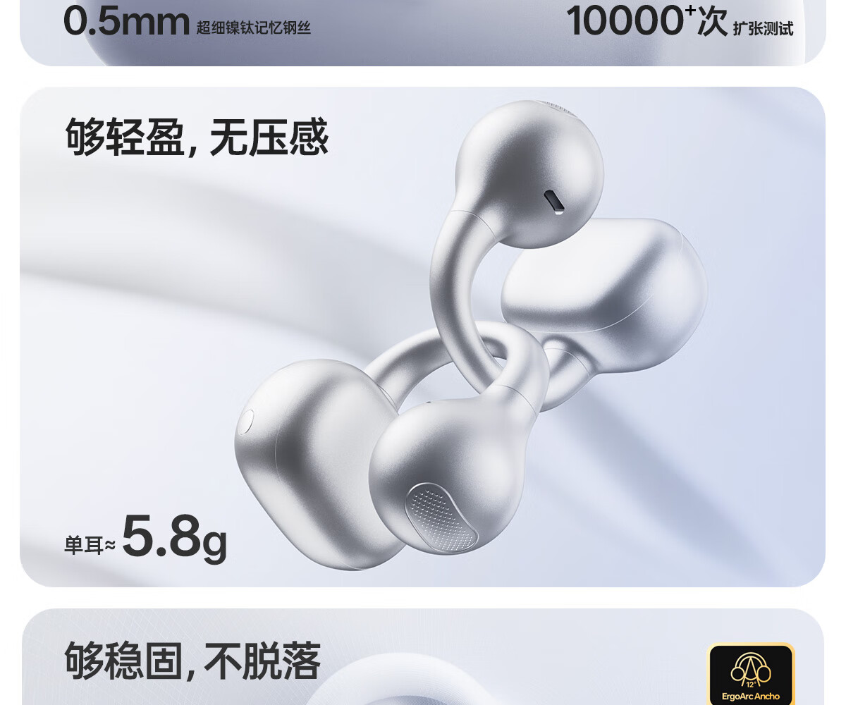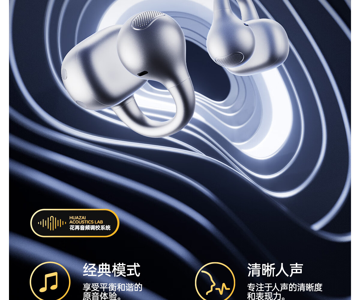 瓷音未来Mars X耳夹开放式真无线蓝牙耳机骨传导概念HiFi音质挂耳运动跑步通话降噪Pro适用于苹果安卓 云岩白