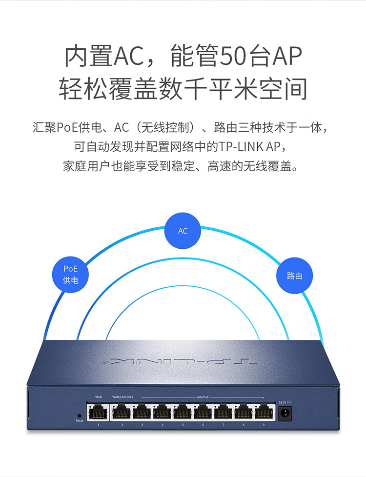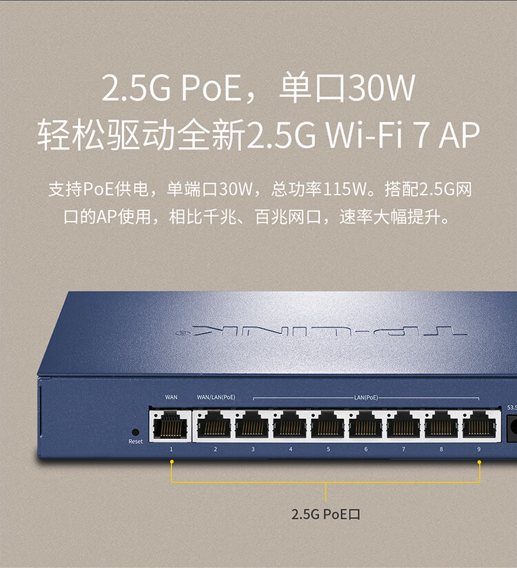 TP-LINKTP-LINK2.5G PoE·AC一体化企业级路由器 适配TP-LINK Wifi7 ap面板 9口2.5G TL-R5009PE-AC
